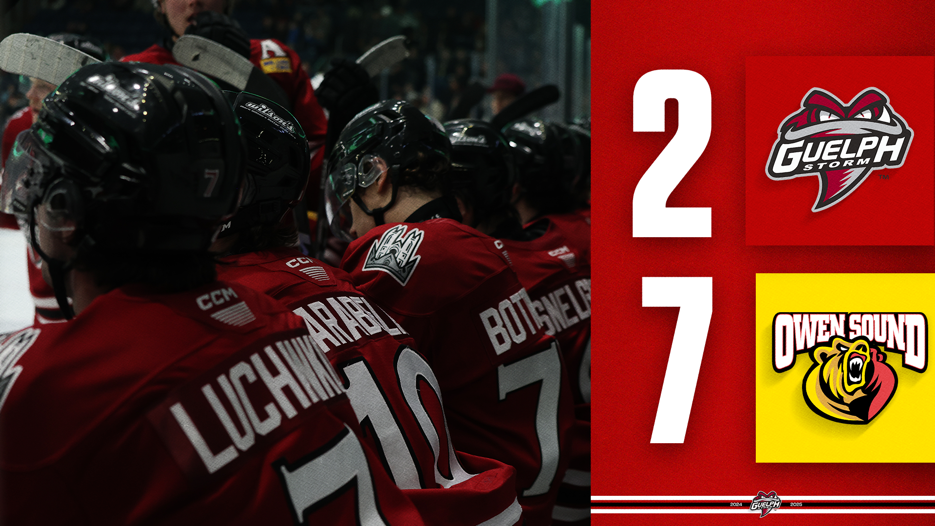 {"league":"ohl","site_api_key":"2976319eb44abe94","season":"","sponsor":false,"link":false,"days_ahead":"6","days_back":"3","team":"9","team_class":"ohl-gue","base_url":"https:\/\/chl.ca\/ohl-storm","language":"en","view":"scorebar","scoreboard":[{"ID":"28714","SeasonID":"83","league_id":"1","game_number":"565","game_letter":"","game_type":"","quick_score":"0","Date":"2026-02-21","FloCoreEventId":"14478073","FloLiveEventId":"194830","GameDate":"Sat, Feb 21","GameDateISO8601":"2026-02-21T19:07:00-05:00","ScheduledTime":"19:07:00","ScheduledFormattedTime":"7:07 pm","Timezone":"Canada\/Eastern","TicketUrl":"","HomeID":"16","HomeCode":"SOO","HomeCity":"Sault Ste. Marie","HomeNickname":"Greyhounds","HomeLongName":"Soo Greyhounds","HomeDivision":"West Division","HomeGoals":"0","HomeAudioUrl":"https:\/\/streamdb8web.securenetsystems.net\/cirruscontent\/WSUE","HomeVideoUrl":"","HomeWebcastUrl":"https:\/\/flosports.link\/4oJ5rTq","VisitorID":"9","VisitorCode":"GUE","VisitorCity":"Guelph","VisitorNickname":"Storm","VisitorLongName":"Guelph Storm","VisitingDivision":"Midwest Division","VisitorGoals":"1","VisitorAudioUrl":"https:\/\/globalnews.ca\/radio\/cjoy\/player\/","VisitorVideoUrl":"https:\/\/flosports.link\/41fs8ES","VisitorWebcastUrl":"https:\/\/flosports.link\/41fs8ES","Period":"3","PeriodNameShort":"3","PeriodNameLong":"3rd","GameClock":"00:00","GameSummaryUrl":"28714","HomeWins":"35","HomeRegulationLosses":"17","HomeOTLosses":"1","HomeShootoutLosses":"5","VisitorWins":"26","VisitorRegulationLosses":"27","VisitorOTLosses":"2","VisitorShootoutLosses":"2","GameStatus":"4","Intermission":"0","GameStatusString":"Final","GameStatusStringLong":"Final","Ord":"2026-02-21 19:07:00.000000","venue_name":"GFL Memorial Gardens","venue_location":"Sault Ste. Marie, ON","league_name":"Ontario Hockey League","league_code":"ohl","TimezoneShort":"EST","HomeLogo":"https:\/\/assets.leaguestat.com\/ohl\/logos\/16.png","VisitorLogo":"https:\/\/assets.leaguestat.com\/ohl\/logos\/9.png","FloHockeyUrl":"https:\/\/flohockey.tv\/events\/14478073","combined_client_code":null},{"ID":"28719","SeasonID":"83","league_id":"1","game_number":"570","game_letter":"","game_type":"","quick_score":"0","Date":"2026-02-22","FloCoreEventId":"14478084","FloLiveEventId":"194836","GameDate":"Sun, Feb 22","GameDateISO8601":"2026-02-22T17:30:00-05:00","ScheduledTime":"17:30:00","ScheduledFormattedTime":"5:30 pm","Timezone":"Canada\/Eastern","TicketUrl":"https:\/\/www.ticketmaster.com\/saginaw-spirit-tickets\/artist\/836382","HomeID":"34","HomeCode":"SAG","HomeCity":"Saginaw","HomeNickname":"Spirit","HomeLongName":"Saginaw Spirit","HomeDivision":"West Division","HomeGoals":"5","HomeAudioUrl":"https:\/\/www.alphamediaplayer.com\/wsgwsports","HomeVideoUrl":"","HomeWebcastUrl":"https:\/\/flosports.link\/4mp2d6j","VisitorID":"9","VisitorCode":"GUE","VisitorCity":"Guelph","VisitorNickname":"Storm","VisitorLongName":"Guelph Storm","VisitingDivision":"Midwest Division","VisitorGoals":"8","VisitorAudioUrl":"https:\/\/globalnews.ca\/radio\/cjoy\/player\/","VisitorVideoUrl":"https:\/\/flosports.link\/41fs8ES","VisitorWebcastUrl":"https:\/\/flosports.link\/41fs8ES","Period":"3","PeriodNameShort":"3","PeriodNameLong":"3rd","GameClock":"00:00","GameSummaryUrl":"28719","HomeWins":"21","HomeRegulationLosses":"31","HomeOTLosses":"3","HomeShootoutLosses":"4","VisitorWins":"26","VisitorRegulationLosses":"27","VisitorOTLosses":"2","VisitorShootoutLosses":"2","GameStatus":"4","Intermission":"0","GameStatusString":"Final","GameStatusStringLong":"Final","Ord":"2026-02-22 17:30:00.000000","venue_name":"Dow Event Center","venue_location":"Saginaw","league_name":"Ontario Hockey League","league_code":"ohl","TimezoneShort":"EST","HomeLogo":"https:\/\/assets.leaguestat.com\/ohl\/logos\/34.png","VisitorLogo":"https:\/\/assets.leaguestat.com\/ohl\/logos\/9.png","FloHockeyUrl":"https:\/\/flohockey.tv\/events\/14478084","combined_client_code":null},{"ID":"28722","SeasonID":"83","league_id":"1","game_number":"573","game_letter":"","game_type":"","quick_score":"0","Date":"2026-02-25","FloCoreEventId":"14478090","FloLiveEventId":"194838","GameDate":"Wed, Feb 25","GameDateISO8601":"2026-02-25T18:37:00-05:00","ScheduledTime":"18:37:00","ScheduledFormattedTime":"6:37 pm","Timezone":"Canada\/Eastern","TicketUrl":"https:\/\/tickets.guelphstorm.com","HomeID":"9","HomeCode":"GUE","HomeCity":"Guelph","HomeNickname":"Storm","HomeLongName":"Guelph Storm","HomeDivision":"Midwest Division","HomeGoals":"4","HomeAudioUrl":"https:\/\/globalnews.ca\/radio\/cjoy\/player\/","HomeVideoUrl":"https:\/\/flosports.link\/41fs8ES","HomeWebcastUrl":"https:\/\/flosports.link\/41fs8ES","VisitorID":"10","VisitorCode":"KIT","VisitorCity":"Kitchener","VisitorNickname":"Rangers","VisitorLongName":"Kitchener Rangers","VisitingDivision":"Midwest Division","VisitorGoals":"5","VisitorAudioUrl":"https:\/\/kitchener.citynews.ca\/audio\/","VisitorVideoUrl":"https:\/\/www.rogerstv.com\/waterloo-region\/onnow","VisitorWebcastUrl":"https:\/\/flosports.link\/4oHI5O7","Period":"3","PeriodNameShort":"3","PeriodNameLong":"3rd","GameClock":"00:00","GameSummaryUrl":"28722","HomeWins":"26","HomeRegulationLosses":"27","HomeOTLosses":"2","HomeShootoutLosses":"2","VisitorWins":"40","VisitorRegulationLosses":"12","VisitorOTLosses":"4","VisitorShootoutLosses":"2","GameStatus":"4","Intermission":"0","GameStatusString":"Final","GameStatusStringLong":"Final","Ord":"2026-02-25 18:37:00.000000","venue_name":"Sleeman Centre","venue_location":"Guelph","league_name":"Ontario Hockey League","league_code":"ohl","TimezoneShort":"EST","HomeLogo":"https:\/\/assets.leaguestat.com\/ohl\/logos\/9.png","VisitorLogo":"https:\/\/assets.leaguestat.com\/ohl\/logos\/10.png","FloHockeyUrl":"https:\/\/flohockey.tv\/events\/14478090","combined_client_code":null},{"ID":"28730","SeasonID":"83","league_id":"1","game_number":"581","game_letter":"","game_type":"","quick_score":"0","Date":"2026-02-27","FloCoreEventId":"14478116","FloLiveEventId":"194851","
