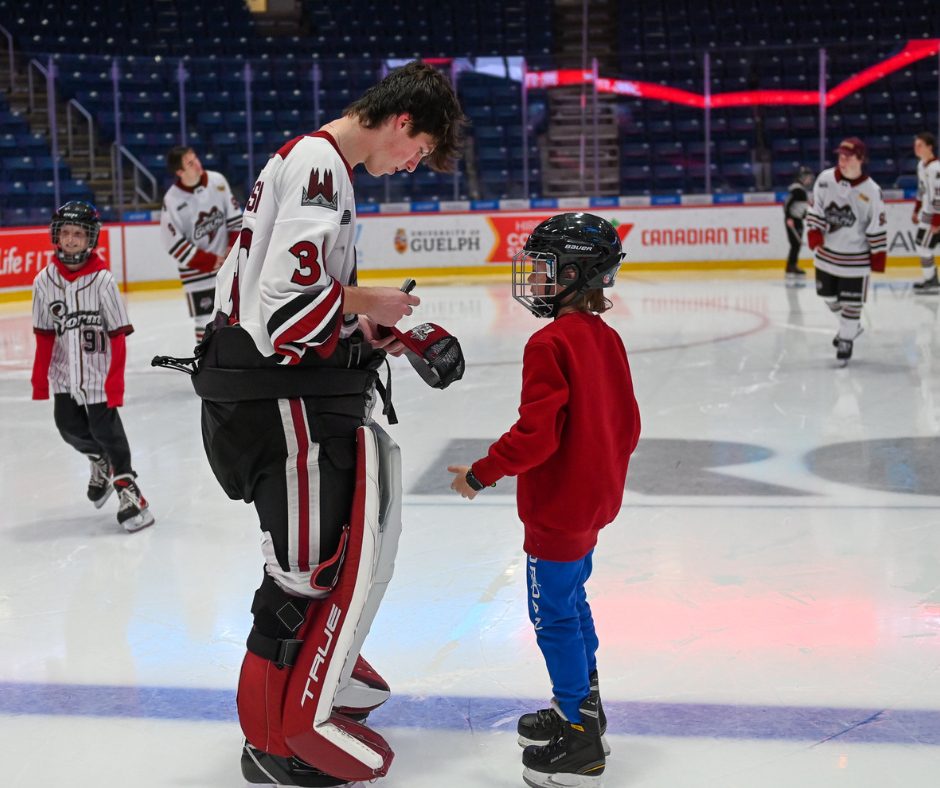 New this season, the Guelph Storm invited all members of the Jr. Stormers Kids Club to an exclusive Skate with the Storm on Sunday, October 26th. Players and Jr. Stormers took the Sleeman Centre ice together to skate some laps, take photos, and of course, autographs!