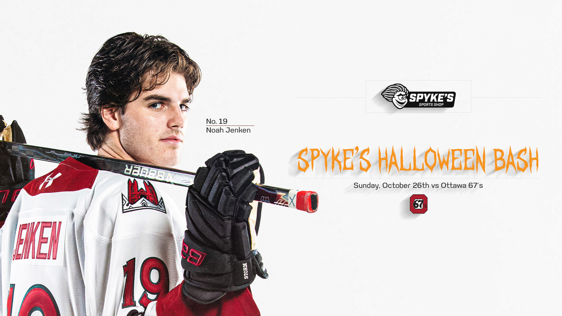 Sunday, October 26th is Spyke’s Halloween Bash as the Ottawa 67’s visit the Sleeman Centre.
