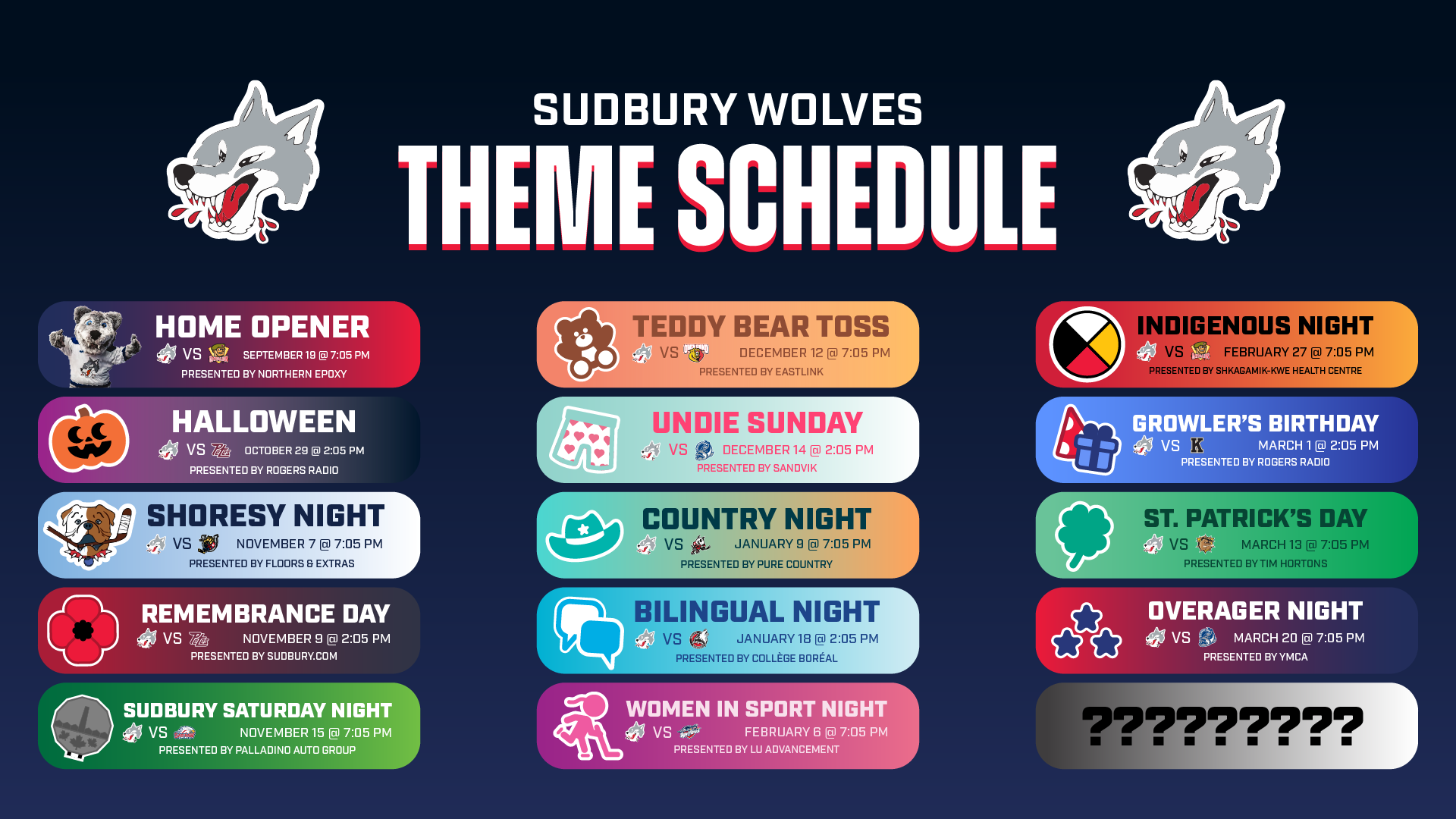 {"league":"ohl","site_api_key":"2976319eb44abe94","season":"","sponsor":false,"link":false,"days_ahead":"6","days_back":"1","team":"12","team_class":"ohl-sby","base_url":"https:\/\/chl.ca\/ohl-wolves","language":"en","view":"scorebar","scoreboard":[{"ID":"28555","SeasonID":"83","league_id":"1","game_number":"406","game_letter":"","game_type":"","quick_score":"0","Date":"2026-01-11","FloCoreEventId":"14477745","FloLiveEventId":"194669","GameDate":"Sun, Jan 11","GameDateISO8601":"2026-01-11T14:05:00-05:00","ScheduledTime":"14:05:00","ScheduledFormattedTime":"2:05 pm","Timezone":"Canada\/Eastern","TicketUrl":"","HomeID":"12","HomeCode":"SBY","HomeCity":"Sudbury","HomeNickname":"Wolves","HomeLongName":"Sudbury Wolves","HomeDivision":"Central Division","HomeGoals":"4","HomeAudioUrl":"https:\/\/sudburywolves.mixlr.com\/","HomeVideoUrl":"","HomeWebcastUrl":"https:\/\/flosports.link\/41bS04t","VisitorID":"5","VisitorCode":"OTT","VisitorCity":"Ottawa","VisitorNickname":"67's","VisitorLongName":"Ottawa 67's","VisitingDivision":"East Division","VisitorGoals":"6","VisitorAudioUrl":"https:\/\/www.iheart.com\/live\/tsn-1200-7503\/","VisitorVideoUrl":"","VisitorWebcastUrl":"https:\/\/flosports.link\/3UB9MKQ","Period":"3","PeriodNameShort":"3","PeriodNameLong":"3rd","GameClock":"00:00","GameSummaryUrl":"28555","HomeWins":"15","HomeRegulationLosses":"24","HomeOTLosses":"1","HomeShootoutLosses":"0","VisitorWins":"29","VisitorRegulationLosses":"9","VisitorOTLosses":"1","VisitorShootoutLosses":"2","GameStatus":"4","Intermission":"0","GameStatusString":"Final","GameStatusStringLong":"Final","Ord":"2026-01-11 14:05:00.000000","venue_name":"Sudbury Community Arena","venue_location":"Sudbury","league_name":"Ontario Hockey League","league_code":"ohl","TimezoneShort":"EST","HomeLogo":"https:\/\/assets.leaguestat.com\/ohl\/logos\/50x50\/12.png","VisitorLogo":"https:\/\/assets.leaguestat.com\/ohl\/logos\/5.png","FloHockeyUrl":"https:\/\/flohockey.tv\/events\/14477745","combined_client_code":null},{"ID":"28559","SeasonID":"83","league_id":"1","game_number":"410","game_letter":"","game_type":"","quick_score":"0","Date":"2026-01-15","FloCoreEventId":"14477755","FloLiveEventId":"194674","GameDate":"Thu, Jan 15","GameDateISO8601":"2026-01-15T19:00:00-05:00","ScheduledTime":"19:00:00","ScheduledFormattedTime":"7:00 pm","Timezone":"Canada\/Eastern","TicketUrl":"","HomeID":"19","HomeCode":"NB","HomeCity":"North Bay","HomeNickname":"Battalion","HomeLongName":"North Bay Battalion","HomeDivision":"Central Division","HomeGoals":"0","HomeAudioUrl":"","HomeVideoUrl":"","HomeWebcastUrl":"https:\/\/flosports.link\/3JEH4Xi","VisitorID":"12","VisitorCode":"SBY","VisitorCity":"Sudbury","VisitorNickname":"Wolves","VisitorLongName":"Sudbury Wolves","VisitingDivision":"Central Division","VisitorGoals":"0","VisitorAudioUrl":"https:\/\/sudburywolves.mixlr.com\/","VisitorVideoUrl":"","VisitorWebcastUrl":"https:\/\/flosports.link\/41bS04t","Period":"1","PeriodNameShort":"1","PeriodNameLong":"1st","GameClock":"00:00","GameSummaryUrl":"28559","HomeWins":"21","HomeRegulationLosses":"16","HomeOTLosses":"2","HomeShootoutLosses":"0","VisitorWins":"15","VisitorRegulationLosses":"24","VisitorOTLosses":"1","VisitorShootoutLosses":"0","GameStatus":"1","Intermission":"0","GameStatusString":"7:00PM","GameStatusStringLong":"7:00 PM EST","Ord":"2026-01-15 19:00:00.000000","venue_name":"Boart Longyear Memorial Gardens","venue_location":"North Bay","league_name":"Ontario Hockey League","league_code":"ohl","TimezoneShort":"EST","HomeLogo":"https:\/\/assets.leaguestat.com\/ohl\/logos\/19.png","VisitorLogo":"https:\/\/assets.leaguestat.com\/ohl\/logos\/50x50\/12.png","FloHockeyUrl":"https:\/\/flohockey.tv\/events\/14477755","combined_client_code":null},{"ID":"28569","SeasonID":"83","league_id":"1","game_number":"420","game_letter":"","game_type":"","quick_score":"0","Date":"2026-01-16","FloCoreEventId":"14477773","FloLiveEventId":"194683","GameDate":"Fri, Jan 16","GameDateISO8601":"2026-01-16T19:05:00-05:00","ScheduledTime":"19:05:00","ScheduledFormattedTime":"7:05 pm","Timezone":"Canada\/Eastern","TicketUrl":"","HomeID":"12","HomeCode":"SBY","HomeCity":"Sudbury","HomeNickname":"Wolves","HomeLongName":"Sudbury Wolves","HomeDivision":"Central Division","HomeGoals":"0","HomeAudioUrl":"https:\/\/sudburywolves.mixlr.com\/","HomeVideoUrl":"","HomeWebcastUrl":"https:\/\/flosports.link\/41bS04t","VisitorID":"13","VisitorCode":"FLNT","VisitorCity":"Flint","VisitorNickname":"Firebirds","VisitorLongName":"Flint Firebirds","VisitingDivision":"West Division","VisitorGoals":"0","VisitorAudioUrl":"https:\/\/us103.com\/listen-live\/","VisitorVideoUrl":"","VisitorWebcastUrl":"https:\/\/flosports.link\/3JGZMNF","Period":"1","PeriodNameShort":"1","PeriodNameLong":"1st","GameClock":"00:00","GameSummaryUrl":"28569","HomeWins":"15","HomeRegulationLosses":"24","HomeOTLosses":"1","HomeShootoutLosses":"0","VisitorWins":"29","VisitorRegulationLosses":"9","VisitorOTLosses":"2","VisitorShootoutLosses":"2","GameStatus":"1","Intermission":"0","GameStatusString":"7:05PM","GameStatusStringLong":"7:05 PM EST","Ord":"2026-01-16 19:05:00.000000","venue_name":"Sudbury Community Arena","venue_location":"Sudbury","league_name":"Ontario Hockey League","league_code":"ohl","TimezoneShort":"EST","HomeLogo":"https:\/\/assets.leaguestat.com\/ohl\/logos\/50x50\/12.png","VisitorLogo":"https:\/\/assets.leaguestat.com\/ohl\/logos\/13.png","FloHockeyUrl":"https:\/\/flohockey.tv\/events\/14477773","combined_client_code":null},{"ID":"28583","SeasonID":"83","league_id":"1","game_number":"434","game_letter":"","game_type":"","quick_score":"0","Date":"2026-01-18","FloCoreEventId":"14477800","FloLiveEventId":"194697","GameDate":"Sun, Jan 18","GameDateISO8601":"2026-01-18T14:05:00-05:00","ScheduledTime":"14:05:00","ScheduledFormattedTime":"2:05 pm","Timezone":"Canada\/Eastern","TicketUrl":"","HomeID":"12","HomeCode":"SBY","HomeCity":"Sudbury","HomeNickname":"Wolves","HomeLongName":"Sudbury Wolves","HomeDivision":