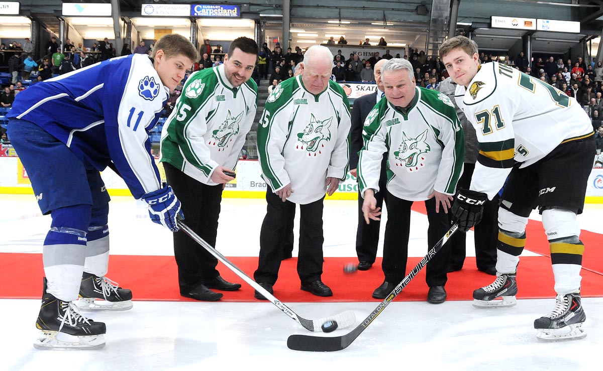 It was a night for the history books Friday night when the Memorial Cup hosts, the London Knights visited the Nickel City for the only time this season. The Sudbury Wolves honoured former wolf and London Knights co-owner and head coach Dale Hunter prior to the game by retiring #15, in front of the 4535 fans at the Sudbury Arena Friday night.