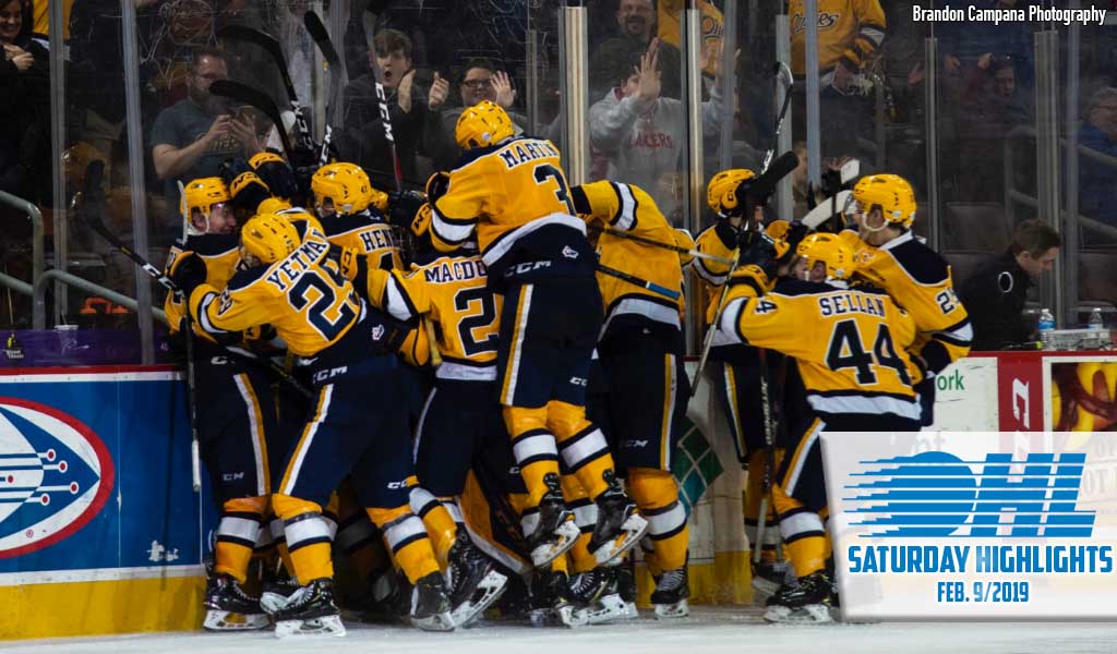 {"league":"ohl","site_api_key":"f1aa699db3d81487","season":"","sponsor":"","link":"","days_ahead":"7","days_back":"3","team":"","team_class":"ohl-ohl","base_url":"https:\/\/chl.ca\/ohl","language":"en","view":"scorebar","scoreboard":[{"ID":"28538","SeasonID":"83","league_id":"1","game_number":"389","game_letter":"","game_type":"","quick_score":"0","Date":"2026-01-09","FloCoreEventId":"14477714","FloLiveEventId":"194654","GameDate":"Fri, Jan 9","GameDateISO8601":"2026-01-09T19:00:00-05:00","ScheduledTime":"19:00:00","ScheduledFormattedTime":"7:00 pm","Timezone":"Canada\/Eastern","TicketUrl":"https:\/\/www.ticketmaster.ca\/brampton-steelheads-tickets\/artist\/1753776","HomeID":"18","HomeCode":"BRAM","HomeCity":"Brampton","HomeNickname":"Steelheads","HomeLongName":"Brampton Steelheads","HomeDivision":"Central Division","HomeGoals":"1","HomeAudioUrl":"https:\/\/sauga960am.ca\/","HomeVideoUrl":"","HomeWebcastUrl":"https:\/\/flosports.link\/3JFt2Et","VisitorID":"19","VisitorCode":"NB","VisitorCity":"North Bay","VisitorNickname":"Battalion","VisitorLongName":"North Bay Battalion","VisitingDivision":"Central Division","VisitorGoals":"5","VisitorAudioUrl":"","VisitorVideoUrl":"","VisitorWebcastUrl":"https:\/\/flosports.link\/3JEH4Xi","Period":"3","PeriodNameShort":"3","PeriodNameLong":"3rd","GameClock":"00:00","GameSummaryUrl":"28538","HomeWins":"13","HomeRegulationLosses":"22","HomeOTLosses":"3","HomeShootoutLosses":"2","VisitorWins":"21","VisitorRegulationLosses":"16","VisitorOTLosses":"2","VisitorShootoutLosses":"0","GameStatus":"4","Intermission":"0","GameStatusString":"Final","GameStatusStringLong":"Final","Ord":"2026-01-09 19:00:00.000000","venue_name":"CAA Centre","venue_location":"Brampton","league_name":"Ontario Hockey League","league_code":"ohl","TimezoneShort":"EST","HomeLogo":"https:\/\/assets.leaguestat.com\/ohl\/logos\/50x50\/18.png","VisitorLogo":"https:\/\/assets.leaguestat.com\/ohl\/logos\/19.png","FloHockeyUrl":"https:\/\/flohockey.tv\/events\/14477714","combined_client_code":null},{"ID":"28539","SeasonID":"83","league_id":"1","game_number":"390","game_letter":"","game_type":"","quick_score":"0","Date":"2026-01-09","FloCoreEventId":"14477717","FloLiveEventId":"194655","GameDate":"Fri, Jan 9","GameDateISO8601":"2026-01-09T19:00:00-05:00","ScheduledTime":"19:00:00","ScheduledFormattedTime":"7:00 pm","Timezone":"Canada\/Eastern","TicketUrl":"https:\/\/www.etix.com\/ticket\/p\/46340317\/hg21-frijan92026-vssaginaw-spirit-flint-dort-financial-center-flint-firebirds-hockey?gclid=","HomeID":"13","HomeCode":"FLNT","HomeCity":"Flint","HomeNickname":"Firebirds","HomeLongName":"Flint Firebirds","HomeDivision":"West Division","HomeGoals":"4","HomeAudioUrl":"https:\/\/us103.com\/listen-live\/","HomeVideoUrl":"","HomeWebcastUrl":"https:\/\/flosports.link\/3JGZMNF","VisitorID":"34","VisitorCode":"SAG","VisitorCity":"Saginaw","VisitorNickname":"Spirit","VisitorLongName":"Saginaw Spirit","VisitingDivision":"West Division","VisitorGoals":"2","VisitorAudioUrl":"https:\/\/www.alphamediaplayer.com\/wsgwsports","VisitorVideoUrl":"","VisitorWebcastUrl":"https:\/\/flosports.link\/4mp2d6j","Period":"3","PeriodNameShort":"3","PeriodNameLong":"3rd","GameClock":"00:00","GameSummaryUrl":"28539","HomeWins":"29","HomeRegulationLosses":"9","HomeOTLosses":"2","HomeShootoutLosses":"2","VisitorWins":"15","VisitorRegulationLosses":"19","VisitorOTLosses":"3","VisitorShootoutLosses":"4","GameStatus":"4","Intermission":"0","GameStatusString":"Final","GameStatusStringLong":"Final","Ord":"2026-01-09 19:00:00.000000","venue_name":"Dort Financial Center","venue_location":"Flint, MI","league_name":"Ontario Hockey League","league_code":"ohl","TimezoneShort":"EST","HomeLogo":"https:\/\/assets.leaguestat.com\/ohl\/logos\/13.png","VisitorLogo":"https:\/\/assets.leaguestat.com\/ohl\/logos\/34.png","FloHockeyUrl":"https:\/\/flohockey.tv\/events\/14477717","combined_client_code":null},{"ID":"28541","SeasonID":"83","league_id":"1","game_number":"392","game_letter":"","game_type":"","quick_score":"0","Date":"2026-01-09","FloCoreEventId":"14477719","FloLiveEventId":"194656","GameDate":"Fri, Jan 9","GameDateISO8601":"2026-01-09T19:00:00-05:00","ScheduledTime":"19:00:00","ScheduledFormattedTime":"7:00 pm","Timezone":"Canada\/Eastern","TicketUrl":"https:\/\/kwtickets.evenue.net\/events\/RANGERS","HomeID":"10","HomeCode":"KIT","HomeCity":"Kitchener","HomeNickname":"Rangers","HomeLongName":"Kitchener Rangers","HomeDivision":"Midwest Division","HomeGoals":"4","HomeAudioUrl":"https:\/\/kitchener.citynews.ca\/audio\/","HomeVideoUrl":"https:\/\/www.rogerstv.com\/waterloo-region\/onnow","HomeWebcastUrl":"https:\/\/flosports.link\/4oHI5O7","VisitorID":"4","VisitorCode":"OSH","VisitorCity":"Oshawa","VisitorNickname":"Generals","VisitorLongName":"Oshawa Generals","VisitingDivision":"East Division","VisitorGoals":"2","VisitorAudioUrl":"http:\/\/www.mixlr.com\/oshawagenerals","VisitorVideoUrl":"","VisitorWebcastUrl":"https:\/\/flosports.link\/41PjIEe","Period":"3","PeriodNameShort":"3","PeriodNameLong":"3rd","GameClock":"00:00","GameSummaryUrl":"28541","HomeWins":"25","HomeRegulationLosses":"11","HomeOTLosses":"3","HomeShootoutLosses":"1","VisitorWins":"9","VisitorRegulationLosses":"29","VisitorOTLosses":"1","VisitorShootoutLosses":"1","GameStatus":"4","Intermission":"0","GameStatusString":"Final","GameStatusStringLong":"Final","Ord":"2026-01-09 19:00:00.000000","venue_name":"Kitchener Memorial Auditorium","venue_location":"Kitchener","league_name":"Ontario Hockey League","league_code":"ohl","TimezoneShort":"EST","HomeLogo":"https:\/\/assets.leaguestat.com\/ohl\/logos\/10.png","VisitorLogo":"https:\/\/assets.leaguestat.com\/ohl\/logos\/4.png","FloHockeyUrl":"https:\/\/flohockey.tv\/events\/14477719","combined_client_code":null},{"ID":"28542","SeasonID":"83","league_id":"1","game_number":"393","game_letter":"","game_type":"","quick_score":"0","Date":"2026-01-09","FloCoreEventId":"14477721","FloLiveEventId":"194657","GameDate":"Fri, Jan 9","GameDate