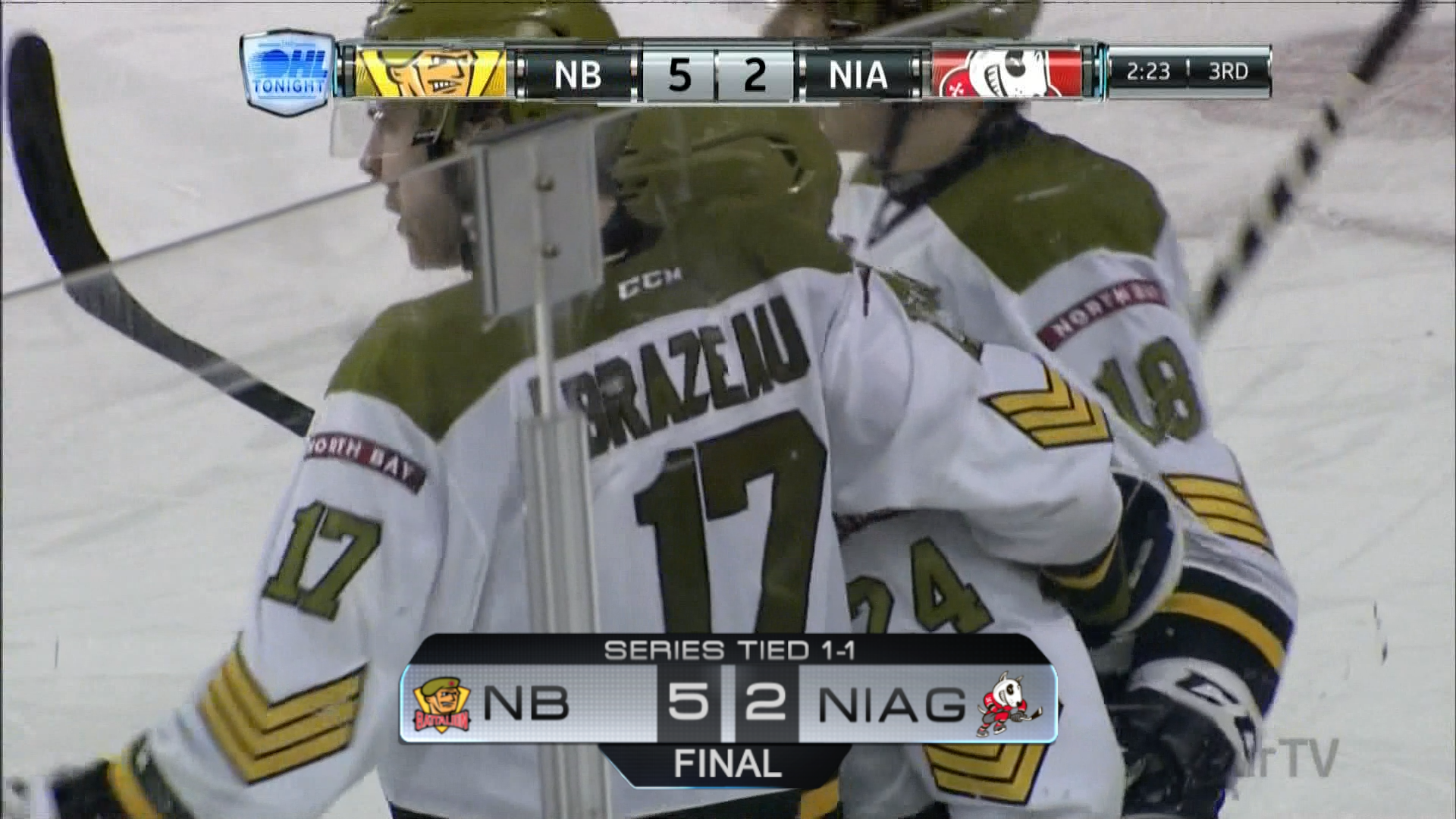 {"league":"ohl","site_api_key":"f1aa699db3d81487","season":"","sponsor":"","link":"","days_ahead":"7","days_back":"3","team":"","team_class":"ohl-ohl","base_url":"https:\/\/chl.ca\/ohl","language":"en","view":"scorebar","scoreboard":[{"ID":"28555","SeasonID":"83","league_id":"1","game_number":"406","game_letter":"","game_type":"","quick_score":"0","Date":"2026-01-11","FloCoreEventId":"14477745","FloLiveEventId":"194669","GameDate":"Sun, Jan 11","GameDateISO8601":"2026-01-11T14:05:00-05:00","ScheduledTime":"14:05:00","ScheduledFormattedTime":"2:05 pm","Timezone":"Canada\/Eastern","TicketUrl":"","HomeID":"12","HomeCode":"SBY","HomeCity":"Sudbury","HomeNickname":"Wolves","HomeLongName":"Sudbury Wolves","HomeDivision":"Central Division","HomeGoals":"4","HomeAudioUrl":"https:\/\/sudburywolves.mixlr.com\/","HomeVideoUrl":"","HomeWebcastUrl":"https:\/\/flosports.link\/41bS04t","VisitorID":"5","VisitorCode":"OTT","VisitorCity":"Ottawa","VisitorNickname":"67's","VisitorLongName":"Ottawa 67's","VisitingDivision":"East Division","VisitorGoals":"6","VisitorAudioUrl":"https:\/\/www.iheart.com\/live\/tsn-1200-7503\/","VisitorVideoUrl":"","VisitorWebcastUrl":"https:\/\/flosports.link\/3UB9MKQ","Period":"3","PeriodNameShort":"3","PeriodNameLong":"3rd","GameClock":"00:00","GameSummaryUrl":"28555","HomeWins":"16","HomeRegulationLosses":"25","HomeOTLosses":"1","HomeShootoutLosses":"0","VisitorWins":"31","VisitorRegulationLosses":"9","VisitorOTLosses":"1","VisitorShootoutLosses":"2","GameStatus":"4","Intermission":"0","GameStatusString":"Final","GameStatusStringLong":"Final","Ord":"2026-01-11 14:05:00.000000","venue_name":"Sudbury Community Arena","venue_location":"Sudbury","league_name":"Ontario Hockey League","league_code":"ohl","TimezoneShort":"EST","HomeLogo":"https:\/\/assets.leaguestat.com\/ohl\/logos\/50x50\/12.png","VisitorLogo":"https:\/\/assets.leaguestat.com\/ohl\/logos\/5.png","FloHockeyUrl":"https:\/\/flohockey.tv\/events\/14477745","combined_client_code":null},{"ID":"28554","SeasonID":"83","league_id":"1","game_number":"405","game_letter":"","game_type":"","quick_score":"0","Date":"2026-01-11","FloCoreEventId":"14477747","FloLiveEventId":"194670","GameDate":"Sun, Jan 11","GameDateISO8601":"2026-01-11T14:05:00-05:00","ScheduledTime":"14:05:00","ScheduledFormattedTime":"2:05 pm","Timezone":"Canada\/Eastern","TicketUrl":"","HomeID":"15","HomeCode":"SAR","HomeCity":"Sarnia","HomeNickname":"Sting","HomeLongName":"Sarnia Sting","HomeDivision":"West Division","HomeGoals":"3","HomeAudioUrl":"https:\/\/chok.com\/","HomeVideoUrl":"","HomeWebcastUrl":"https:\/\/flosports.link\/45XHdNV","VisitorID":"2","VisitorCode":"KGN","VisitorCity":"Kingston","VisitorNickname":"Frontenacs","VisitorLongName":"Kingston Frontenacs","VisitingDivision":"East Division","VisitorGoals":"1","VisitorAudioUrl":"https:\/\/www.iheart.com\/live\/new-country-989-7478\/","VisitorVideoUrl":"","VisitorWebcastUrl":"https:\/\/flosports.link\/4oHI5O7","Period":"3","PeriodNameShort":"3","PeriodNameLong":"3rd","GameClock":"00:00","GameSummaryUrl":"28554","HomeWins":"13","HomeRegulationLosses":"25","HomeOTLosses":"4","HomeShootoutLosses":"1","VisitorWins":"19","VisitorRegulationLosses":"21","VisitorOTLosses":"2","VisitorShootoutLosses":"2","GameStatus":"4","Intermission":"0","GameStatusString":"Final","GameStatusStringLong":"Final","Ord":"2026-01-11 14:05:00.000000","venue_name":"Progressive Auto Sales Arena","venue_location":"Sarnia","league_name":"Ontario Hockey League","league_code":"ohl","TimezoneShort":"EST","HomeLogo":"https:\/\/assets.leaguestat.com\/ohl\/logos\/15.png","VisitorLogo":"https:\/\/assets.leaguestat.com\/ohl\/logos\/50x50\/2.png","FloHockeyUrl":"https:\/\/flohockey.tv\/events\/14477747","combined_client_code":null},{"ID":"28556","SeasonID":"83","league_id":"1","game_number":"407","game_letter":"","game_type":"","quick_score":"0","Date":"2026-01-11","FloCoreEventId":"14477749","FloLiveEventId":"194671","GameDate":"Sun, Jan 11","GameDateISO8601":"2026-01-11T16:05:00-05:00","ScheduledTime":"16:05:00","ScheduledFormattedTime":"4:05 pm","Timezone":"Canada\/Eastern","TicketUrl":"https:\/\/wfcucentre.evenue.net\/event\/S26\/G21","HomeID":"17","HomeCode":"WSR","HomeCity":"Windsor","HomeNickname":"Spitfires","HomeLongName":"Windsor Spitfires","HomeDivision":"West Division","HomeGoals":"3","HomeAudioUrl":"https:\/\/www.iheart.com\/live\/am-800-cklw-7476\/","HomeVideoUrl":"","HomeWebcastUrl":"https:\/\/flosports.link\/3JoZuLy","VisitorID":"1","VisitorCode":"BFD","VisitorCity":"Brantford","VisitorNickname":"Bulldogs","VisitorLongName":"Brantford Bulldogs","VisitingDivision":"East Division","VisitorGoals":"7","VisitorAudioUrl":"https:\/\/chl.ca\/ohl-bulldogs\/audio\/","VisitorVideoUrl":"","VisitorWebcastUrl":"https:\/\/flosports.link\/4mIEuxm","Period":"3","PeriodNameShort":"3","PeriodNameLong":"3rd","GameClock":"00:00","GameSummaryUrl":"28556","HomeWins":"29","HomeRegulationLosses":"9","HomeOTLosses":"4","HomeShootoutLosses":"1","VisitorWins":"30","VisitorRegulationLosses":"7","VisitorOTLosses":"4","VisitorShootoutLosses":"1","GameStatus":"4","Intermission":"0","GameStatusString":"Final","GameStatusStringLong":"Final","Ord":"2026-01-11 16:05:00.000000","venue_name":"WFCU Centre","venue_location":"Windsor","league_name":"Ontario Hockey League","league_code":"ohl","TimezoneShort":"EST","HomeLogo":"https:\/\/assets.leaguestat.com\/ohl\/logos\/17.png","VisitorLogo":"https:\/\/assets.leaguestat.com\/ohl\/logos\/1.png","FloHockeyUrl":"https:\/\/flohockey.tv\/events\/14477749","combined_client_code":null},{"ID":"28553","SeasonID":"83","league_id":"1","game_number":"404","game_letter":"","game_type":"","quick_score":"0","Date":"2026-01-11","FloCoreEventId":"14477751","FloLiveEventId":"194672","GameDate":"Sun, Jan 11","GameDateISO8601":"2026-01-11T18:05:00-05:00","ScheduledTime":"18:05:00","ScheduledFormattedTime":"6:05 pm","Timezone":"Canada\/Eastern","TicketUrl":"https:\/\/tributecommunitiescentre.evenue.net\/event\/GEN25\/A11","HomeID":"4"