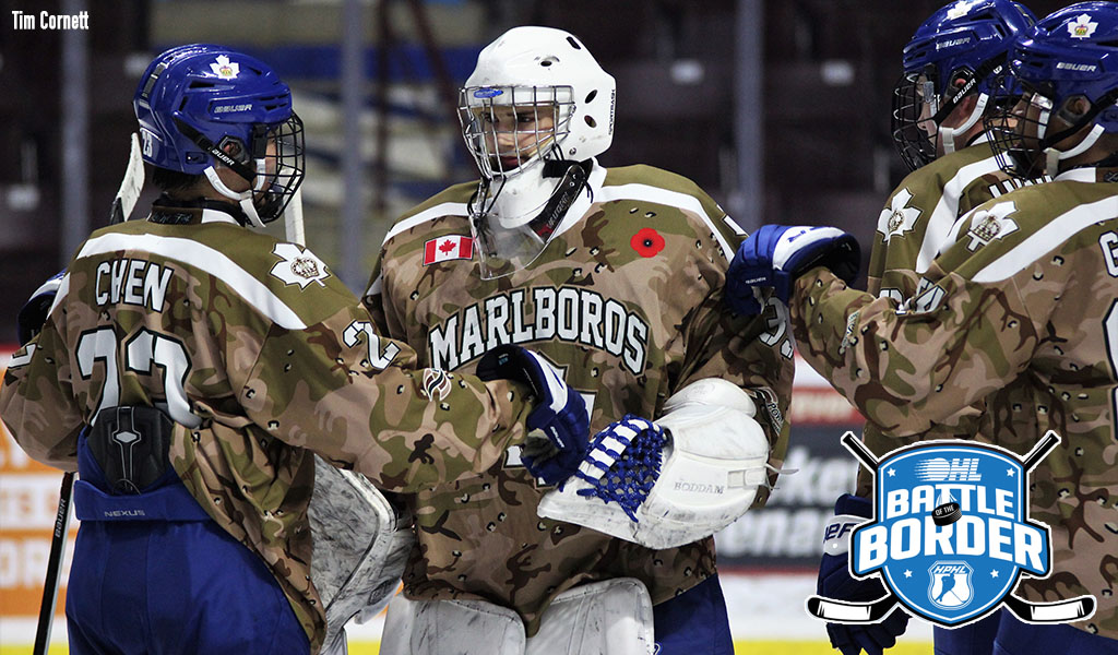 The Toronto Marlboros started the 2019 Battle of the Border with a 2-1 win as Samuel Buonaguro stood tall, backstopping his team to victory. Luke Devlin and Lorenzo Bonaiuto provided Marlboros goals while Detroit’s Seth Constance broke-up Buonaguro’s shutout bid 3:44 into the third period. The Marlies held Detroit to 0-for-3 on the power play, killing off three straight penalties to end the game.