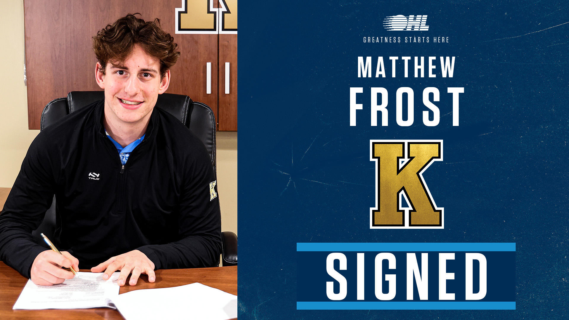 Kingston, Ontario – The Kingston Frontenacs Hockey Club is pleased to announce the signing of forward Matthew Frost to an OHL Scholarship and Development agreement.