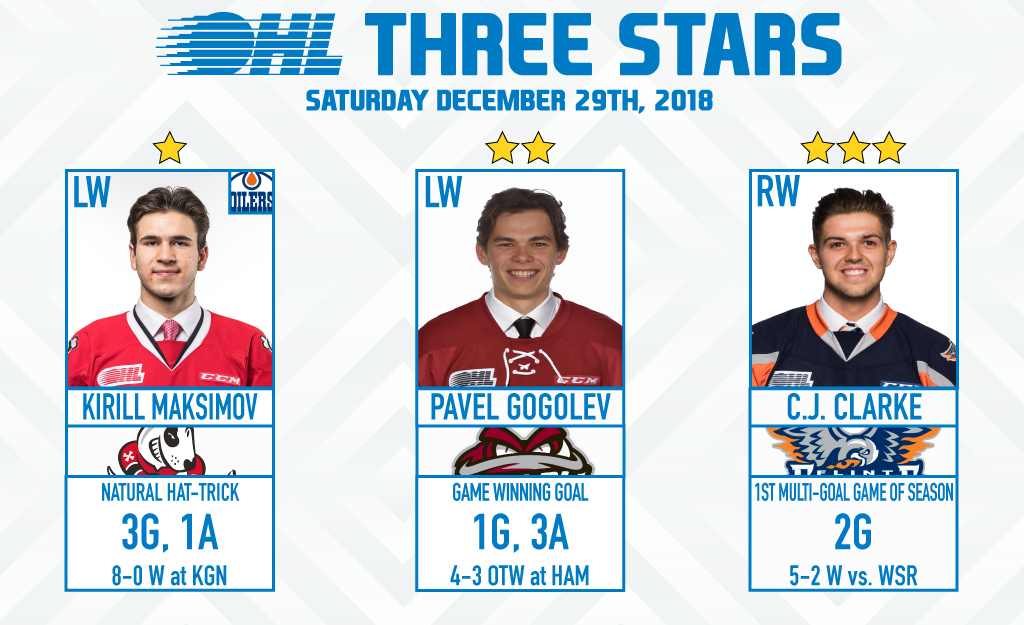 Pavel Gogolev was in on all four goals, scoring the overtime winner 1:51 into the extra frame to give the Guelph Storm a 4-3 win in Hamilton. Gogolev picked off a Bulldogs turnover to beat rookie Zach Roy up high and give the Storm a fifth straight win. Gogolev’s goal and three assists give him 27 points (10-17–27) over 33 games this season and eight (3-5–8) through his first four games in a Storm uniform. The 18-year-old from Moscow, Russia was Peterborough’s first round (8th overall) pick back in 2016. He attended training camp with the Detroit Red Wings this past September.