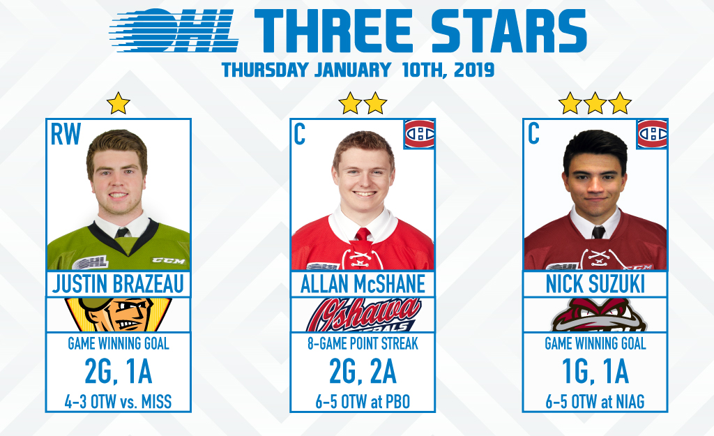 {"league":"ohl","site_api_key":"f1aa699db3d81487","season":"","sponsor":"","link":"","days_ahead":"7","days_back":"3","team":"","team_class":"ohl-ohl","base_url":"https:\/\/chl.ca\/ohl","language":"en","view":"scorebar","scoreboard":[{"ID":"28698","SeasonID":"83","league_id":"1","game_number":"549","game_letter":"","game_type":"","quick_score":"0","Date":"2026-02-19","FloCoreEventId":"14478043","FloLiveEventId":"194815","GameDate":"Thu, Feb 19","GameDateISO8601":"2026-02-19T19:00:00-05:00","ScheduledTime":"19:00:00","ScheduledFormattedTime":"7:00 pm","Timezone":"Canada\/Eastern","TicketUrl":"","HomeID":"7","HomeCode":"BAR","HomeCity":"Barrie","HomeNickname":"Colts","HomeLongName":"Barrie Colts","HomeDivision":"Central Division","HomeGoals":"4","HomeAudioUrl":"","HomeVideoUrl":"","HomeWebcastUrl":"https:\/\/flosports.link\/46ZTfHG","VisitorID":"11","VisitorCode":"OS","VisitorCity":"Owen Sound","VisitorNickname":"Attack","VisitorLongName":"Owen Sound Attack","VisitingDivision":"Midwest Division","VisitorGoals":"3","VisitorAudioUrl":"https:\/\/bayshore.leanplayer.com\/CFOSAM","VisitorVideoUrl":"","VisitorWebcastUrl":"https:\/\/flosports.link\/47CN8t3","Period":"4","PeriodNameShort":"SO","PeriodNameLong":"SO","GameClock":"00:00","GameSummaryUrl":"28698","HomeWins":"40","HomeRegulationLosses":"11","HomeOTLosses":"2","HomeShootoutLosses":"4","VisitorWins":"21","VisitorRegulationLosses":"29","VisitorOTLosses":"2","VisitorShootoutLosses":"5","GameStatus":"4","Intermission":"0","GameStatusString":"Final","GameStatusStringLong":"Final SO","Ord":"2026-02-19 19:00:00.000000","venue_name":"Sadlon Arena","venue_location":"Barrie, ON","league_name":"Ontario Hockey League","league_code":"ohl","TimezoneShort":"EST","HomeLogo":"https:\/\/assets.leaguestat.com\/ohl\/logos\/50x50\/7.png","VisitorLogo":"https:\/\/assets.leaguestat.com\/ohl\/logos\/11.png","FloHockeyUrl":"https:\/\/flohockey.tv\/events\/14478043","combined_client_code":null},{"ID":"28700","SeasonID":"83","league_id":"1","game_number":"551","game_letter":"","game_type":"","quick_score":"0","Date":"2026-02-19","FloCoreEventId":"14478047","FloLiveEventId":"194817","GameDate":"Thu, Feb 19","GameDateISO8601":"2026-02-19T19:05:00-05:00","ScheduledTime":"19:05:00","ScheduledFormattedTime":"7:05 pm","Timezone":"Canada\/Eastern","TicketUrl":"https:\/\/www.ticketmaster.com\/saginaw-spirit-tickets\/artist\/836382","HomeID":"34","HomeCode":"SAG","HomeCity":"Saginaw","HomeNickname":"Spirit","HomeLongName":"Saginaw Spirit","HomeDivision":"West Division","HomeGoals":"2","HomeAudioUrl":"https:\/\/www.alphamediaplayer.com\/wsgwsports","HomeVideoUrl":"","HomeWebcastUrl":"https:\/\/flosports.link\/4mp2d6j","VisitorID":"12","VisitorCode":"SBY","VisitorCity":"Sudbury","VisitorNickname":"Wolves","VisitorLongName":"Sudbury Wolves","VisitingDivision":"Central Division","VisitorGoals":"1","VisitorAudioUrl":"https:\/\/sudburywolves.mixlr.com\/","VisitorVideoUrl":"","VisitorWebcastUrl":"https:\/\/flosports.link\/41bS04t","Period":"3","PeriodNameShort":"3","PeriodNameLong":"3rd","GameClock":"00:00","GameSummaryUrl":"28700","HomeWins":"21","HomeRegulationLosses":"29","HomeOTLosses":"3","HomeShootoutLosses":"4","VisitorWins":"23","VisitorRegulationLosses":"31","VisitorOTLosses":"2","VisitorShootoutLosses":"0","GameStatus":"4","Intermission":"0","GameStatusString":"Final","GameStatusStringLong":"Final","Ord":"2026-02-19 19:05:00.000000","venue_name":"Dow Event Center","venue_location":"Saginaw","league_name":"Ontario Hockey League","league_code":"ohl","TimezoneShort":"EST","HomeLogo":"https:\/\/assets.leaguestat.com\/ohl\/logos\/34.png","VisitorLogo":"https:\/\/assets.leaguestat.com\/ohl\/logos\/50x50\/12.png","FloHockeyUrl":"https:\/\/flohockey.tv\/events\/14478047","combined_client_code":null},{"ID":"28699","SeasonID":"83","league_id":"1","game_number":"550","game_letter":"","game_type":"","quick_score":"0","Date":"2026-02-19","FloCoreEventId":"14478044","FloLiveEventId":"194816","GameDate":"Thu, Feb 19","GameDateISO8601":"2026-02-19T19:05:00-05:00","ScheduledTime":"19:05:00","ScheduledFormattedTime":"7:05 pm","Timezone":"Canada\/Eastern","TicketUrl":"https:\/\/tickets.memorialcentre.ca\/Online\/default.asp","HomeID":"6","HomeCode":"PBO","HomeCity":"Peterborough","HomeNickname":"Petes","HomeLongName":"Peterborough Petes","HomeDivision":"East Division","HomeGoals":"4","HomeAudioUrl":"https:\/\/player1.radioplace.co\/player\/popup\/cjmb-fm\/","HomeVideoUrl":"","HomeWebcastUrl":"https:\/\/flosports.link\/4mPIGLN","VisitorID":"19","VisitorCode":"NB","VisitorCity":"North Bay","VisitorNickname":"Battalion","VisitorLongName":"North Bay Battalion","VisitingDivision":"Central Division","VisitorGoals":"5","VisitorAudioUrl":"","VisitorVideoUrl":"","VisitorWebcastUrl":"https:\/\/flosports.link\/3JEH4Xi","Period":"3","PeriodNameShort":"3","PeriodNameLong":"3rd","GameClock":"00:00","GameSummaryUrl":"28699","HomeWins":"32","HomeRegulationLosses":"21","HomeOTLosses":"1","HomeShootoutLosses":"2","VisitorWins":"30","VisitorRegulationLosses":"23","VisitorOTLosses":"2","VisitorShootoutLosses":"1","GameStatus":"4","Intermission":"0","GameStatusString":"Final","GameStatusStringLong":"Final","Ord":"2026-02-19 19:05:00.000000","venue_name":"Peterborough Memorial Centre","venue_location":"Peterborough","league_name":"Ontario Hockey League","league_code":"ohl","TimezoneShort":"EST","HomeLogo":"https:\/\/assets.leaguestat.com\/ohl\/logos\/6.png","VisitorLogo":"https:\/\/assets.leaguestat.com\/ohl\/logos\/19.png","FloHockeyUrl":"https:\/\/flohockey.tv\/events\/14478044","combined_client_code":null},{"ID":"28706","SeasonID":"83","league_id":"1","game_number":"557","game_letter":"","game_type":"","quick_score":"0","Date":"2026-02-20","FloCoreEventId":"14478049","FloLiveEventId":"194818","GameDate":"Fri, Feb 20","GameDateISO8601":"2026-02-20T19:00:00-05:00","ScheduledTime":"19:00:00","ScheduledFormattedTime":"7:00 pm","Timezone":"Canada\/Eastern","TicketUrl":"","HomeID":"5","HomeCode":"OTT","HomeCity"