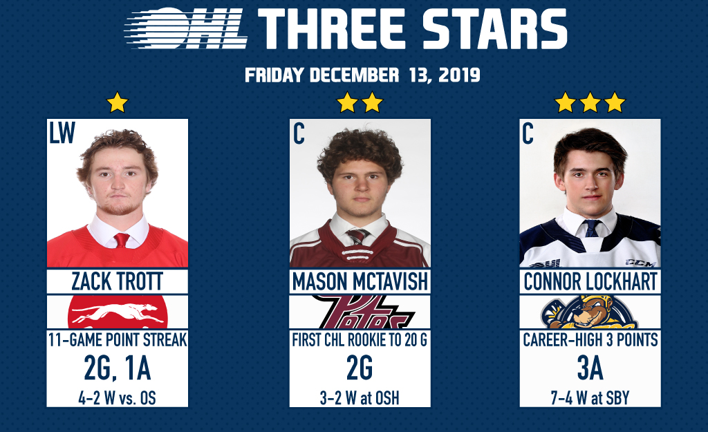 {"league":"ohl","site_api_key":"f1aa699db3d81487","season":"","sponsor":"","link":"","days_ahead":"7","days_back":"3","team":"","team_class":"ohl-ohl","base_url":"https:\/\/chl.ca\/ohl","language":"en","view":"scorebar","scoreboard":[{"ID":"28665","SeasonID":"83","league_id":"1","game_number":"516","game_letter":"","game_type":"","quick_score":"0","Date":"2026-02-11","FloCoreEventId":"14477972","FloLiveEventId":"194780","GameDate":"Wed, Feb 11","GameDateISO8601":"2026-02-11T18:30:00-05:00","ScheduledTime":"18:30:00","ScheduledFormattedTime":"6:30 pm","Timezone":"Canada\/Eastern","TicketUrl":"","HomeID":"14","HomeCode":"LDN","HomeCity":"London","HomeNickname":"Knights","HomeLongName":"London Knights","HomeDivision":"Midwest Division","HomeGoals":"2","HomeAudioUrl":"https:\/\/globalnews.ca\/radio\/am980\/player\/?gref=am980#\/","HomeVideoUrl":"https:\/\/www.rogerstv.com\/london\/onnow","HomeWebcastUrl":"https:\/\/flosports.link\/46YmBWW","VisitorID":"9","VisitorCode":"GUE","VisitorCity":"Guelph","VisitorNickname":"Storm","VisitorLongName":"Guelph Storm","VisitingDivision":"Midwest Division","VisitorGoals":"4","VisitorAudioUrl":"https:\/\/globalnews.ca\/radio\/cjoy\/player\/","VisitorVideoUrl":"https:\/\/flosports.link\/41fs8ES","VisitorWebcastUrl":"https:\/\/flosports.link\/41fs8ES","Period":"3","PeriodNameShort":"3","PeriodNameLong":"3rd","GameClock":"00:00","GameSummaryUrl":"28665","HomeWins":"31","HomeRegulationLosses":"18","HomeOTLosses":"4","HomeShootoutLosses":"1","VisitorWins":"22","VisitorRegulationLosses":"26","VisitorOTLosses":"2","VisitorShootoutLosses":"2","GameStatus":"4","Intermission":"0","GameStatusString":"Final","GameStatusStringLong":"Final","Ord":"2026-02-11 18:30:00.000000","venue_name":"Canada Life Place","venue_location":"London, ON","league_name":"Ontario Hockey League","league_code":"ohl","TimezoneShort":"EST","HomeLogo":"https:\/\/assets.leaguestat.com\/ohl\/logos\/14.png","VisitorLogo":"https:\/\/assets.leaguestat.com\/ohl\/logos\/9.png","FloHockeyUrl":"https:\/\/flohockey.tv\/events\/14477972","combined_client_code":null},{"ID":"28666","SeasonID":"83","league_id":"1","game_number":"517","game_letter":"","game_type":"","quick_score":"0","Date":"2026-02-11","FloCoreEventId":"14477971","FloLiveEventId":"194781","GameDate":"Wed, Feb 11","GameDateISO8601":"2026-02-11T19:00:00-05:00","ScheduledTime":"19:00:00","ScheduledFormattedTime":"7:00 pm","Timezone":"Canada\/Eastern","TicketUrl":"","HomeID":"5","HomeCode":"OTT","HomeCity":"Ottawa","HomeNickname":"67's","HomeLongName":"Ottawa 67's","HomeDivision":"East Division","HomeGoals":"6","HomeAudioUrl":"https:\/\/www.iheart.com\/live\/tsn-1200-7503\/","HomeVideoUrl":"","HomeWebcastUrl":"https:\/\/flosports.link\/3UB9MKQ","VisitorID":"4","VisitorCode":"OSH","VisitorCity":"Oshawa","VisitorNickname":"Generals","VisitorLongName":"Oshawa Generals","VisitingDivision":"East Division","VisitorGoals":"0","VisitorAudioUrl":"http:\/\/www.mixlr.com\/oshawagenerals","VisitorVideoUrl":"","VisitorWebcastUrl":"https:\/\/flosports.link\/41PjIEe","Period":"3","PeriodNameShort":"3","PeriodNameLong":"3rd","GameClock":"00:00","GameSummaryUrl":"28666","HomeWins":"38","HomeRegulationLosses":"12","HomeOTLosses":"1","HomeShootoutLosses":"2","VisitorWins":"13","VisitorRegulationLosses":"36","VisitorOTLosses":"2","VisitorShootoutLosses":"1","GameStatus":"4","Intermission":"0","GameStatusString":"Final","GameStatusStringLong":"Final","Ord":"2026-02-11 19:00:00.000000","venue_name":"TD Place","venue_location":"Ottawa, ON","league_name":"Ontario Hockey League","league_code":"ohl","TimezoneShort":"EST","HomeLogo":"https:\/\/assets.leaguestat.com\/ohl\/logos\/5.png","VisitorLogo":"https:\/\/assets.leaguestat.com\/ohl\/logos\/4.png","FloHockeyUrl":"https:\/\/flohockey.tv\/events\/14477971","combined_client_code":null},{"ID":"28664","SeasonID":"83","league_id":"1","game_number":"515","game_letter":"","game_type":"","quick_score":"0","Date":"2026-02-11","FloCoreEventId":"14477975","FloLiveEventId":"194782","GameDate":"Wed, Feb 11","GameDateISO8601":"2026-02-11T19:00:00-05:00","ScheduledTime":"19:00:00","ScheduledFormattedTime":"7:00 pm","Timezone":"Canada\/Eastern","TicketUrl":"https:\/\/www.etix.com\/ticket\/p\/98872748\/hg27-wedfeb112026-vssaginaw-spirit-flint-dort-financial-center-flint-firebirds-hockey?gclid=","HomeID":"13","HomeCode":"FLNT","HomeCity":"Flint","HomeNickname":"Firebirds","HomeLongName":"Flint Firebirds","HomeDivision":"West Division","HomeGoals":"4","HomeAudioUrl":"https:\/\/us103.com\/listen-live\/","HomeVideoUrl":"","HomeWebcastUrl":"https:\/\/flosports.link\/3JGZMNF","VisitorID":"34","VisitorCode":"SAG","VisitorCity":"Saginaw","VisitorNickname":"Spirit","VisitorLongName":"Saginaw Spirit","VisitingDivision":"West Division","VisitorGoals":"5","VisitorAudioUrl":"https:\/\/www.alphamediaplayer.com\/wsgwsports","VisitorVideoUrl":"","VisitorWebcastUrl":"https:\/\/flosports.link\/4mp2d6j","Period":"3","PeriodNameShort":"3","PeriodNameLong":"3rd","GameClock":"00:00","GameSummaryUrl":"28664","HomeWins":"36","HomeRegulationLosses":"13","HomeOTLosses":"3","HomeShootoutLosses":"2","VisitorWins":"20","VisitorRegulationLosses":"27","VisitorOTLosses":"3","VisitorShootoutLosses":"4","GameStatus":"4","Intermission":"0","GameStatusString":"Final","GameStatusStringLong":"Final","Ord":"2026-02-11 19:00:00.000000","venue_name":"Dort Financial Center","venue_location":"Flint, MI","league_name":"Ontario Hockey League","league_code":"ohl","TimezoneShort":"EST","HomeLogo":"https:\/\/assets.leaguestat.com\/ohl\/logos\/13.png","VisitorLogo":"https:\/\/assets.leaguestat.com\/ohl\/logos\/34.png","FloHockeyUrl":"https:\/\/flohockey.tv\/events\/14477975","combined_client_code":null},{"ID":"28663","SeasonID":"83","league_id":"1","game_number":"514","game_letter":"","game_type":"","quick_score":"0","Date":"2026-02-11","FloCoreEventId":"14477977","FloLiveEventId":"194783","GameDate":"Wed, Feb 11","GameDateISO8601":"2026-02-11T19:00:00-05:00","ScheduledTime":"19:00:00"