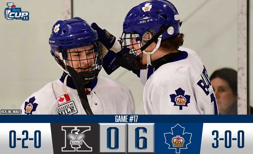 The Toronto Marlboros registered a second straight six goal contest, defeating the Thunder Bay Kings 6-0 to become the first 3-0 team at the 2019 OHL Cup Powered by Under Armour.