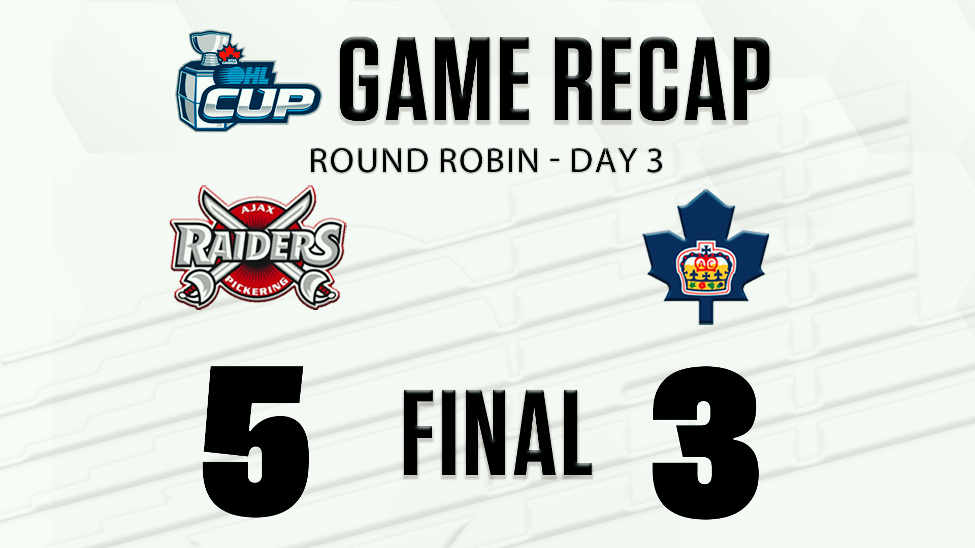 {"league":"ohl_tournament","site_api_key":"2127898b4c7e302b","season":"","sponsor":false,"link":false,"days_ahead":"7","days_back":"1","team":"","team_class":"ohlcup-ohlcup","base_url":"https:\/\/chl.ca\/ohlcup","language":"en","view":"scorebar","scoreboard":[{"ID":"1013","SeasonID":"40","league_id":"3","game_number":"3","game_letter":"","game_type":"","quick_score":"0","Date":"2026-01-14","FloCoreEventId":"","FloLiveEventId":"","GameDate":"Wed, Jan 14","GameDateISO8601":"2026-01-14T13:00:00-05:00","ScheduledTime":"13:00:00","ScheduledFormattedTime":"1:00 pm","Timezone":"Canada\/Eastern","TicketUrl":"","HomeID":"223","HomeCode":"BFLD","HomeCity":"Team Byfield","HomeNickname":"Team Byfield","HomeLongName":"Team Byfield","HomeDivision":"Top Prospects Game","HomeGoals":"2","HomeAudioUrl":"","HomeVideoUrl":"","HomeWebcastUrl":"","VisitorID":"224","VisitorCode":"McD","VisitorCity":"Team McDavid","VisitorNickname":"Team McDavid","VisitorLongName":"Team McDavid","VisitingDivision":"Top Prospects Game","VisitorGoals":"1","VisitorAudioUrl":"","VisitorVideoUrl":"","VisitorWebcastUrl":"","Period":"3","PeriodNameShort":"3","PeriodNameLong":"3rd","GameClock":"00:00","GameSummaryUrl":"1013","HomeWins":"1","HomeRegulationLosses":"1","HomeOTLosses":"0","HomeShootoutLosses":"0","VisitorWins":"0","VisitorRegulationLosses":"2","VisitorOTLosses":"0","VisitorShootoutLosses":"0","GameStatus":"4","Intermission":"0","GameStatusString":"Final","GameStatusStringLong":"Final","Ord":"2026-01-14 13:00:00.000000","venue_name":"Miskin Law Community Complex","venue_location":"Peterborough, ON","league_name":"OHL Cup","league_code":"ohlcup","TimezoneShort":"EST","HomeLogo":"https:\/\/lscluster.hockeytech.com\/download.php?file_path=img\/logos\/50x50\/223.png&client_code=ohl_tournament&w=50","VisitorLogo":"https:\/\/lscluster.hockeytech.com\/download.php?file_path=img\/logos\/50x50\/224.png&client_code=ohl_tournament&w=50","FloHockeyUrl":"","combined_client_code":null},{"ID":"1014","SeasonID":"40","league_id":"3","game_number":"4","game_letter":"","game_type":"","quick_score":"0","Date":"2026-01-14","FloCoreEventId":"","FloLiveEventId":"","GameDate":"Wed, Jan 14","GameDateISO8601":"2026-01-14T15:00:00-05:00","ScheduledTime":"15:00:00","ScheduledFormattedTime":"3:00 pm","Timezone":"Canada\/Eastern","TicketUrl":"","HomeID":"222","HomeCode":"TAV","HomeCity":"Team Tavares","HomeNickname":"Team Tavares","HomeLongName":"Team Tavares","HomeDivision":"Top Prospects Game","HomeGoals":"5","HomeAudioUrl":"","HomeVideoUrl":"","HomeWebcastUrl":"","VisitorID":"225","VisitorCode":"SZKI","VisitorCity":"Team Suzuki","VisitorNickname":"Team Suzuki","VisitorLongName":"Team Suzuki","VisitingDivision":"Top Prospects Game","VisitorGoals":"3","VisitorAudioUrl":"","VisitorVideoUrl":"","VisitorWebcastUrl":"","Period":"3","PeriodNameShort":"3","PeriodNameLong":"3rd","GameClock":"00:00","GameSummaryUrl":"1014","HomeWins":"2","HomeRegulationLosses":"0","HomeOTLosses":"0","HomeShootoutLosses":"0","VisitorWins":"1","VisitorRegulationLosses":"1","VisitorOTLosses":"0","VisitorShootoutLosses":"0","GameStatus":"4","Intermission":"0","GameStatusString":"Final","GameStatusStringLong":"Final","Ord":"2026-01-14 15:00:00.000000","venue_name":"Miskin Law Community Complex","venue_location":"Peterborough, ON","league_name":"OHL Cup","league_code":"ohlcup","TimezoneShort":"EST","HomeLogo":"https:\/\/lscluster.hockeytech.com\/download.php?file_path=img\/logos\/50x50\/222.png&client_code=ohl_tournament&w=50","VisitorLogo":"https:\/\/lscluster.hockeytech.com\/download.php?file_path=img\/logos\/50x50\/225.png&client_code=ohl_tournament&w=50","FloHockeyUrl":"","combined_client_code":null}]}