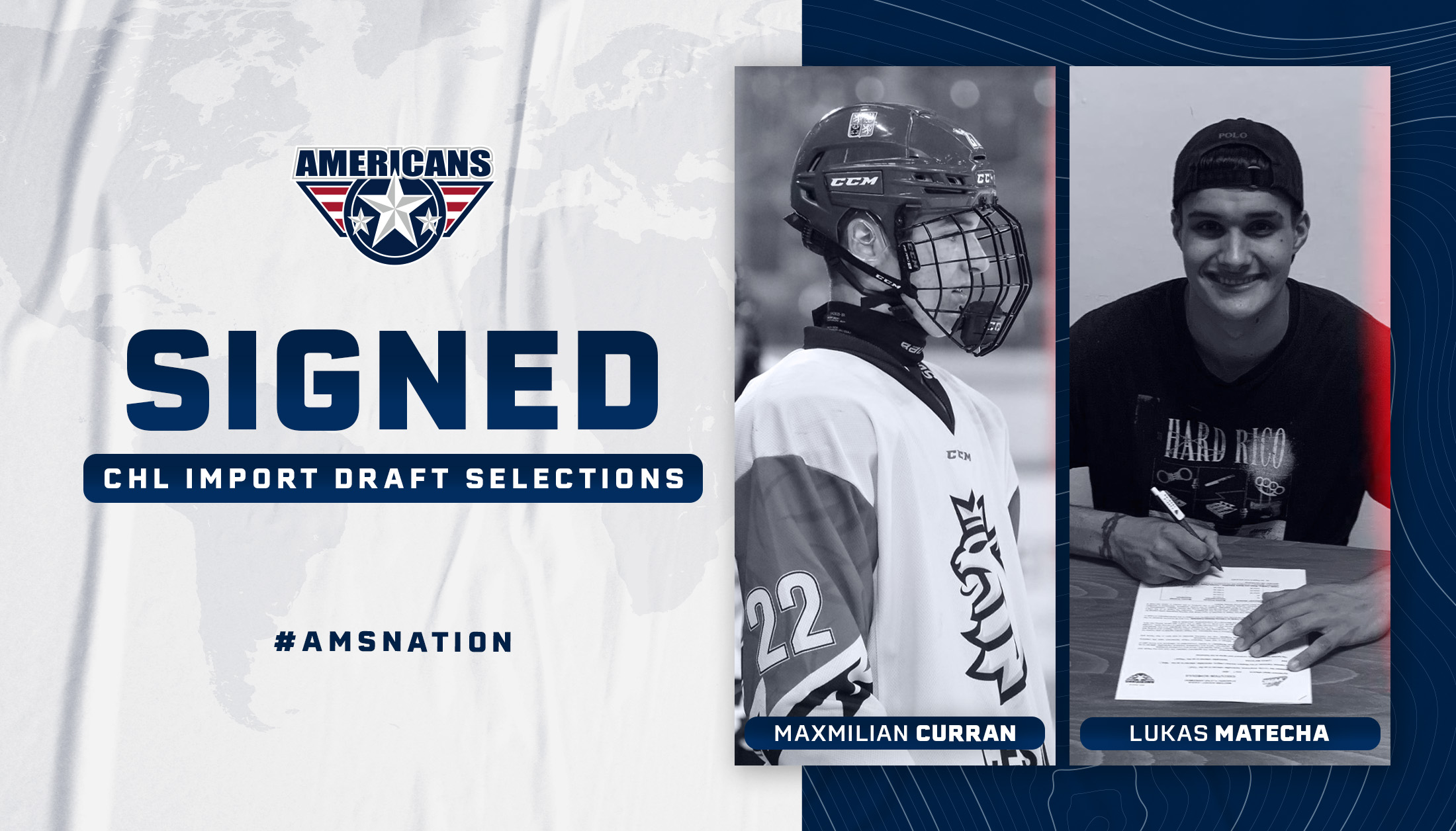 Kennewick, WA – Tri-City Americans general manager Bob Tory announced today that the team has signed their two draft picks from the 2023 CHL Import Draft, 2006-born forward Maxmilian Curran and 2005-born goaltender Lukas Matecha, to WHL Scholarship and Development Agreements. Both players are from Czechia.