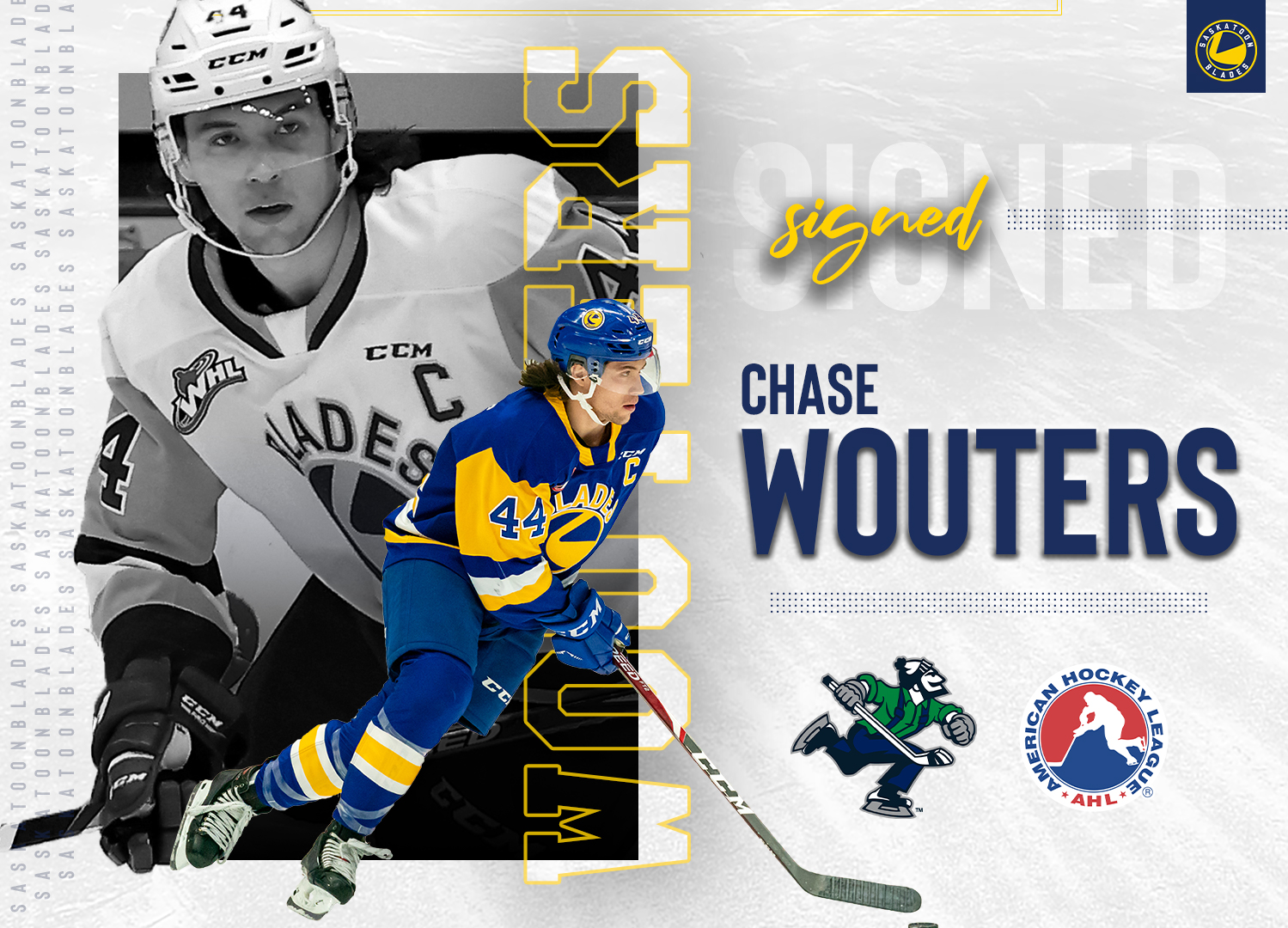 The former three-year captain of the Saskatoon Blades has signed his first pro contract with the Abbotsford Canucks — the American Hockey League affiliate of the Vancouver Canucks.