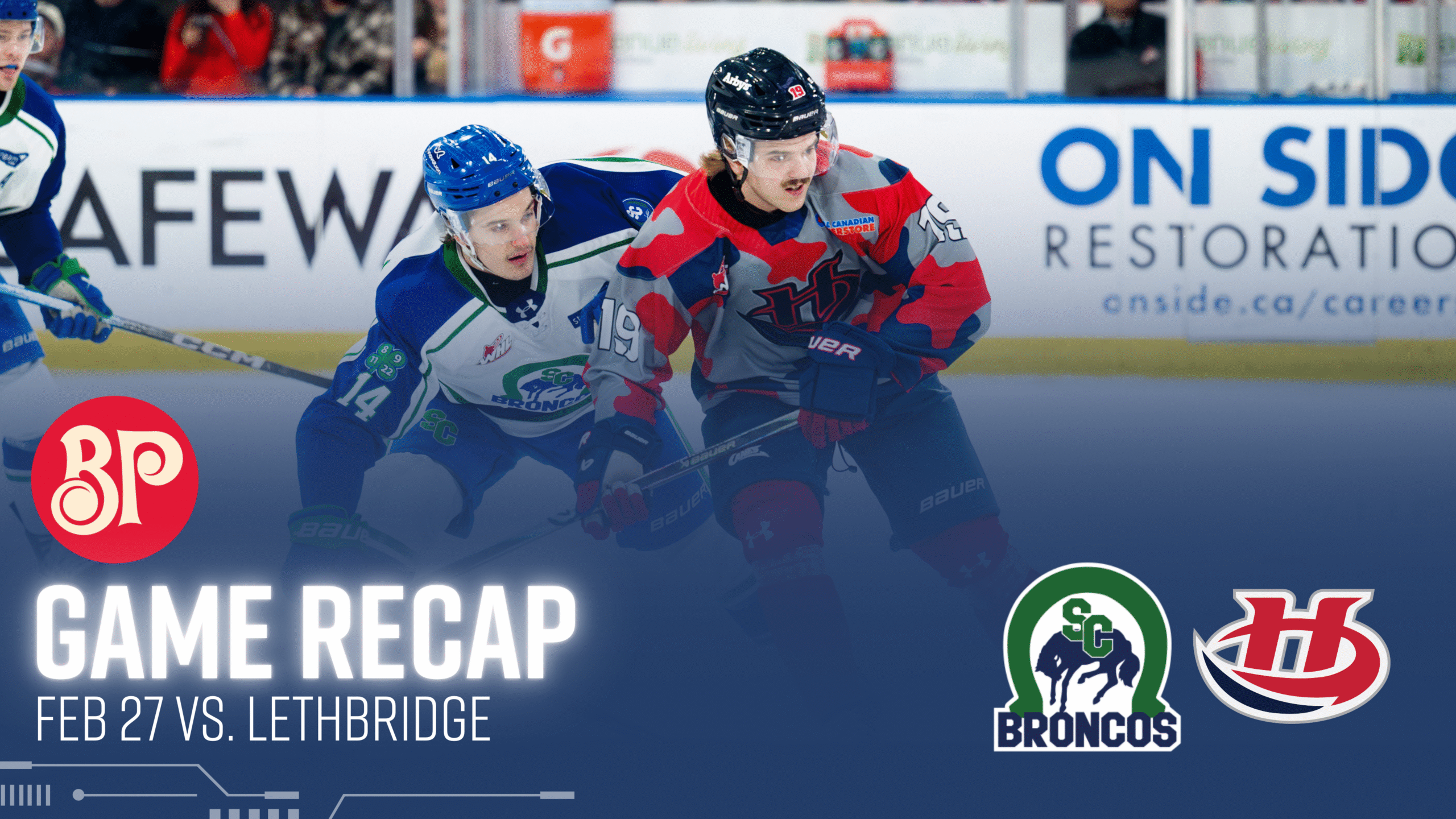 {"league":"whl","site_api_key":"41b145a848f4bd67","season":"","sponsor":false,"link":false,"days_ahead":"6","days_back":"1","team":"216","team_class":"whl-sc","base_url":"https:\/\/chl.ca\/whl-broncos","language":"en","view":"scorebar","scoreboard":[{"ID":"1022776","SeasonID":"289","league_id":"26","game_number":"651","game_letter":"","game_type":"","quick_score":"0","Date":"2026-02-24","FloCoreEventId":"","FloLiveEventId":"","GameDate":"Tue, Feb 24","GameDateISO8601":"2026-02-24T19:00:00-06:00","ScheduledTime":"19:00:00","ScheduledFormattedTime":"7:00 pm","Timezone":"Canada\/Saskatchewan","TicketUrl":"https:\/\/tickets.scbroncos.com\/?upcoming_games=1","HomeID":"216","HomeCode":"SC","HomeCity":"Swift Current","HomeNickname":"Broncos","HomeLongName":"Swift Current Broncos","HomeDivision":"East Division","HomeGoals":"1","HomeAudioUrl":"","HomeVideoUrl":"","HomeWebcastUrl":"https:\/\/victoryplus.com\/hub\/WHL","VisitorID":"277","VisitorCode":"PEN","VisitorCity":"Penticton","VisitorNickname":"Vees","VisitorLongName":"Penticton Vees","VisitingDivision":"B.C. Division","VisitorGoals":"3","VisitorAudioUrl":"","VisitorVideoUrl":"","VisitorWebcastUrl":"https:\/\/victoryplus.com\/hub\/WHL","Period":"3","PeriodNameShort":"3","PeriodNameLong":"3rd","GameClock":"00:00","GameSummaryUrl":"1022776","HomeWins":"13","HomeRegulationLosses":"39","HomeOTLosses":"3","HomeShootoutLosses":"3","VisitorWins":"38","VisitorRegulationLosses":"13","VisitorOTLosses":"4","VisitorShootoutLosses":"4","GameStatus":"4","Intermission":"0","GameStatusString":"Final","GameStatusStringLong":"Final","Ord":"2026-02-24 20:00:00.000000","venue_name":"InnovationPlex - Swift Current, SK","venue_location":"Swift Current","league_name":"Western Hockey League","league_code":"whl","TimezoneShort":"ST","HomeLogo":"https:\/\/assets.leaguestat.com\/whl\/logos\/216.png","VisitorLogo":"https:\/\/assets.leaguestat.com\/whl\/logos\/50x50\/277.png","FloHockeyUrl":"","combined_client_code":null},{"ID":"1022787","SeasonID":"289","league_id":"26","game_number":"662","game_letter":"","game_type":"","quick_score":"0","Date":"2026-02-27","FloCoreEventId":"","FloLiveEventId":"","GameDate":"Fri, Feb 27","GameDateISO8601":"2026-02-27T19:00:00-07:00","ScheduledTime":"19:00:00","ScheduledFormattedTime":"7:00 pm","Timezone":"Canada\/Mountain","TicketUrl":"https:\/\/visitlethbridgearena.evenue.net\/events\/HS","HomeID":"205","HomeCode":"LET","HomeCity":"Lethbridge","HomeNickname":"Hurricanes","HomeLongName":"Lethbridge Hurricanes","HomeDivision":"Central Division","HomeGoals":"6","HomeAudioUrl":"https:\/\/www.1067rock.ca\/play\/","HomeVideoUrl":"https:\/\/victoryplus.com\/","HomeWebcastUrl":"https:\/\/victoryplus.com\/hub\/WHL","VisitorID":"216","VisitorCode":"SC","VisitorCity":"Swift Current","VisitorNickname":"Broncos","VisitorLongName":"Swift Current Broncos","VisitingDivision":"East Division","VisitorGoals":"0","VisitorAudioUrl":"","VisitorVideoUrl":"","VisitorWebcastUrl":"https:\/\/victoryplus.com\/hub\/WHL","Period":"3","PeriodNameShort":"3","PeriodNameLong":"3rd","GameClock":"00:00","GameSummaryUrl":"1022787","HomeWins":"17","HomeRegulationLosses":"39","HomeOTLosses":"2","HomeShootoutLosses":"1","VisitorWins":"13","VisitorRegulationLosses":"39","VisitorOTLosses":"3","VisitorShootoutLosses":"3","GameStatus":"4","Intermission":"0","GameStatusString":"Final","GameStatusStringLong":"Final","Ord":"2026-02-27 21:00:00.000000","venue_name":"VisitLethbridge.com Arena - Lethbridge, AB","venue_location":"Lethbridge","league_name":"Western Hockey League","league_code":"whl","TimezoneShort":"MST","HomeLogo":"https:\/\/assets.leaguestat.com\/whl\/logos\/205.png","VisitorLogo":"https:\/\/assets.leaguestat.com\/whl\/logos\/216.png","FloHockeyUrl":"","combined_client_code":null},{"ID":"1022799","SeasonID":"289","league_id":"26","game_number":"674","game_letter":"","game_type":"","quick_score":"0","Date":"2026-02-28","FloCoreEventId":"","FloLiveEventId":"","GameDate":"Sat, Feb 28","GameDateISO8601":"2026-02-28T18:00:00-07:00","ScheduledTime":"18:00:00","ScheduledFormattedTime":"6:00 pm","Timezone":"Canada\/Mountain","TicketUrl":"https:\/\/ticketsalberta.evenue.net\/cgi-bin\/ncommerce3\/SEGetEventInfo?ticketCode=GS:RDRHC:R25:R29:&linkID=rdrhc&dataAccId=657&locale=en_US&siteId=ev_rdrhc","HomeID":"211","HomeCode":"RD","HomeCity":"Red Deer","HomeNickname":"Rebels","HomeLongName":"Red Deer Rebels","HomeDivision":"Central Division","HomeGoals":"0","HomeAudioUrl":"https:\/\/1067rewindradio.ca\/player\/?playerID=2337","HomeVideoUrl":"https:\/\/victoryplus.com\/","HomeWebcastUrl":"https:\/\/victoryplus.com\/hub\/WHL","VisitorID":"216","VisitorCode":"SC","VisitorCity":"Swift Current","VisitorNickname":"Broncos","VisitorLongName":"Swift Current Broncos","VisitingDivision":"East Division","VisitorGoals":"0","VisitorAudioUrl":"","VisitorVideoUrl":"","VisitorWebcastUrl":"https:\/\/victoryplus.com\/hub\/WHL","Period":"1","PeriodNameShort":"1","PeriodNameLong":"1st","GameClock":"00:00","GameSummaryUrl":"1022799","HomeWins":"21","HomeRegulationLosses":"32","HomeOTLosses":"2","HomeShootoutLosses":"2","VisitorWins":"13","VisitorRegulationLosses":"39","VisitorOTLosses":"3","VisitorShootoutLosses":"3","GameStatus":"1","Intermission":"0","GameStatusString":"6:00PM","GameStatusStringLong":"6:00 PM MST","Ord":"2026-02-28 20:00:00.000000","venue_name":"Marchant Crane Centrium - Red Deer, AB","venue_location":"Red Deer","league_name":"Western Hockey League","league_code":"whl","TimezoneShort":"MST","HomeLogo":"https:\/\/assets.leaguestat.com\/whl\/logos\/211.png","VisitorLogo":"https:\/\/assets.leaguestat.com\/whl\/logos\/216.png","FloHockeyUrl":"","combined_client_code":null},{"ID":"1022805","SeasonID":"289","league_id":"26","game_number":"680","game_letter":"","game_type":"","quick_score":"0","Date":"2026-03-01","FloCoreEventId":"","FloLiveEventId":"","GameDate":"Sun, Mar 1","GameDateISO8601":"2026-03-01T16:00:00-07:00","ScheduledTime":"16:00:00","ScheduledFormattedTime":"4:00 pm","Timezon
