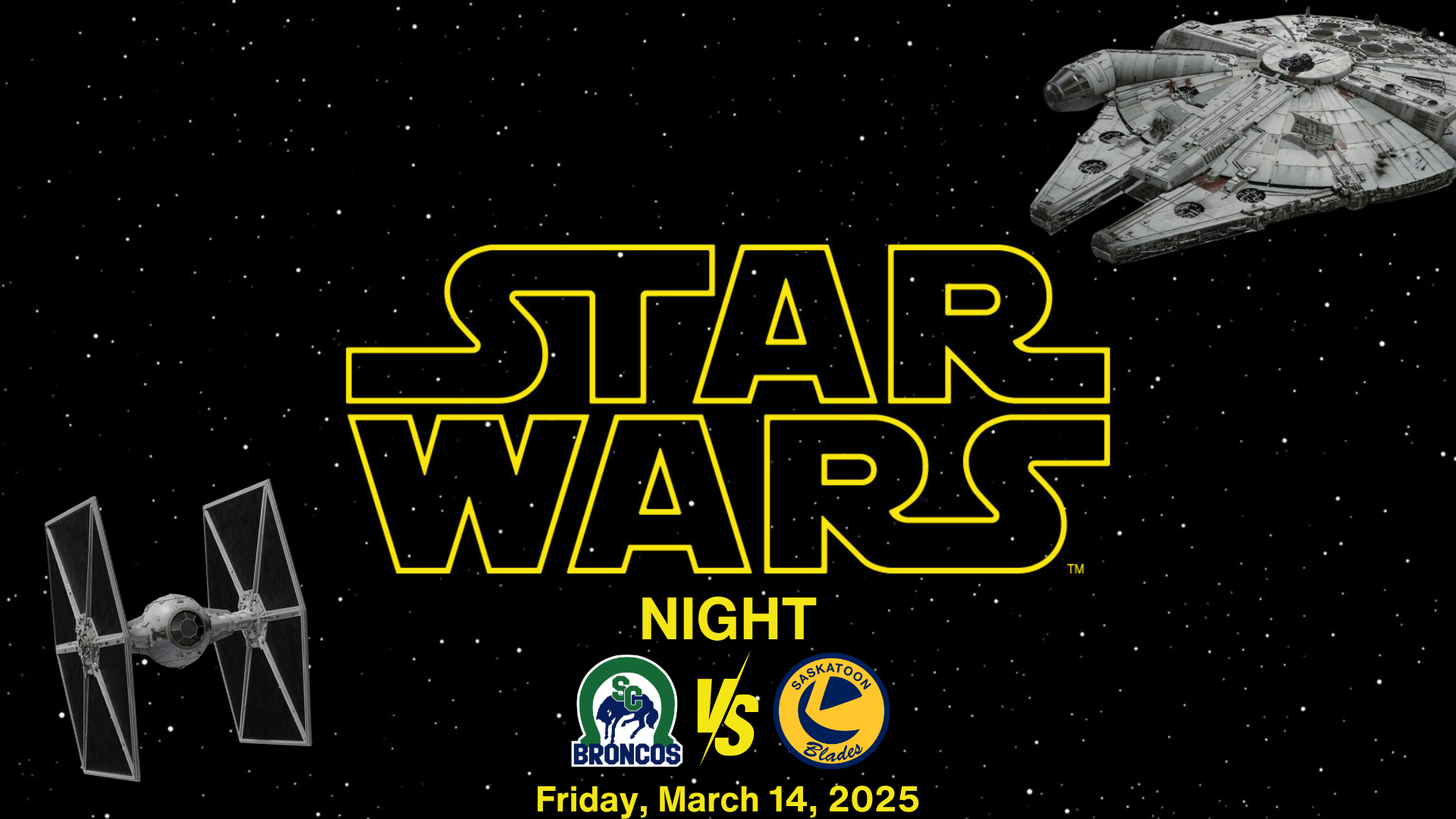 Tonight is Star Wars night at InnovationPlex as the Broncos will don Star Wars inspired jerseys that will be available for auction with proceeds going to the Salvation Army Food Bank in Swift Current. It’s Fireball Firday with shots of Fireball $5 all night and plenty of Stars related contests and photo booths all night.