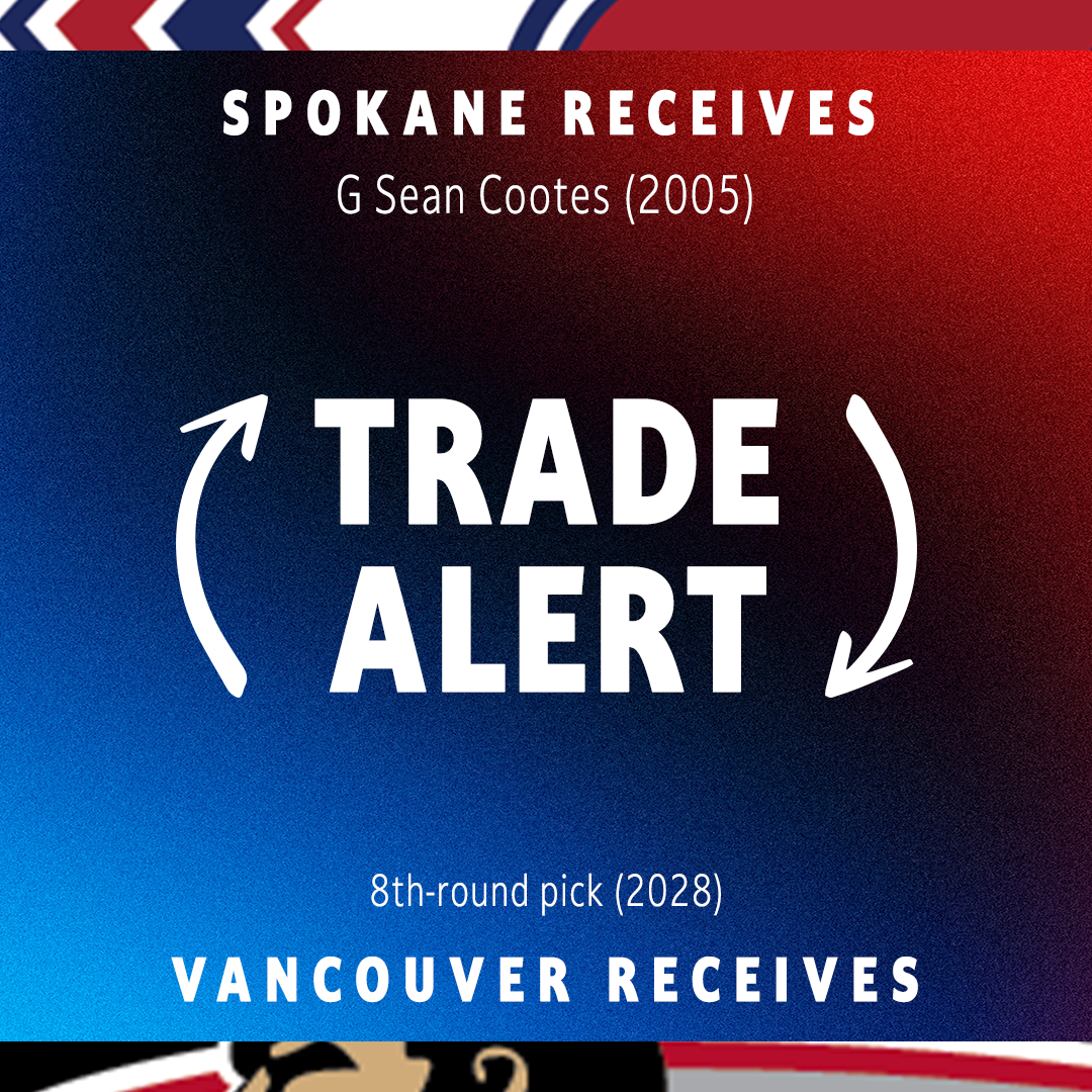 Spokane, WA – The Spokane Chiefs made a move on Thursday afternoon to acquire Sean Cootes from the Vancouver Giants in exchange for an 8th-round pick in the 2028 WHL Prospects Draft.