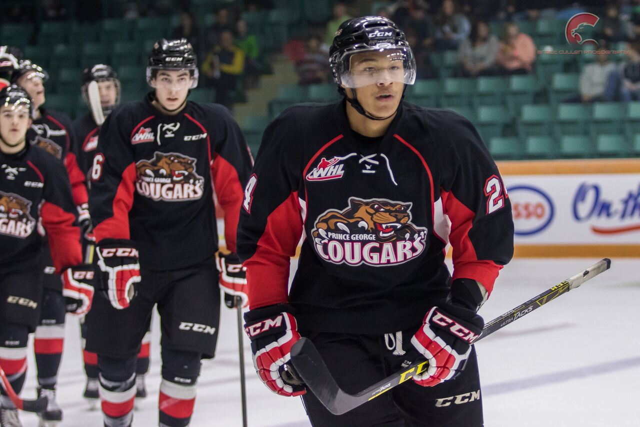 {"league":"whl","site_api_key":"41b145a848f4bd67","season":"","sponsor":false,"link":false,"days_ahead":"6","days_back":"3","team":"210","team_class":"whl-pg","base_url":"https:\/\/chl.ca\/whl-cougars","language":"en","view":"scorebar","scoreboard":[{"ID":"1022879","SeasonID":"289","league_id":"26","game_number":"754","game_letter":"","game_type":"","quick_score":"0","Date":"2026-03-17","FloCoreEventId":"","FloLiveEventId":"","GameDate":"Tue, Mar 17","GameDateISO8601":"2026-03-17T19:00:00-07:00","ScheduledTime":"19:00:00","ScheduledFormattedTime":"7:00 pm","Timezone":"Canada\/Pacific","TicketUrl":"https:\/\/ticketsnorth.evenue.net\/events\/CSG","HomeID":"210","HomeCode":"PG","HomeCity":"Prince George","HomeNickname":"Cougars","HomeLongName":"Prince George Cougars","HomeDivision":"B.C. Division","HomeGoals":"3","HomeAudioUrl":"https:\/\/radioplayer.vistaradio.ca\/cirx","HomeVideoUrl":"https:\/\/victoryplus.com\/hub\/WHL?source=navigation_link","HomeWebcastUrl":"https:\/\/victoryplus.com\/hub\/WHL","VisitorID":"203","VisitorCode":"KAM","VisitorCity":"Kamloops","VisitorNickname":"Blazers","VisitorLongName":"Kamloops Blazers","VisitingDivision":"B.C. Division","VisitorGoals":"2","VisitorAudioUrl":"https:\/\/player.radionl.com\/","VisitorVideoUrl":"https:\/\/victoryplus.com\/hub\/WHL","VisitorWebcastUrl":"https:\/\/victoryplus.com\/hub\/WHL","Period":"4","PeriodNameShort":"SO","PeriodNameLong":"SO","GameClock":"00:00","GameSummaryUrl":"1022879","HomeWins":"44","HomeRegulationLosses":"22","HomeOTLosses":"2","HomeShootoutLosses":"0","VisitorWins":"31","VisitorRegulationLosses":"24","VisitorOTLosses":"7","VisitorShootoutLosses":"6","GameStatus":"4","Intermission":"0","GameStatusString":"Final","GameStatusStringLong":"Final SO","Ord":"2026-03-17 22:00:00.000000","venue_name":"CN Centre - Prince George, BC","venue_location":"Prince George","league_name":"Western Hockey League","league_code":"whl","TimezoneShort":"PDT","HomeLogo":"https:\/\/assets.leaguestat.com\/whl\/logos\/210.png","VisitorLogo":"https:\/\/assets.leaguestat.com\/whl\/logos\/203.png","FloHockeyUrl":"","combined_client_code":null},{"ID":"1022893","SeasonID":"289","league_id":"26","game_number":"768","game_letter":"","game_type":"","quick_score":"0","Date":"2026-03-20","FloCoreEventId":"","FloLiveEventId":"","GameDate":"Fri, Mar 20","GameDateISO8601":"2026-03-20T19:05:00-07:00","ScheduledTime":"19:05:00","ScheduledFormattedTime":"7:05 pm","Timezone":"Canada\/Pacific","TicketUrl":"https:\/\/selectyourtickets.evenue.net\/event\/VR2526\/VG33","HomeID":"227","HomeCode":"VIC","HomeCity":"Victoria","HomeNickname":"Royals","HomeLongName":"Victoria Royals","HomeDivision":"B.C. Division","HomeGoals":"3","HomeAudioUrl":"https:\/\/victoriaroyals.mixlr.com\/","HomeVideoUrl":"https:\/\/victoryplus.com\/hub\/VICTORIAROYALS","HomeWebcastUrl":"https:\/\/victoryplus.com\/hub\/VICTORIAROYALS","VisitorID":"210","VisitorCode":"PG","VisitorCity":"Prince George","VisitorNickname":"Cougars","VisitorLongName":"Prince George Cougars","VisitingDivision":"B.C. Division","VisitorGoals":"4","VisitorAudioUrl":"https:\/\/radioplayer.vistaradio.ca\/cirx","VisitorVideoUrl":"https:\/\/victoryplus.com\/hub\/WHL?source=navigation_link","VisitorWebcastUrl":"https:\/\/victoryplus.com\/hub\/WHL","Period":"4","PeriodNameShort":"OT","PeriodNameLong":"OT","GameClock":"00:00","GameSummaryUrl":"1022893","HomeWins":"28","HomeRegulationLosses":"30","HomeOTLosses":"6","HomeShootoutLosses":"4","VisitorWins":"44","VisitorRegulationLosses":"22","VisitorOTLosses":"2","VisitorShootoutLosses":"0","GameStatus":"4","Intermission":"0","GameStatusString":"Final","GameStatusStringLong":"Final SO","Ord":"2026-03-20 22:05:00.000000","venue_name":"Save-On-Foods Memorial Arena - Victoria, BC","venue_location":"Victoria, BC","league_name":"Western Hockey League","league_code":"whl","TimezoneShort":"PDT","HomeLogo":"https:\/\/assets.leaguestat.com\/whl\/logos\/227.png","VisitorLogo":"https:\/\/assets.leaguestat.com\/whl\/logos\/210.png","FloHockeyUrl":"","combined_client_code":null},{"ID":"1022905","SeasonID":"289","league_id":"26","game_number":"780","game_letter":"","game_type":"","quick_score":"0","Date":"2026-03-21","FloCoreEventId":"","FloLiveEventId":"","GameDate":"Sat, Mar 21","GameDateISO8601":"2026-03-21T18:05:00-07:00","ScheduledTime":"18:05:00","ScheduledFormattedTime":"6:05 pm","Timezone":"Canada\/Pacific","TicketUrl":"https:\/\/selectyourtickets.evenue.net\/event\/VR2526\/VG34","HomeID":"227","HomeCode":"VIC","HomeCity":"Victoria","HomeNickname":"Royals","HomeLongName":"Victoria Royals","HomeDivision":"B.C. Division","HomeGoals":"1","HomeAudioUrl":"https:\/\/victoriaroyals.mixlr.com\/","HomeVideoUrl":"https:\/\/victoryplus.com\/hub\/VICTORIAROYALS","HomeWebcastUrl":"https:\/\/victoryplus.com\/hub\/VICTORIAROYALS","VisitorID":"210","VisitorCode":"PG","VisitorCity":"Prince George","VisitorNickname":"Cougars","VisitorLongName":"Prince George Cougars","VisitingDivision":"B.C. Division","VisitorGoals":"2","VisitorAudioUrl":"https:\/\/radioplayer.vistaradio.ca\/cirx","VisitorVideoUrl":"https:\/\/victoryplus.com\/hub\/WHL?source=navigation_link","VisitorWebcastUrl":"https:\/\/victoryplus.com\/hub\/WHL","Period":"3","PeriodNameShort":"3","PeriodNameLong":"3rd","GameClock":"00:00","GameSummaryUrl":"1022905","HomeWins":"28","HomeRegulationLosses":"30","HomeOTLosses":"6","HomeShootoutLosses":"4","VisitorWins":"44","VisitorRegulationLosses":"22","VisitorOTLosses":"2","VisitorShootoutLosses":"0","GameStatus":"4","Intermission":"0","GameStatusString":"Final","GameStatusStringLong":"Final","Ord":"2026-03-21 21:05:00.000000","venue_name":"Save-On-Foods Memorial Arena - Victoria, BC","venue_location":"Victoria, BC","league_name":"Western Hockey League","league_code":"whl","TimezoneShort":"PDT","HomeLogo":"https:\/\/assets.leaguestat.com\/whl\/logos\/227.png","VisitorLogo":"https:\/\/assets.leaguestat.com\/whl\/logos\/210.png","FloHockeyUrl":"","combined_client_code":null},{"ID":"1022963","SeasonID":