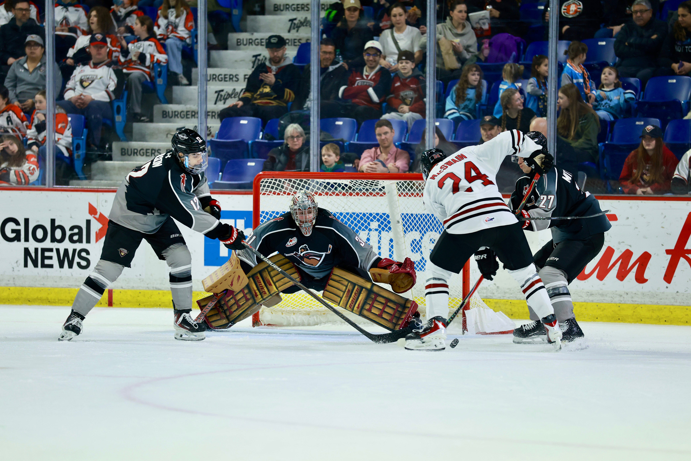 Sunday’s game marked the final WHL game in the careers of Giants over-agers Alex Cotton, Adam Hall and Connor Horning.