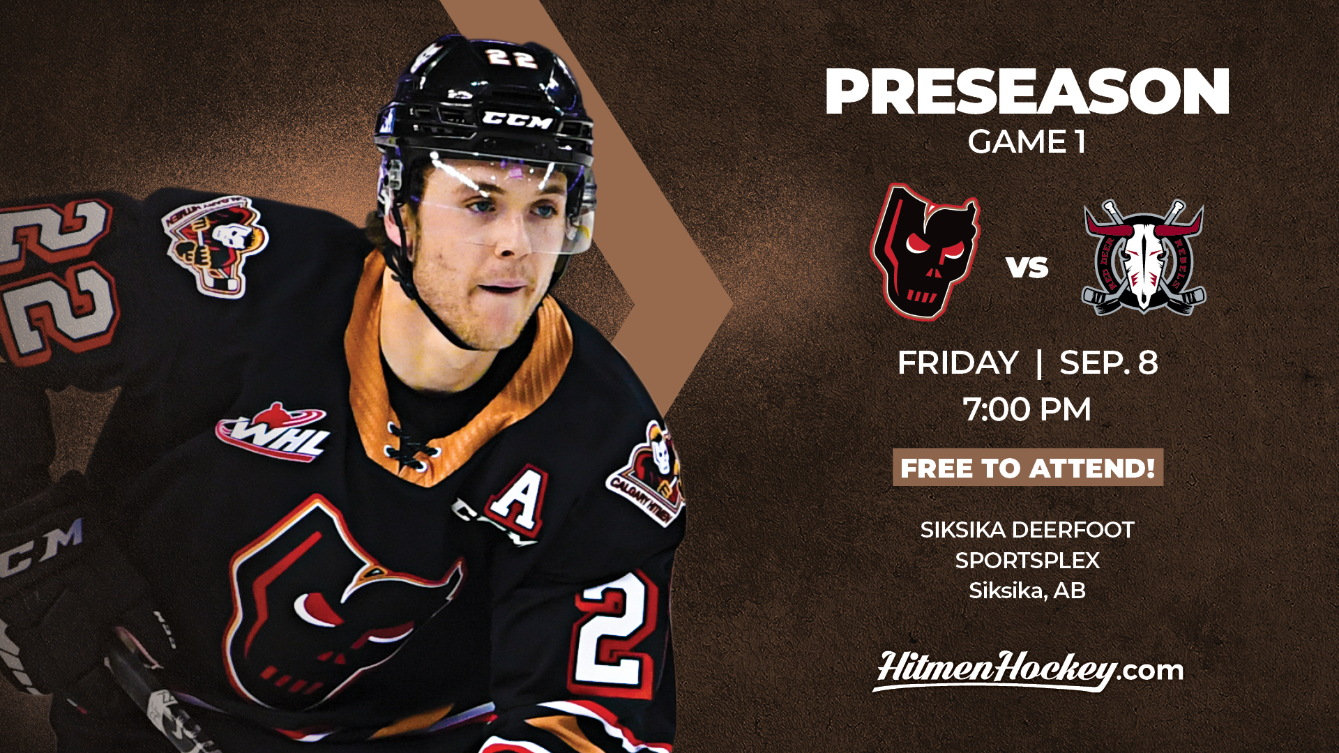 The Calgary Hitmen open up their four-game preseason this Friday, September 8th at Siksika Deerfoot Sportsplex when they welcome the Red Deer Rebels.