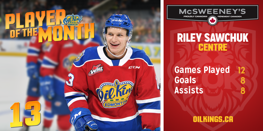 Edmonton Oil Kings centre Riley Sawchuk has been named the McSweeney’s Player of the Month for January.