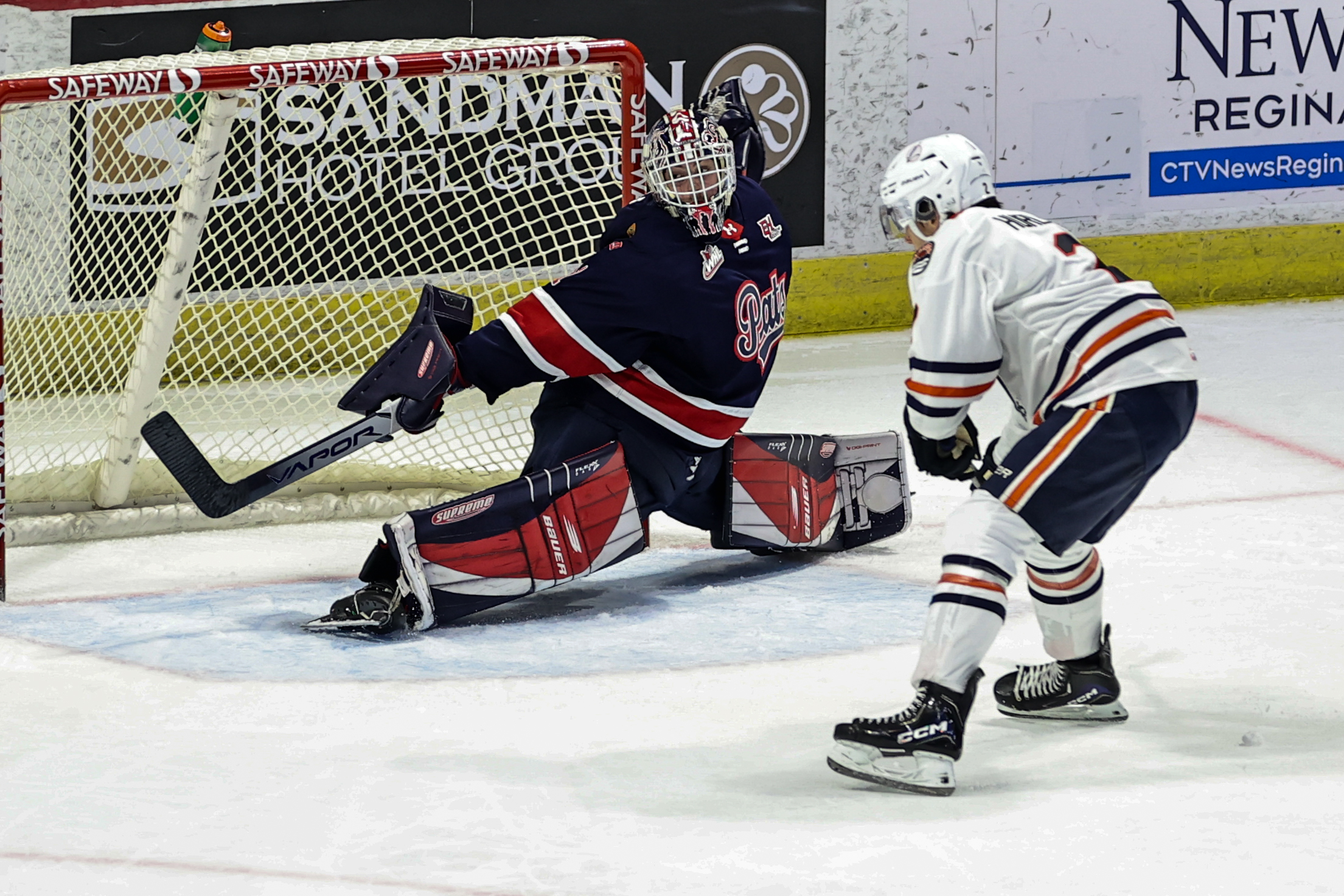Regina carried the momentum into the final frame, tying the game at 4:54 when Zachary Lansard forced a turnover and beat Edmonstone over the shoulder. The Pats then grabbed their first lead of the night at 10:39, with Caden Brown burying a loose puck in front to make it 3-2.
