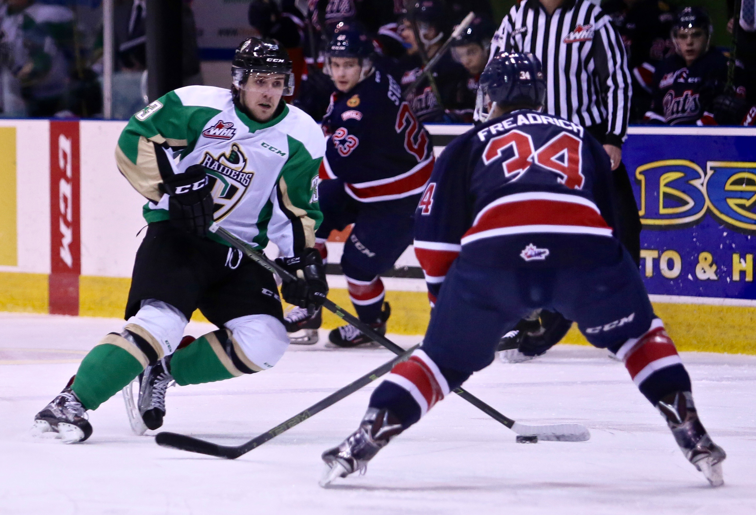 Regina, SK – Simon Stransky scored at the 2:57 mark of overtime to lift the Prince Albert Raiders to a 4-3 win over the Pats in Regina on Friday night in both team’s first game of the 2016-17 WHL Regular Season.