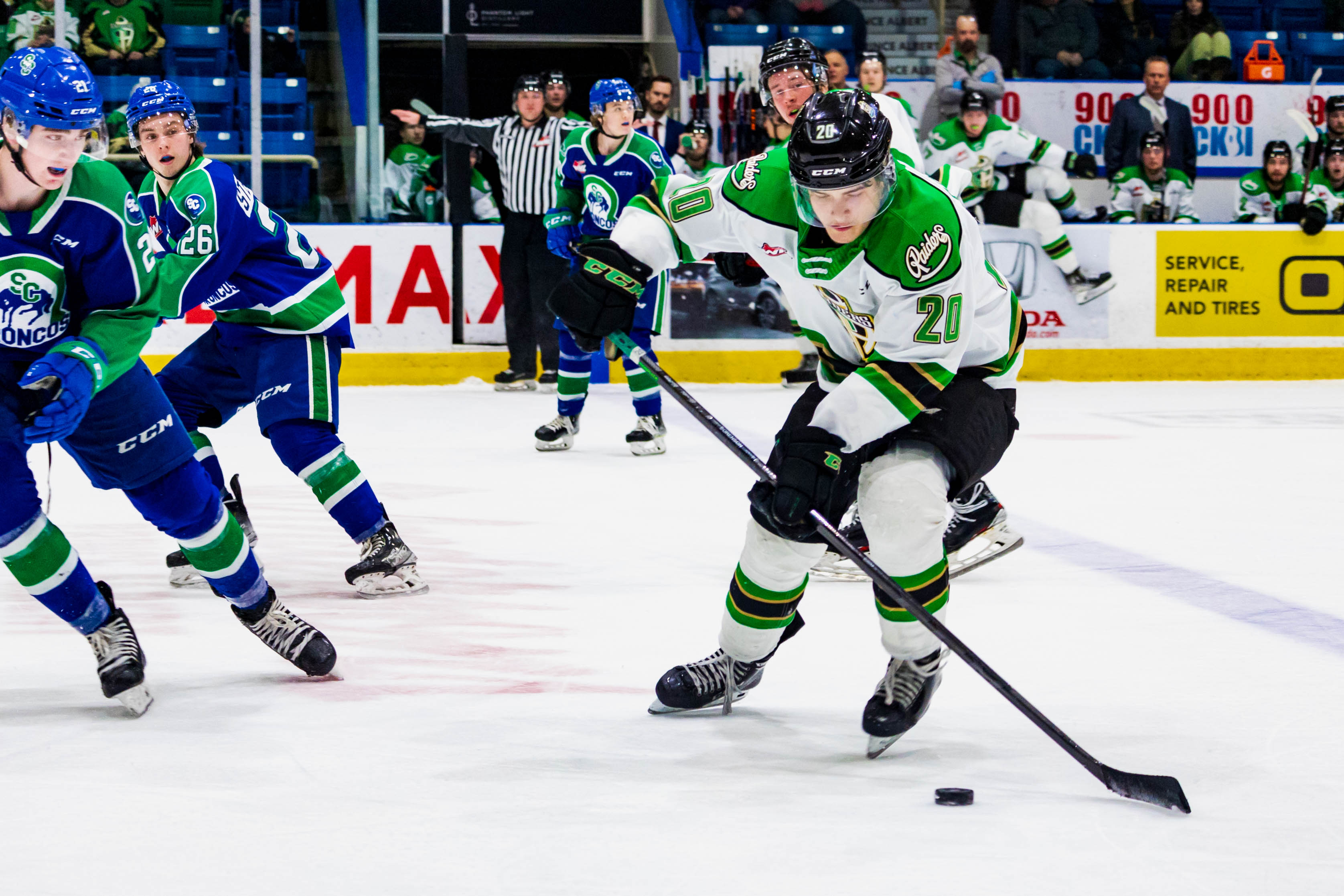 {"league":"whl","site_api_key":"41b145a848f4bd67","season":"","sponsor":false,"link":false,"days_ahead":"7","days_back":"1","team":"209","team_class":"whl-pa","base_url":"https:\/\/chl.ca\/whl-raiders","language":"en","view":"scorebar","scoreboard":[{"ID":"1022621","SeasonID":"289","league_id":"26","game_number":"496","game_letter":"","game_type":"","quick_score":"0","Date":"2026-01-22","FloCoreEventId":"","FloLiveEventId":"","GameDate":"Thu, Jan 22","GameDateISO8601":"2026-01-22T19:00:00-06:00","ScheduledTime":"19:00:00","ScheduledFormattedTime":"7:00 pm","Timezone":"Canada\/Saskatchewan","TicketUrl":"https:\/\/sasktix.evenue.net\/events\/MJW","HomeID":"207","HomeCode":"MJ","HomeCity":"Moose Jaw","HomeNickname":"Warriors","HomeLongName":"Moose Jaw Warriors","HomeDivision":"East Division","HomeGoals":"2","HomeAudioUrl":"https:\/\/discovermoosejaw.com\/country100","HomeVideoUrl":"","HomeWebcastUrl":"https:\/\/victoryplus.com\/hub\/WHL","VisitorID":"209","VisitorCode":"PA","VisitorCity":"Prince Albert","VisitorNickname":"Raiders","VisitorLongName":"Prince Albert Raiders","VisitingDivision":"East Division","VisitorGoals":"3","VisitorAudioUrl":"https:\/\/www.ckbi.com\/","VisitorVideoUrl":"","VisitorWebcastUrl":"https:\/\/victoryplus.com\/hub\/WHL","Period":"4","PeriodNameShort":"OT","PeriodNameLong":"OT","GameClock":"00:00","GameSummaryUrl":"1022621","HomeWins":"17","HomeRegulationLosses":"23","HomeOTLosses":"3","HomeShootoutLosses":"2","VisitorWins":"34","VisitorRegulationLosses":"6","VisitorOTLosses":"4","VisitorShootoutLosses":"0","GameStatus":"4","Intermission":"0","GameStatusString":"Final","GameStatusStringLong":"Final SO","Ord":"2026-01-22 20:00:00.000000","venue_name":"Temple Gardens Centre - Moose Jaw, SK","venue_location":"Moose Jaw, SK","league_name":"Western Hockey League","league_code":"whl","TimezoneShort":"ST","HomeLogo":"https:\/\/assets.leaguestat.com\/whl\/logos\/207.png","VisitorLogo":"https:\/\/assets.leaguestat.com\/whl\/logos\/209.png","FloHockeyUrl":"","combined_client_code":null},{"ID":"1022630","SeasonID":"289","league_id":"26","game_number":"505","game_letter":"","game_type":"","quick_score":"0","Date":"2026-01-23","FloCoreEventId":"","FloLiveEventId":"","GameDate":"Fri, Jan 23","GameDateISO8601":"2026-01-23T19:00:00-06:00","ScheduledTime":"19:00:00","ScheduledFormattedTime":"7:00 pm","Timezone":"Canada\/Saskatchewan","TicketUrl":"https:\/\/tickets.scbroncos.com\/?upcoming_games=1","HomeID":"216","HomeCode":"SC","HomeCity":"Swift Current","HomeNickname":"Broncos","HomeLongName":"Swift Current Broncos","HomeDivision":"East Division","HomeGoals":"1","HomeAudioUrl":"","HomeVideoUrl":"","HomeWebcastUrl":"https:\/\/victoryplus.com\/hub\/WHL","VisitorID":"209","VisitorCode":"PA","VisitorCity":"Prince Albert","VisitorNickname":"Raiders","VisitorLongName":"Prince Albert Raiders","VisitingDivision":"East Division","VisitorGoals":"6","VisitorAudioUrl":"https:\/\/www.ckbi.com\/","VisitorVideoUrl":"","VisitorWebcastUrl":"https:\/\/victoryplus.com\/hub\/WHL","Period":"3","PeriodNameShort":"3","PeriodNameLong":"3rd","GameClock":"00:00","GameSummaryUrl":"1022630","HomeWins":"10","HomeRegulationLosses":"31","HomeOTLosses":"3","HomeShootoutLosses":"0","VisitorWins":"34","VisitorRegulationLosses":"6","VisitorOTLosses":"4","VisitorShootoutLosses":"0","GameStatus":"4","Intermission":"0","GameStatusString":"Final","GameStatusStringLong":"Final","Ord":"2026-01-23 20:00:00.000000","venue_name":"InnovationPlex - Swift Current, SK","venue_location":"Swift Current","league_name":"Western Hockey League","league_code":"whl","TimezoneShort":"ST","HomeLogo":"https:\/\/assets.leaguestat.com\/whl\/logos\/216.png","VisitorLogo":"https:\/\/assets.leaguestat.com\/whl\/logos\/209.png","FloHockeyUrl":"","combined_client_code":null},{"ID":"1022637","SeasonID":"289","league_id":"26","game_number":"512","game_letter":"","game_type":"","quick_score":"0","Date":"2026-01-24","FloCoreEventId":"","FloLiveEventId":"","GameDate":"Sat, Jan 24","GameDateISO8601":"2026-01-24T19:00:00-06:00","ScheduledTime":"19:00:00","ScheduledFormattedTime":"7:00 pm","Timezone":"Canada\/Saskatchewan","TicketUrl":"https:\/\/sasktix.evenue.net\/cgi-bin\/ncommerce3\/SEGetEventInfo?ticketCode=GS:MULTI:PA26:PA20:&linkID=moosejaw-multi&dataAccId=763&locale=en_US&siteId=ev_moosejaw-multi","HomeID":"209","HomeCode":"PA","HomeCity":"Prince Albert","HomeNickname":"Raiders","HomeLongName":"Prince Albert Raiders","HomeDivision":"East Division","HomeGoals":"0","HomeAudioUrl":"https:\/\/www.ckbi.com\/","HomeVideoUrl":"","HomeWebcastUrl":"https:\/\/victoryplus.com\/hub\/WHL","VisitorID":"206","VisitorCode":"MH","VisitorCity":"Medicine Hat","VisitorNickname":"Tigers","VisitorLongName":"Medicine Hat Tigers","VisitingDivision":"Central Division","VisitorGoals":"0","VisitorAudioUrl":"","VisitorVideoUrl":"","VisitorWebcastUrl":"https:\/\/victoryplus.com\/hub\/WHL","Period":"1","PeriodNameShort":"1","PeriodNameLong":"1st","GameClock":"00:00","GameSummaryUrl":"1022637","HomeWins":"34","HomeRegulationLosses":"6","HomeOTLosses":"4","HomeShootoutLosses":"0","VisitorWins":"32","VisitorRegulationLosses":"7","VisitorOTLosses":"3","VisitorShootoutLosses":"3","GameStatus":"1","Intermission":"0","GameStatusString":"7:00PM","GameStatusStringLong":"7:00 PM ST","Ord":"2026-01-24 20:00:00.000000","venue_name":"Art Hauser Centre - Prince Albert, SK","venue_location":"Prince Albert","league_name":"Western Hockey League","league_code":"whl","TimezoneShort":"ST","HomeLogo":"https:\/\/assets.leaguestat.com\/whl\/logos\/209.png","VisitorLogo":"https:\/\/assets.leaguestat.com\/whl\/logos\/206.png","FloHockeyUrl":"","combined_client_code":null},{"ID":"1022647","SeasonID":"289","league_id":"26","game_number":"522","game_letter":"","game_type":"","quick_score":"0","Date":"2026-01-27","FloCoreEventId":"","FloLiveEventId":"","GameDate":"Tue, Jan 27","GameDateISO8601":"2026-01-27T19:00:00-06:00","ScheduledTime":"19:00:00","ScheduledFormattedTime":"7:00 pm","Timezone":"Canada\/S