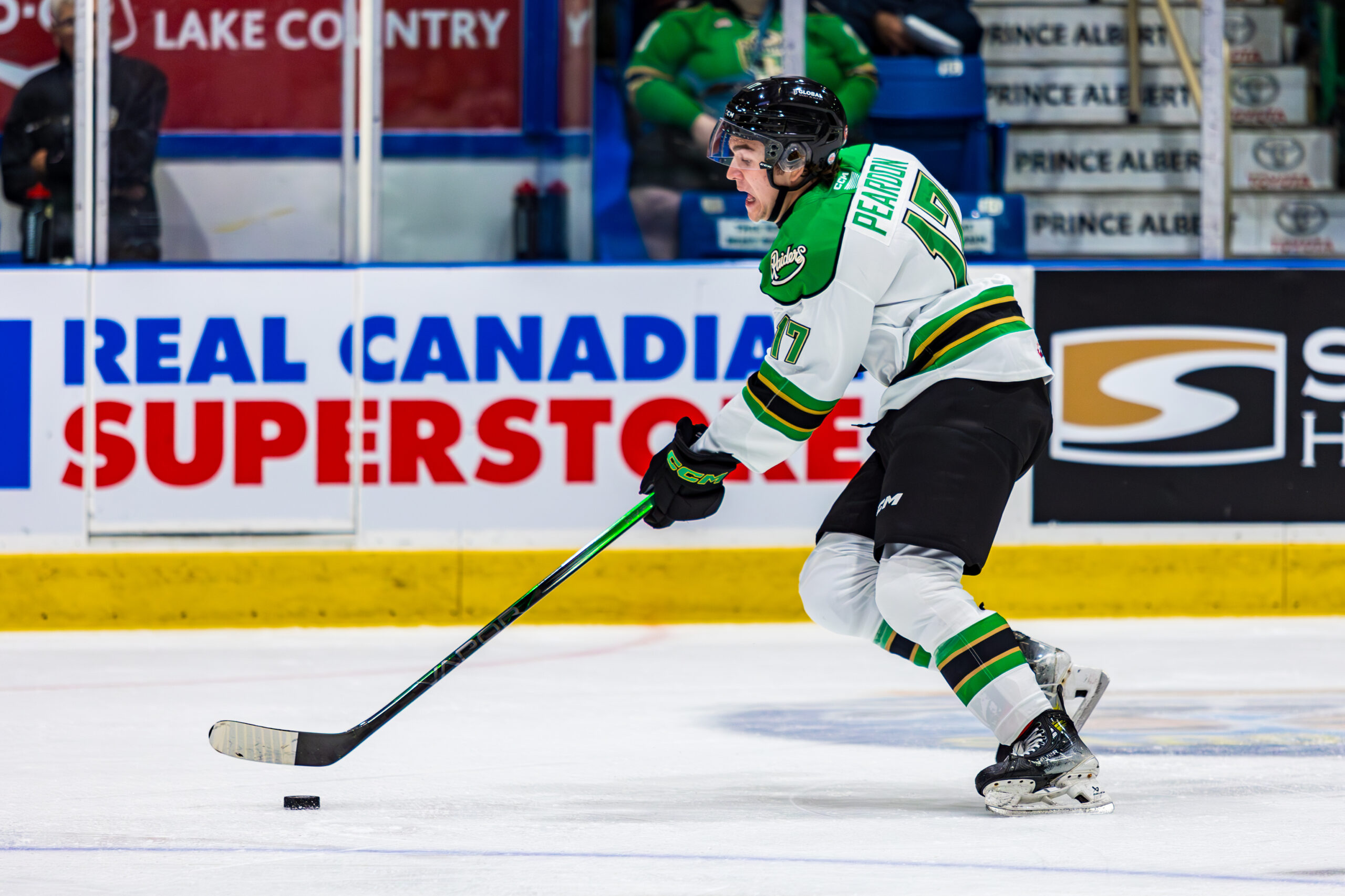 Peardon, from Outlook, SK, was selected 13th overall by Prince Albert in round one of the 2021 WHL Prospects Draft. He has three points (one goal, two assists) in 16 games with the Raiders this season, and 27 points in 126 games for his career.