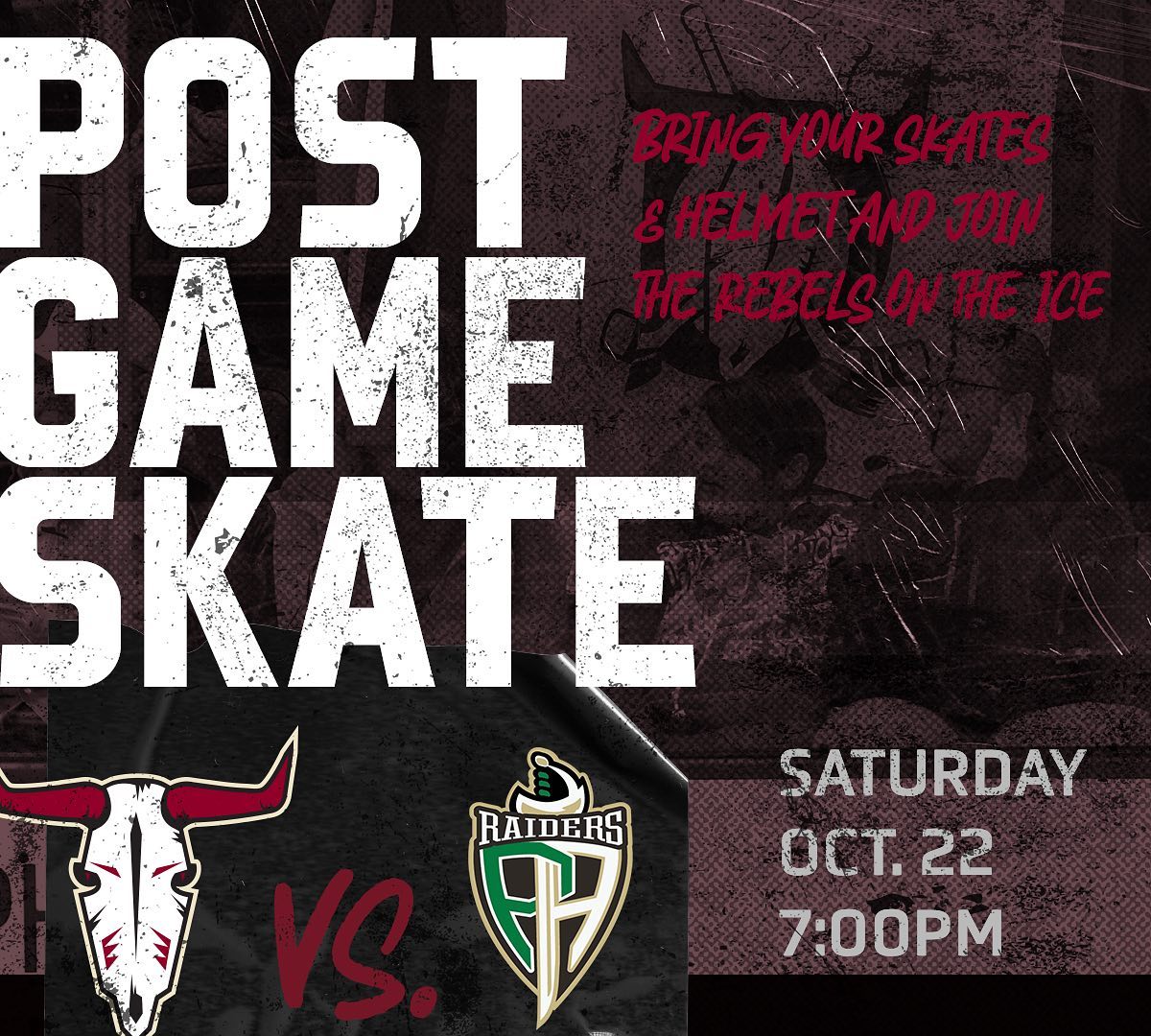 - Head back to that area once the game is over to get suited up to skate with the Rebels