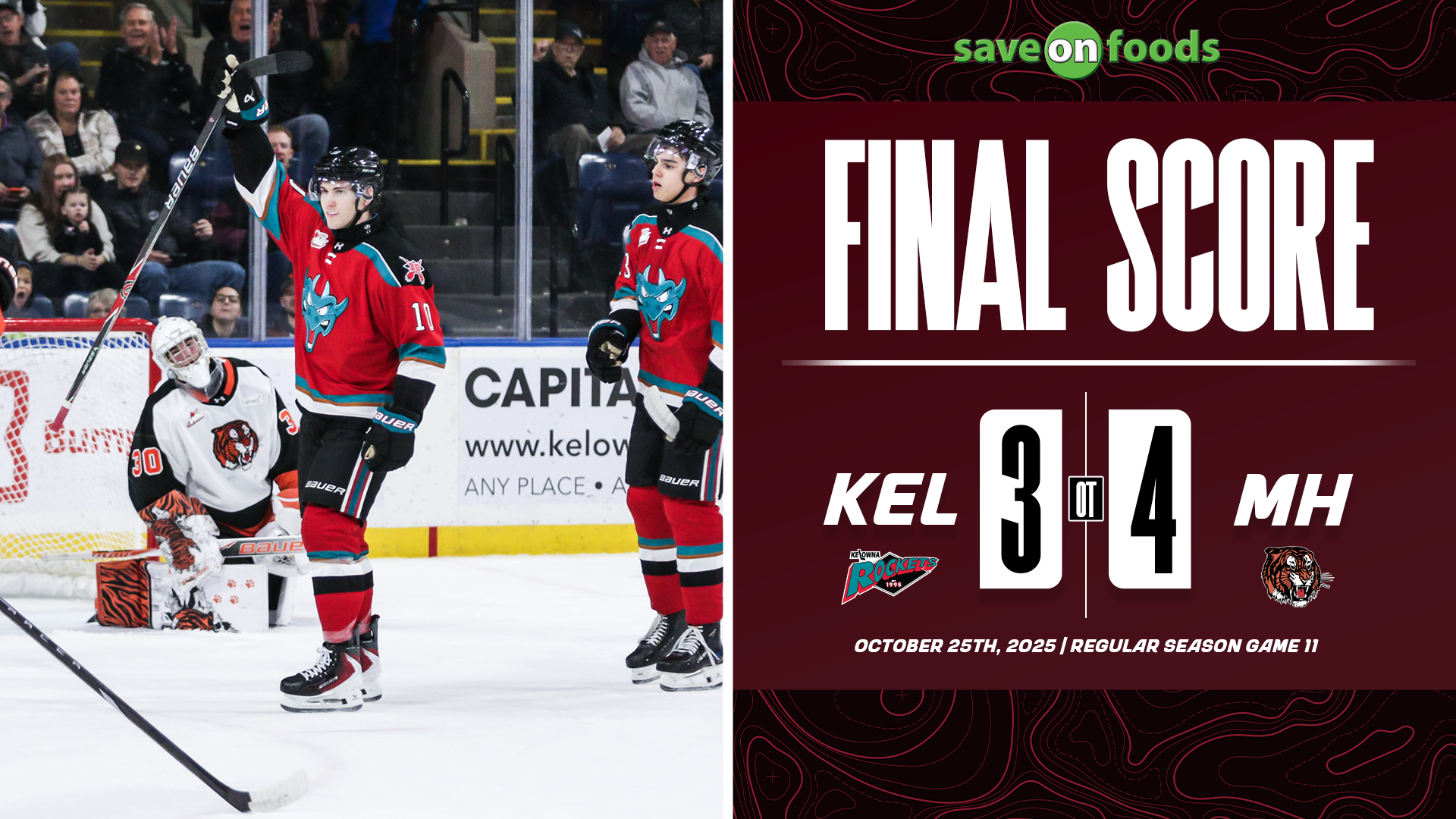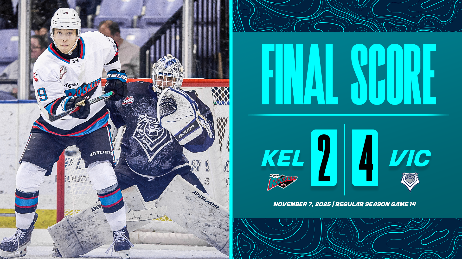 The Kelowna Rockets dropped the first of back-to-back games against the Victoria Royals on Friday night, falling 4–2 at the…