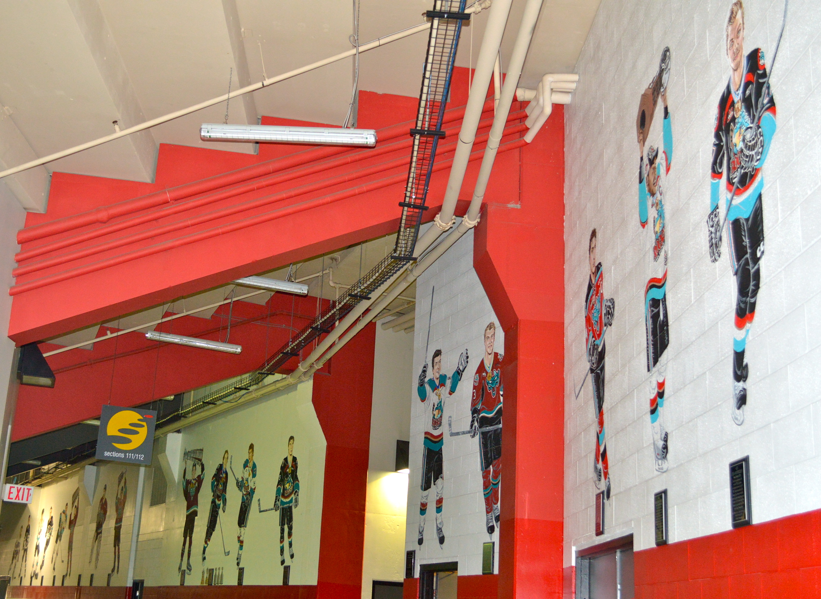 The mural is painted on the outside wall of the concourse. It begins at section 109 and stretches to section 114. Joey Burdziuk, an artist that lives in Edmonton, does every painting on the mural. She comes out to Kelowna to make additions to the wall. With a player like Duncan Keith, who won three Stanley Cups and two Olympic gold medals after the mural was already painted, those accolades are painted on at a later date.
