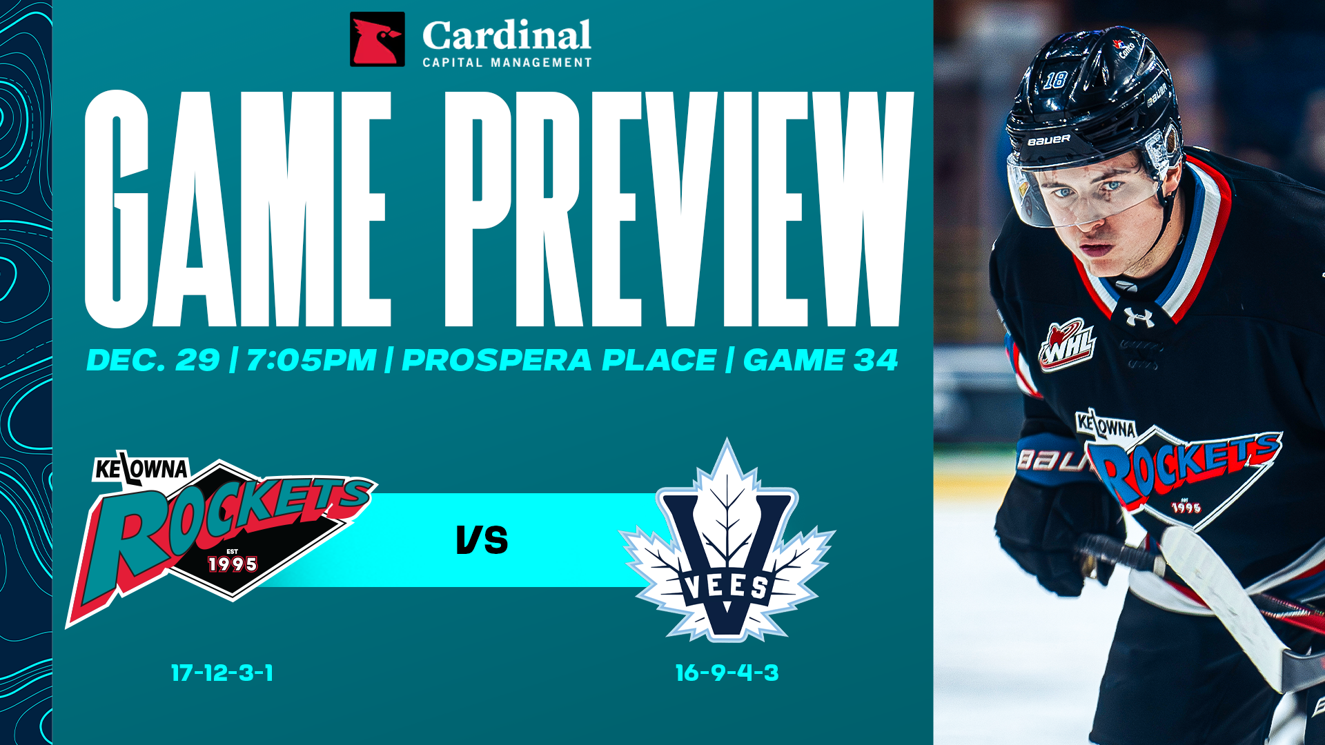 Fifteen-year-old forwards Owen Folstrom, Kanjyu Gojsic and sixteen-year-old defencemen Lachlan Staniforth and Jackson Gillespie all dressed for the Rockets. Returning players from last season Marcus Pacheco, Michael Cicek, Dylan Wightman, Andrew Cristall, Ismail Abougouche and Caden Price were all scratched for the game.