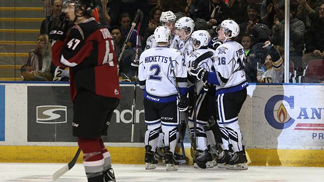Victoria’s Jack Walker notched the game-winning goal in the first period. Austin Carroll and Brandon Magee registered the other markers for the Royals.