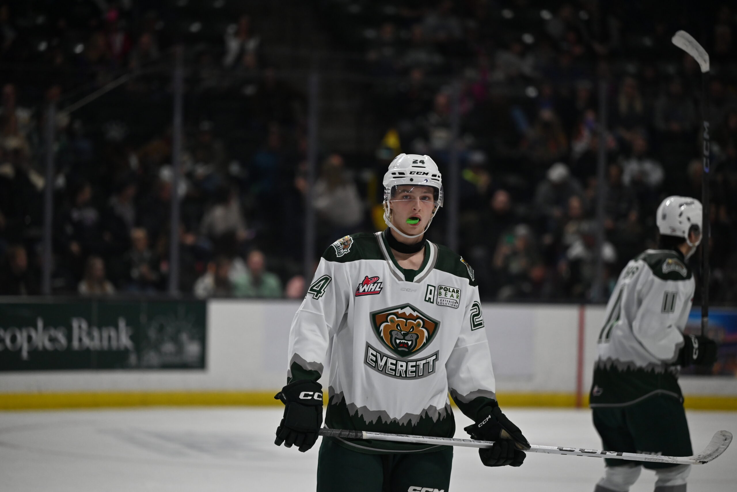 After a Silvertip goal was disallowed for goaltender interference, Smith quickly responded with his second of the night at 4:29 in the final frame, wiring a wrist shot from the blueline home for his seventh goal of the year. Van Olm in turn would redirect his second goal of the night past goaltender Alex Garrett at 13:04 in the third for a 3-2 Spokane lead.