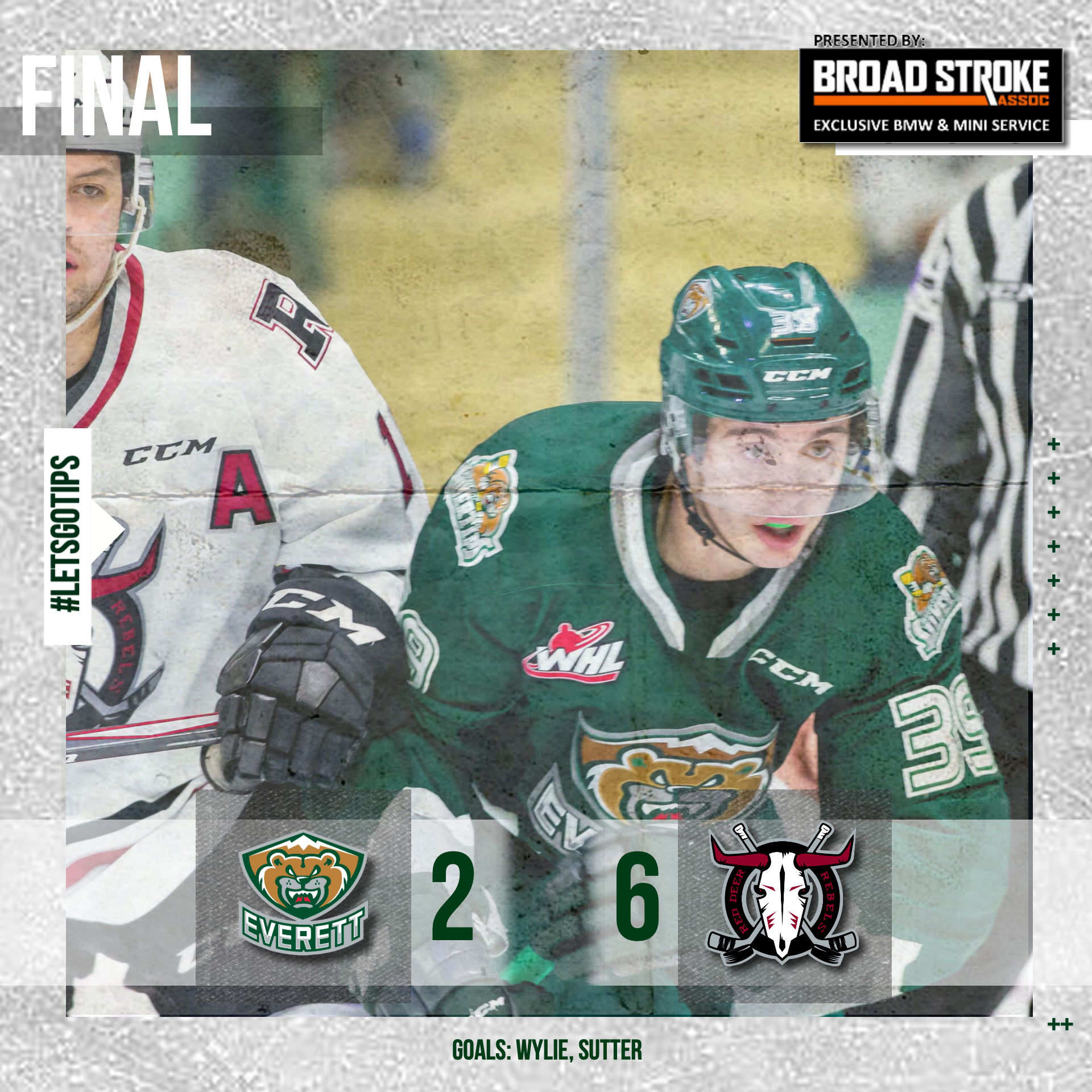 Wyatte Wylie and Aidan Sutter (first career WHL goal) scored for the Tips, who built a 2-0 lead into the second period. The Tips power play went 1-of-3 in the loss, and are 11 of their last 24 on the man advantage.