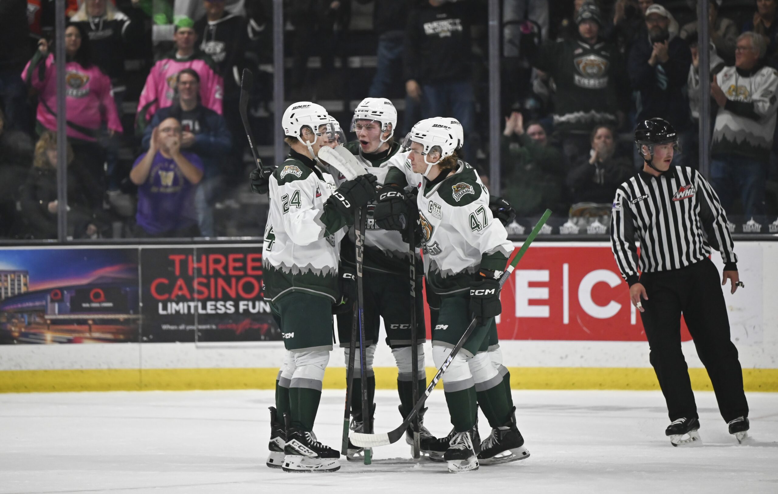 {"league":"whl","site_api_key":"41b145a848f4bd67","season":"","sponsor":false,"link":false,"days_ahead":"6","days_back":"3","team":"226","team_class":"whl-evt","base_url":"https:\/\/chl.ca\/whl-silvertips","language":"en","view":"scorebar","scoreboard":[{"ID":"1022712","SeasonID":"289","league_id":"26","game_number":"587","game_letter":"","game_type":"","quick_score":"0","Date":"2026-02-11","FloCoreEventId":"","FloLiveEventId":"","GameDate":"Wed, Feb 11","GameDateISO8601":"2026-02-11T19:00:00-07:00","ScheduledTime":"19:00:00","ScheduledFormattedTime":"7:00 pm","Timezone":"Canada\/Mountain","TicketUrl":"https:\/\/www.ticketmaster.ca\/artist\/1150973?venueid=140602","HomeID":"228","HomeCode":"EDM","HomeCity":"Edmonton","HomeNickname":"Oil Kings","HomeLongName":"Edmonton Oil Kings","HomeDivision":"Central Division","HomeGoals":"0","HomeAudioUrl":"https:\/\/www.iheart.com\/live\/edmonton-oil-kings-radio-9994\/","HomeVideoUrl":"","HomeWebcastUrl":"https:\/\/victoryplus.com\/hub\/WHL","VisitorID":"226","VisitorCode":"EVT","VisitorCity":"Everett","VisitorNickname":"Silvertips","VisitorLongName":"Everett Silvertips","VisitingDivision":"U.S. Division","VisitorGoals":"4","VisitorAudioUrl":"","VisitorVideoUrl":"","VisitorWebcastUrl":"https:\/\/victoryplus.com\/hub\/WHL","Period":"3","PeriodNameShort":"3","PeriodNameLong":"3rd","GameClock":"00:00","GameSummaryUrl":"1022712","HomeWins":"35","HomeRegulationLosses":"13","HomeOTLosses":"3","HomeShootoutLosses":"2","VisitorWins":"45","VisitorRegulationLosses":"6","VisitorOTLosses":"2","VisitorShootoutLosses":"1","GameStatus":"4","Intermission":"0","GameStatusString":"Final","GameStatusStringLong":"Final","Ord":"2026-02-11 21:00:00.000000","venue_name":"Rogers Place - Edmonton, AB","venue_location":"Edmonton, AB","league_name":"Western Hockey League","league_code":"whl","TimezoneShort":"MST","HomeLogo":"https:\/\/assets.leaguestat.com\/whl\/logos\/228.png","VisitorLogo":"https:\/\/assets.leaguestat.com\/whl\/logos\/226.png","FloHockeyUrl":"","combined_client_code":null},{"ID":"1022718","SeasonID":"289","league_id":"26","game_number":"593","game_letter":"","game_type":"","quick_score":"0","Date":"2026-02-13","FloCoreEventId":"","FloLiveEventId":"","GameDate":"Fri, Feb 13","GameDateISO8601":"2026-02-13T19:00:00-07:00","ScheduledTime":"19:00:00","ScheduledFormattedTime":"7:00 pm","Timezone":"Canada\/Mountain","TicketUrl":"https:\/\/visitlethbridgearena.evenue.net\/events\/HS","HomeID":"205","HomeCode":"LET","HomeCity":"Lethbridge","HomeNickname":"Hurricanes","HomeLongName":"Lethbridge Hurricanes","HomeDivision":"Central Division","HomeGoals":"4","HomeAudioUrl":"https:\/\/www.1067rock.ca\/play\/","HomeVideoUrl":"https:\/\/victoryplus.com\/","HomeWebcastUrl":"https:\/\/victoryplus.com\/hub\/WHL","VisitorID":"226","VisitorCode":"EVT","VisitorCity":"Everett","VisitorNickname":"Silvertips","VisitorLongName":"Everett Silvertips","VisitingDivision":"U.S. Division","VisitorGoals":"8","VisitorAudioUrl":"","VisitorVideoUrl":"","VisitorWebcastUrl":"https:\/\/victoryplus.com\/hub\/WHL","Period":"3","PeriodNameShort":"3","PeriodNameLong":"3rd","GameClock":"00:00","GameSummaryUrl":"1022718","HomeWins":"16","HomeRegulationLosses":"36","HomeOTLosses":"1","HomeShootoutLosses":"1","VisitorWins":"45","VisitorRegulationLosses":"6","VisitorOTLosses":"2","VisitorShootoutLosses":"1","GameStatus":"4","Intermission":"0","GameStatusString":"Final","GameStatusStringLong":"Final","Ord":"2026-02-13 21:00:00.000000","venue_name":"VisitLethbridge.com Arena - Lethbridge, AB","venue_location":"Lethbridge","league_name":"Western Hockey League","league_code":"whl","TimezoneShort":"MST","HomeLogo":"https:\/\/assets.leaguestat.com\/whl\/logos\/205.png","VisitorLogo":"https:\/\/assets.leaguestat.com\/whl\/logos\/226.png","FloHockeyUrl":"","combined_client_code":null},{"ID":"1022730","SeasonID":"289","league_id":"26","game_number":"605","game_letter":"","game_type":"","quick_score":"0","Date":"2026-02-14","FloCoreEventId":"","FloLiveEventId":"","GameDate":"Sat, Feb 14","GameDateISO8601":"2026-02-14T19:00:00-07:00","ScheduledTime":"19:00:00","ScheduledFormattedTime":"7:00 pm","Timezone":"Canada\/Mountain","TicketUrl":"https:\/\/buy.tixx.ca\/eventperformances.asp?evt=1602","HomeID":"206","HomeCode":"MH","HomeCity":"Medicine Hat","HomeNickname":"Tigers","HomeLongName":"Medicine Hat Tigers","HomeDivision":"Central Division","HomeGoals":"3","HomeAudioUrl":"","HomeVideoUrl":"","HomeWebcastUrl":"https:\/\/victoryplus.com\/hub\/WHL","VisitorID":"226","VisitorCode":"EVT","VisitorCity":"Everett","VisitorNickname":"Silvertips","VisitorLongName":"Everett Silvertips","VisitingDivision":"U.S. Division","VisitorGoals":"4","VisitorAudioUrl":"","VisitorVideoUrl":"","VisitorWebcastUrl":"https:\/\/victoryplus.com\/hub\/WHL","Period":"4","PeriodNameShort":"OT","PeriodNameLong":"OT","GameClock":"02:06","GameSummaryUrl":"1022730","HomeWins":"36","HomeRegulationLosses":"9","HomeOTLosses":"5","HomeShootoutLosses":"3","VisitorWins":"45","VisitorRegulationLosses":"6","VisitorOTLosses":"2","VisitorShootoutLosses":"1","GameStatus":"4","Intermission":"0","GameStatusString":"Final","GameStatusStringLong":"Final OT","Ord":"2026-02-14 21:00:00.000000","venue_name":"Co-op Place - Medicine Hat, AB","venue_location":"Medicine Hat, AB","league_name":"Western Hockey League","league_code":"whl","TimezoneShort":"MST","HomeLogo":"https:\/\/assets.leaguestat.com\/whl\/logos\/206.png","VisitorLogo":"https:\/\/assets.leaguestat.com\/whl\/logos\/226.png","FloHockeyUrl":"","combined_client_code":null},{"ID":"1022740","SeasonID":"289","league_id":"26","game_number":"615","game_letter":"","game_type":"","quick_score":"0","Date":"2026-02-16","FloCoreEventId":"","FloLiveEventId":"","GameDate":"Mon, Feb 16","GameDateISO8601":"2026-02-16T13:00:00-07:00","ScheduledTime":"13:00:00","ScheduledFormattedTime":"1:00 pm","Timezone":"Canada\/Mountain","TicketUrl":"https:\/\/chl.ca\/whl-hitmen\/single-game-tickets\/","HomeID":"202","HomeCode":"CGY","HomeC