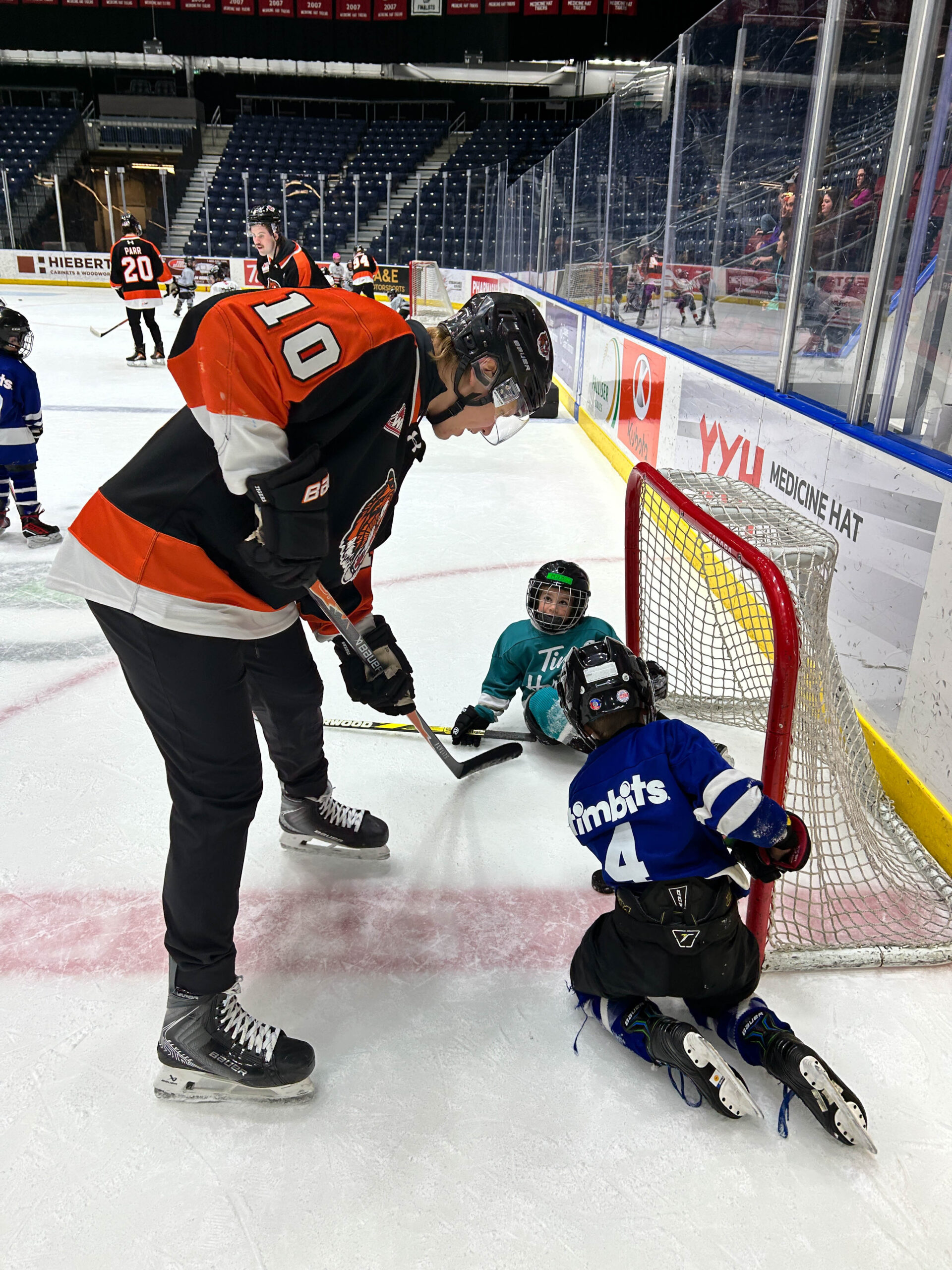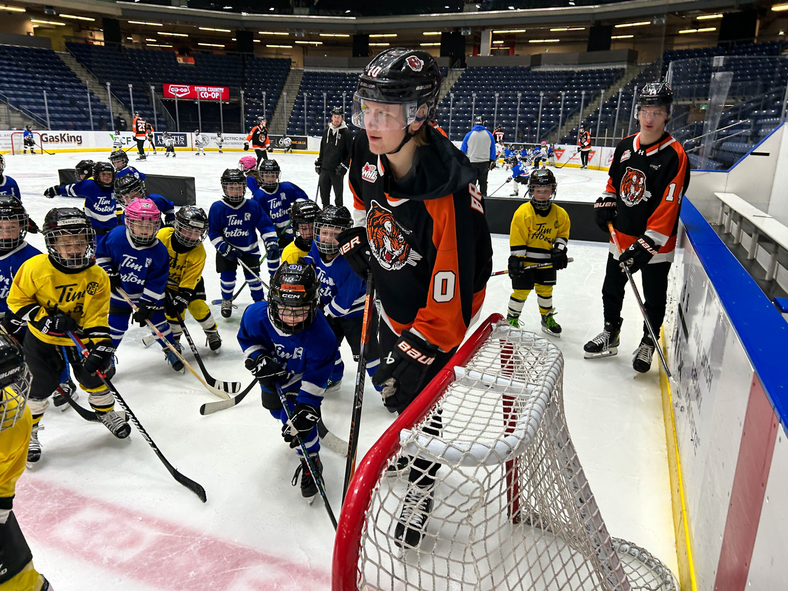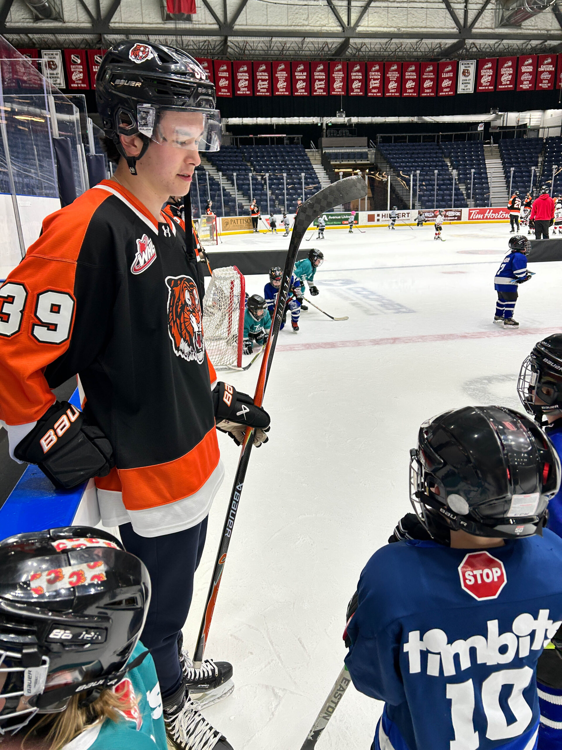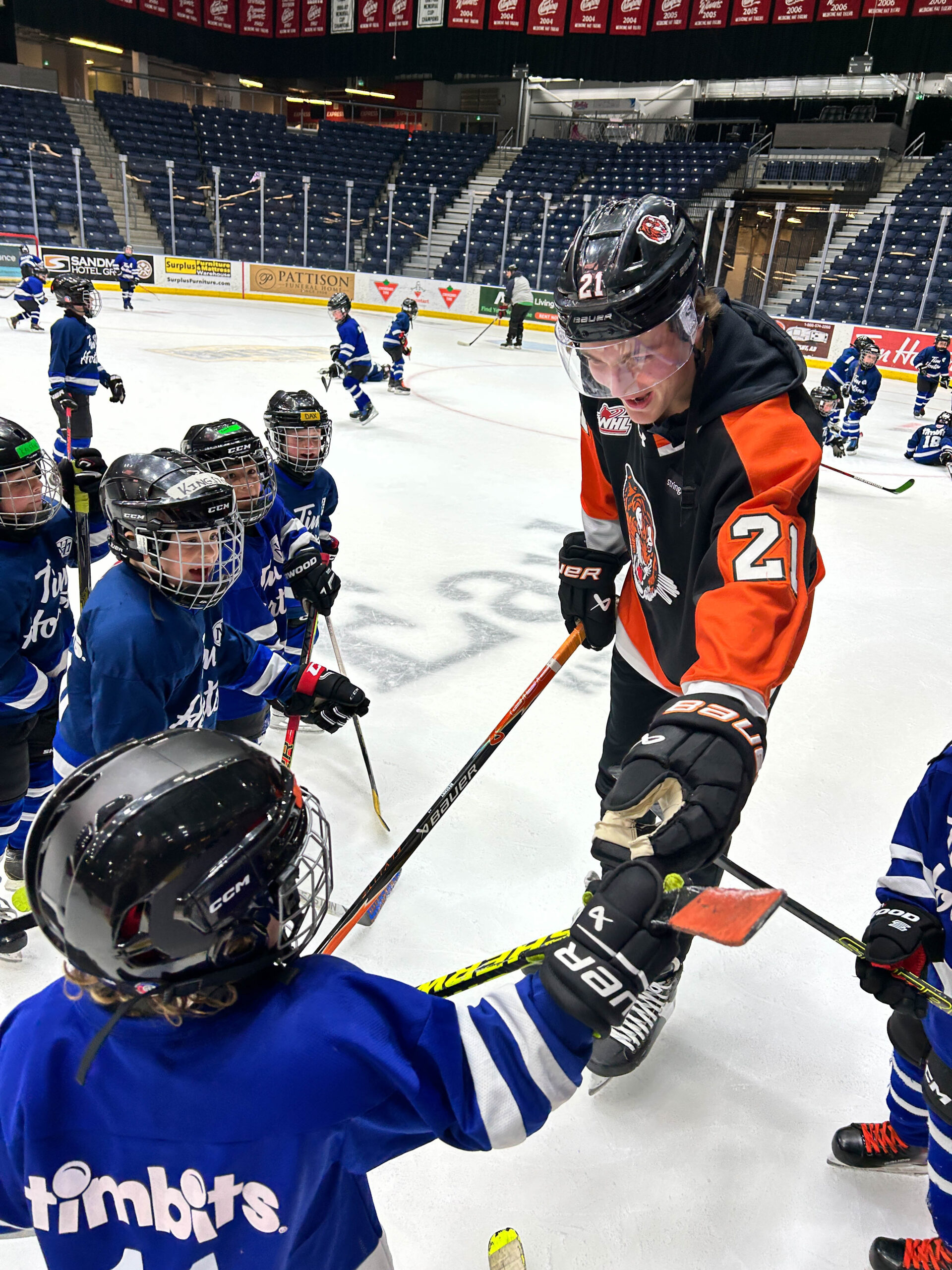 Tim Hortons has partnered with the Tigers for the past two years to give their Tim Bits teams a special experience. Tim Bits teams from Medicine Hat and area were invited to take the ice with the Tigers. Afterwards, the teams were able to get autographs from their favorite players while enjoying some hot chocolate and Tim Bits courtesy of Tim Hortons.