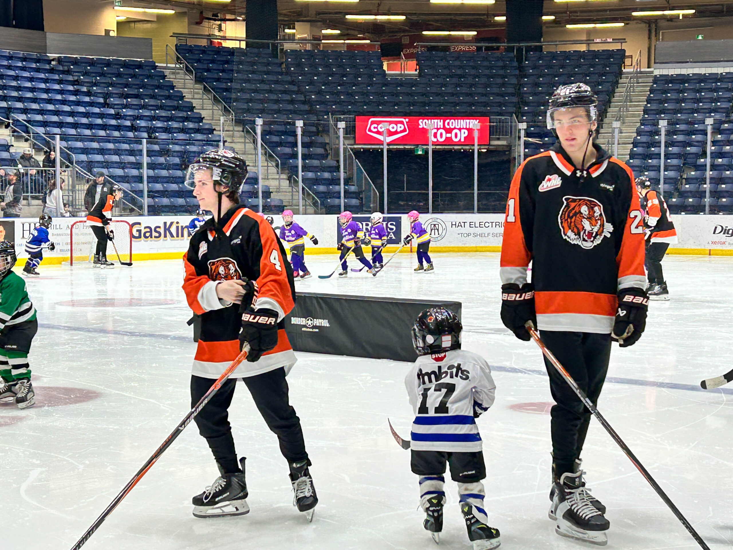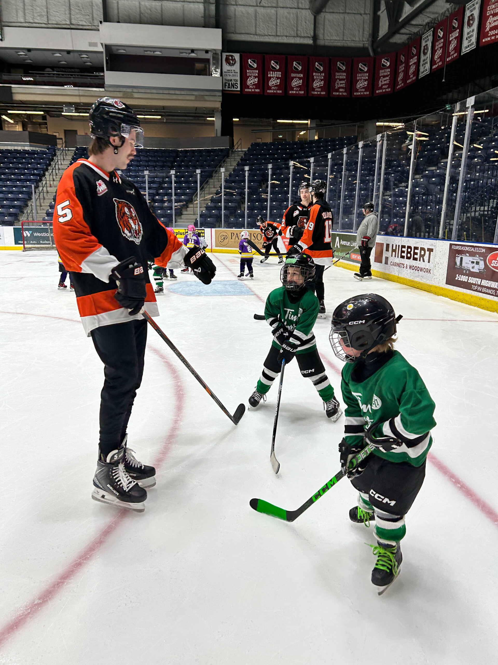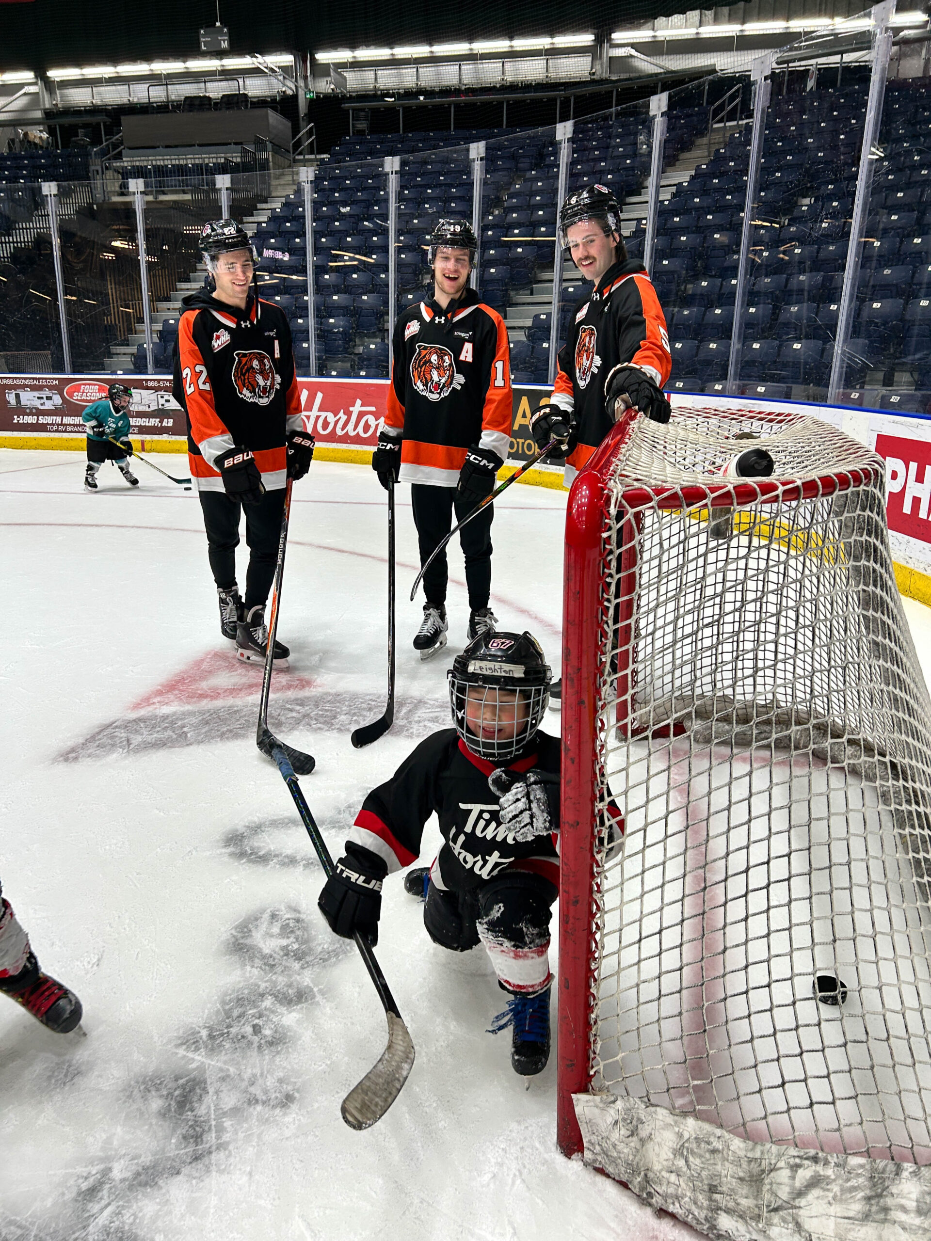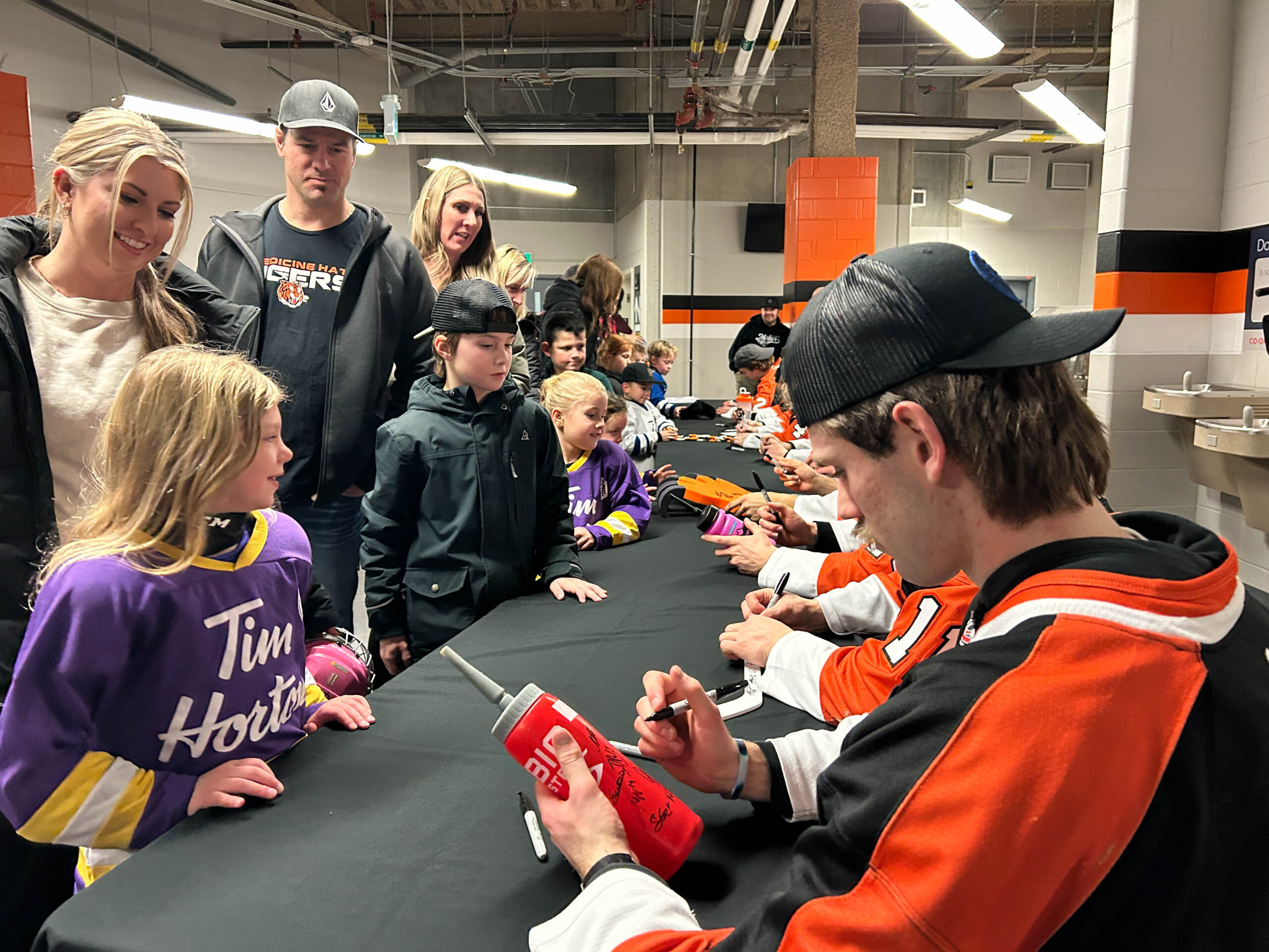 Tim Hortons has partnered with the Tigers for the past two years to give their Tim Bits teams a special experience. Tim Bits teams from Medicine Hat and area were invited to take the ice with the Tigers. Afterwards, the teams were able to get autographs from their favorite players while enjoying some hot chocolate and Tim Bits courtesy of Tim Hortons.