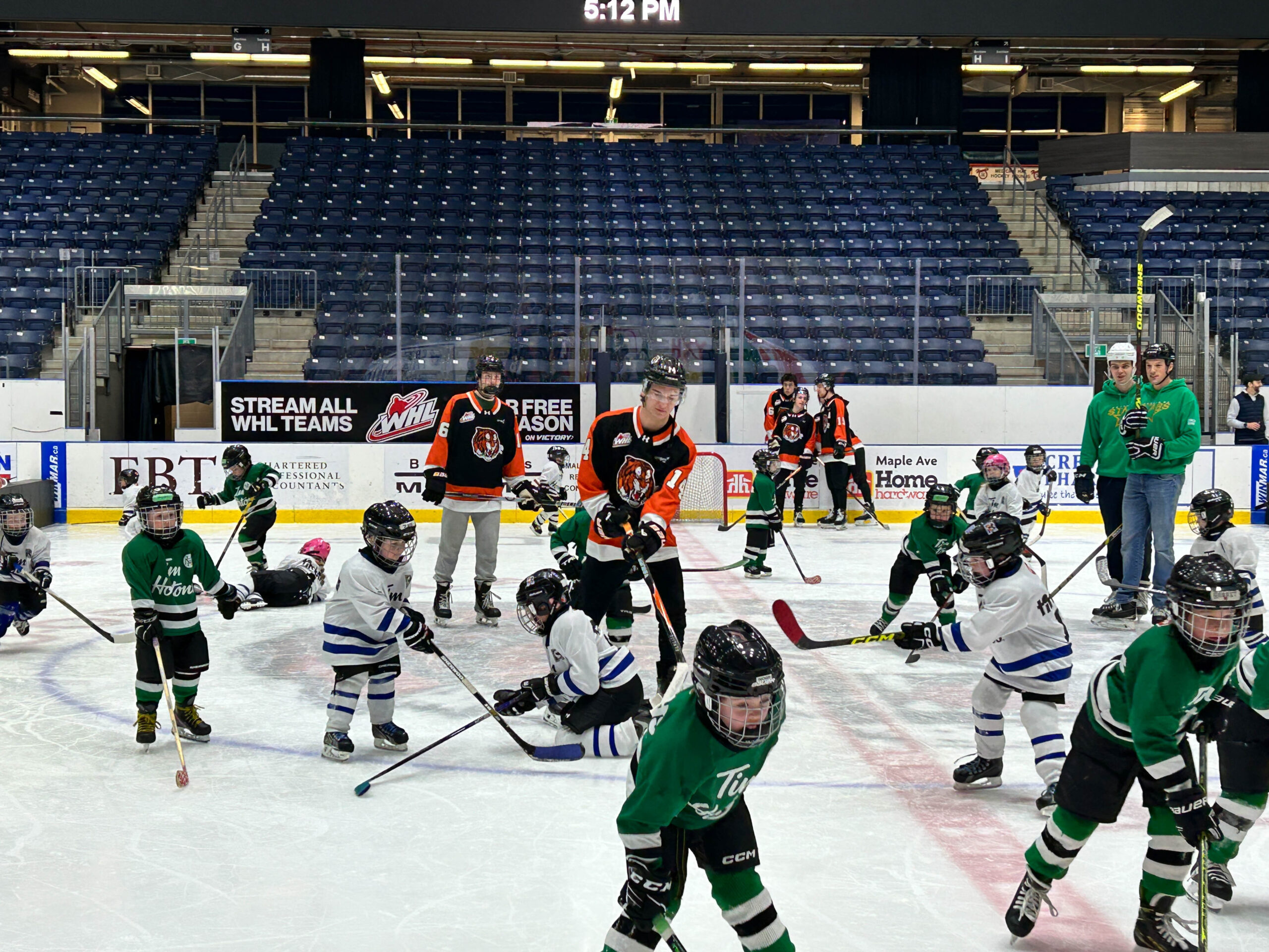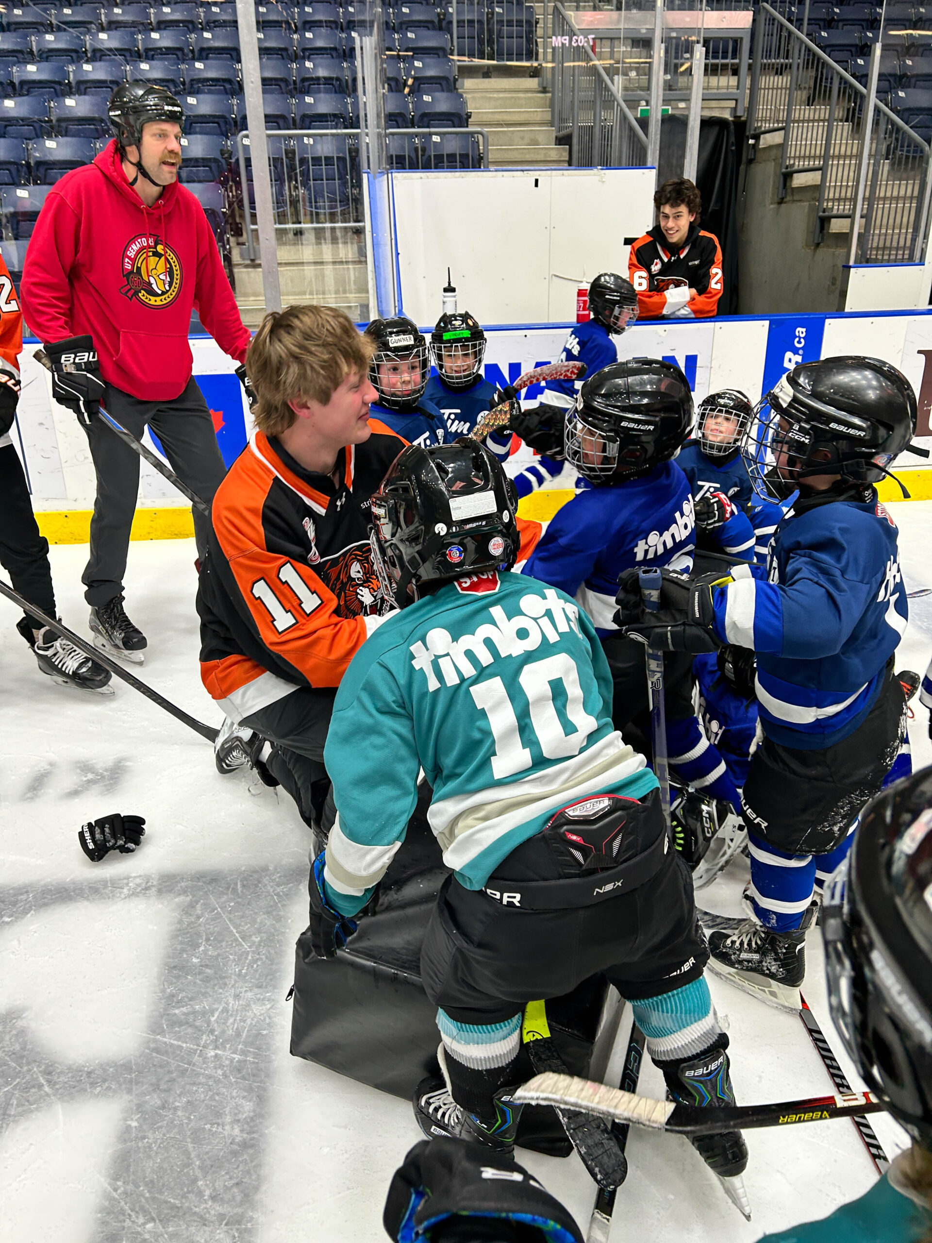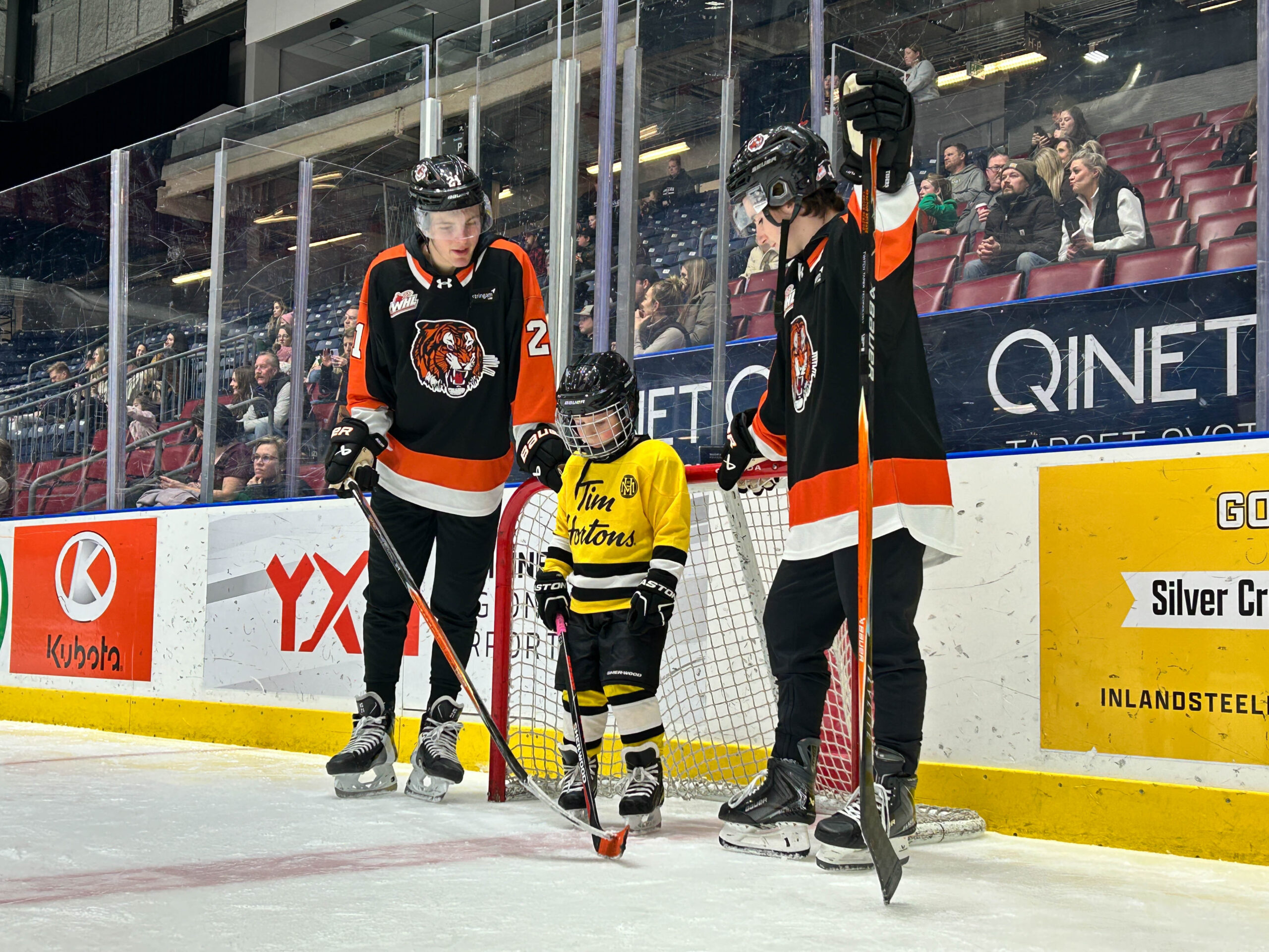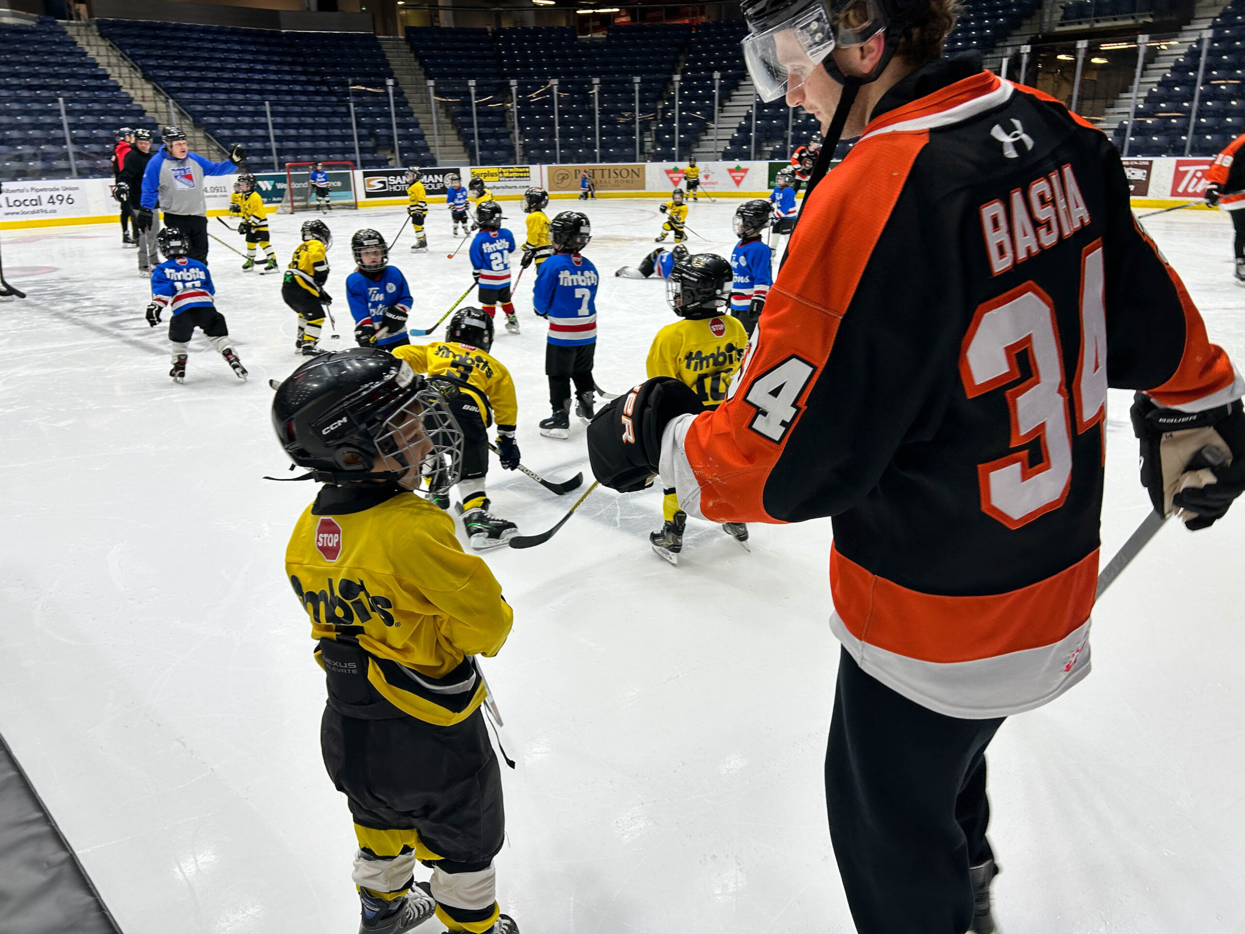 Tim Hortons has partnered with the Tigers for the past two years to give their Tim Bits teams a special experience. Tim Bits teams from Medicine Hat and area were invited to take the ice with the Tigers. Afterwards, the teams were able to get autographs from their favorite players while enjoying some hot chocolate and Tim Bits courtesy of Tim Hortons.
