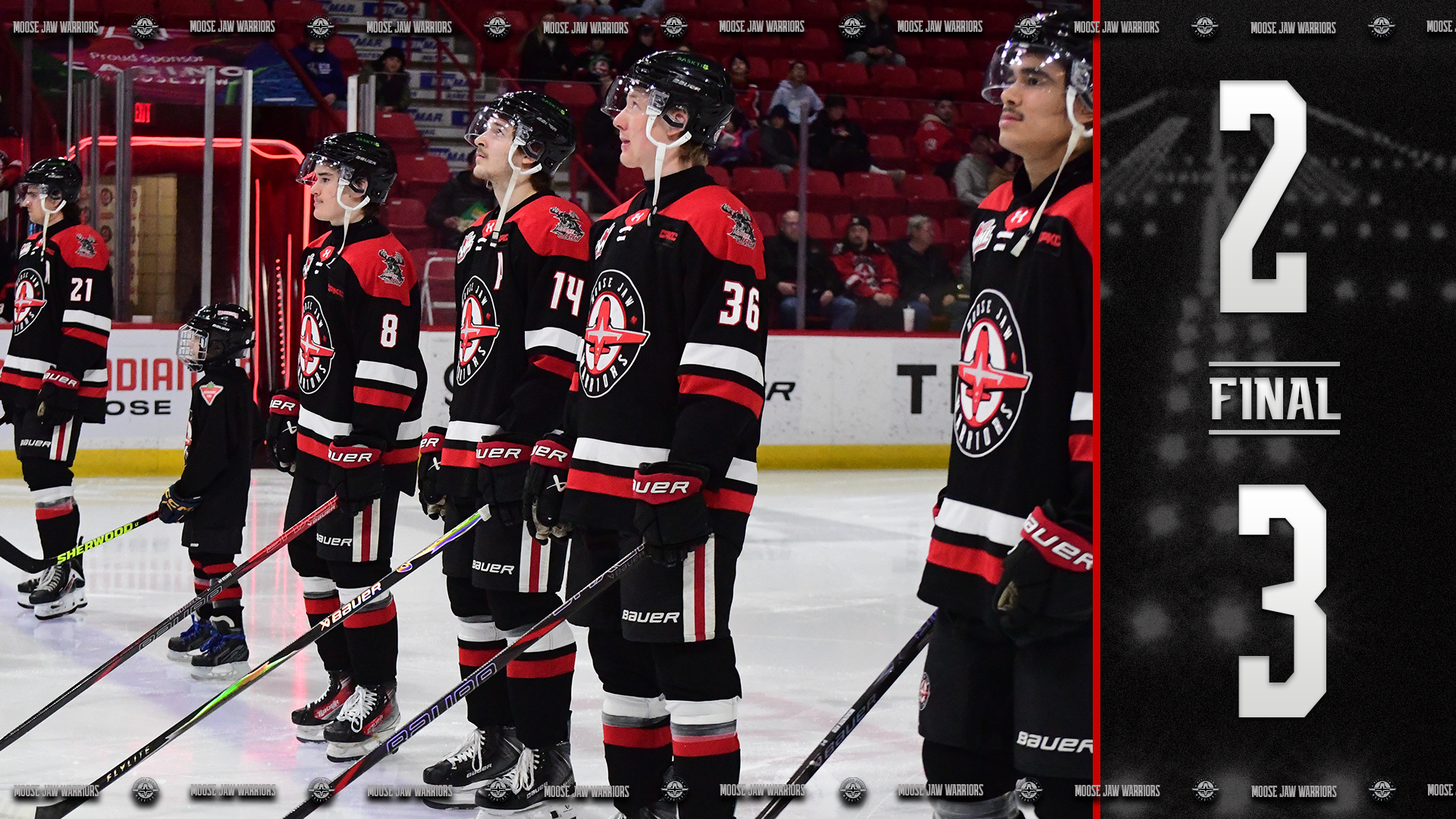 {"league":"whl","site_api_key":"41b145a848f4bd67","season":"","sponsor":false,"link":false,"days_ahead":"6","days_back":"3","team":"207","team_class":"whl-mj","base_url":"https:\/\/chl.ca\/whl-warriors","language":"en","view":"scorebar","scoreboard":[{"ID":"1022597","SeasonID":"289","league_id":"26","game_number":"472","game_letter":"","game_type":"","quick_score":"0","Date":"2026-01-16","FloCoreEventId":"","FloLiveEventId":"","GameDate":"Fri, Jan 16","GameDateISO8601":"2026-01-16T19:05:00-08:00","ScheduledTime":"19:05:00","ScheduledFormattedTime":"7:05 pm","Timezone":"Canada\/Pacific","TicketUrl":"https:\/\/tickets.seattlethunderbirds.com","HomeID":"214","HomeCode":"SEA","HomeCity":"Seattle","HomeNickname":"Thunderbirds","HomeLongName":"Seattle Thunderbirds","HomeDivision":"U.S. Division","HomeGoals":"2","HomeAudioUrl":"","HomeVideoUrl":"","HomeWebcastUrl":"https:\/\/victoryplus.com\/hub\/WHL","VisitorID":"207","VisitorCode":"MJ","VisitorCity":"Moose Jaw","VisitorNickname":"Warriors","VisitorLongName":"Moose Jaw Warriors","VisitingDivision":"East Division","VisitorGoals":"3","VisitorAudioUrl":"https:\/\/discovermoosejaw.com\/country100","VisitorVideoUrl":"","VisitorWebcastUrl":"https:\/\/victoryplus.com\/hub\/WHL","Period":"4","PeriodNameShort":"OT","PeriodNameLong":"OT","GameClock":"04:38","GameSummaryUrl":"1022597","HomeWins":"17","HomeRegulationLosses":"20","HomeOTLosses":"3","HomeShootoutLosses":"2","VisitorWins":"17","VisitorRegulationLosses":"23","VisitorOTLosses":"3","VisitorShootoutLosses":"2","GameStatus":"4","Intermission":"0","GameStatusString":"Final","GameStatusStringLong":"Final OT","Ord":"2026-01-16 22:05:00.000000","venue_name":"accesso ShoWare Center - Kent, WA","venue_location":"Kent","league_name":"Western Hockey League","league_code":"whl","TimezoneShort":"PST","HomeLogo":"https:\/\/assets.leaguestat.com\/whl\/logos\/214.png","VisitorLogo":"https:\/\/assets.leaguestat.com\/whl\/logos\/207.png","FloHockeyUrl":"","combined_client_code":null},{"ID":"1022609","SeasonID":"289","league_id":"26","game_number":"484","game_letter":"","game_type":"","quick_score":"0","Date":"2026-01-17","FloCoreEventId":"","FloLiveEventId":"","GameDate":"Sat, Jan 17","GameDateISO8601":"2026-01-17T18:05:00-08:00","ScheduledTime":"18:05:00","ScheduledFormattedTime":"6:05 pm","Timezone":"Canada\/Pacific","TicketUrl":"https:\/\/spokanechiefstickets.evenue.net\/event\/ECHF26\/ECHF21","HomeID":"215","HomeCode":"SPO","HomeCity":"Spokane","HomeNickname":"Chiefs","HomeLongName":"Spokane Chiefs","HomeDivision":"U.S. Division","HomeGoals":"4","HomeAudioUrl":"https:\/\/1035thegame.com\/","HomeVideoUrl":"https:\/\/victoryplus.com\/hub\/WHL","HomeWebcastUrl":"https:\/\/victoryplus.com\/hub\/WHL","VisitorID":"207","VisitorCode":"MJ","VisitorCity":"Moose Jaw","VisitorNickname":"Warriors","VisitorLongName":"Moose Jaw Warriors","VisitingDivision":"East Division","VisitorGoals":"5","VisitorAudioUrl":"https:\/\/discovermoosejaw.com\/country100","VisitorVideoUrl":"","VisitorWebcastUrl":"https:\/\/victoryplus.com\/hub\/WHL","Period":"4","PeriodNameShort":"OT","PeriodNameLong":"OT","GameClock":"04:23","GameSummaryUrl":"1022609","HomeWins":"22","HomeRegulationLosses":"21","HomeOTLosses":"1","HomeShootoutLosses":"0","VisitorWins":"17","VisitorRegulationLosses":"23","VisitorOTLosses":"3","VisitorShootoutLosses":"2","GameStatus":"4","Intermission":"0","GameStatusString":"Final","GameStatusStringLong":"Final OT","Ord":"2026-01-17 21:05:00.000000","venue_name":"Numerica Veterans Arena - Spokane, WA","venue_location":"Spokane, WA","league_name":"Western Hockey League","league_code":"whl","TimezoneShort":"PST","HomeLogo":"https:\/\/assets.leaguestat.com\/whl\/logos\/215.png","VisitorLogo":"https:\/\/assets.leaguestat.com\/whl\/logos\/207.png","FloHockeyUrl":"","combined_client_code":null},{"ID":"1022621","SeasonID":"289","league_id":"26","game_number":"496","game_letter":"","game_type":"","quick_score":"0","Date":"2026-01-22","FloCoreEventId":"","FloLiveEventId":"","GameDate":"Thu, Jan 22","GameDateISO8601":"2026-01-22T19:00:00-06:00","ScheduledTime":"19:00:00","ScheduledFormattedTime":"7:00 pm","Timezone":"Canada\/Saskatchewan","TicketUrl":"https:\/\/sasktix.evenue.net\/events\/MJW","HomeID":"207","HomeCode":"MJ","HomeCity":"Moose Jaw","HomeNickname":"Warriors","HomeLongName":"Moose Jaw Warriors","HomeDivision":"East Division","HomeGoals":"2","HomeAudioUrl":"https:\/\/discovermoosejaw.com\/country100","HomeVideoUrl":"","HomeWebcastUrl":"https:\/\/victoryplus.com\/hub\/WHL","VisitorID":"209","VisitorCode":"PA","VisitorCity":"Prince Albert","VisitorNickname":"Raiders","VisitorLongName":"Prince Albert Raiders","VisitingDivision":"East Division","VisitorGoals":"3","VisitorAudioUrl":"https:\/\/www.ckbi.com\/","VisitorVideoUrl":"","VisitorWebcastUrl":"https:\/\/victoryplus.com\/hub\/WHL","Period":"4","PeriodNameShort":"OT","PeriodNameLong":"OT","GameClock":"00:00","GameSummaryUrl":"1022621","HomeWins":"17","HomeRegulationLosses":"23","HomeOTLosses":"3","HomeShootoutLosses":"2","VisitorWins":"34","VisitorRegulationLosses":"6","VisitorOTLosses":"4","VisitorShootoutLosses":"0","GameStatus":"4","Intermission":"0","GameStatusString":"Final","GameStatusStringLong":"Final SO","Ord":"2026-01-22 20:00:00.000000","venue_name":"Temple Gardens Centre - Moose Jaw, SK","venue_location":"Moose Jaw, SK","league_name":"Western Hockey League","league_code":"whl","TimezoneShort":"ST","HomeLogo":"https:\/\/assets.leaguestat.com\/whl\/logos\/207.png","VisitorLogo":"https:\/\/assets.leaguestat.com\/whl\/logos\/209.png","FloHockeyUrl":"","combined_client_code":null},{"ID":"1022624","SeasonID":"289","league_id":"26","game_number":"499","game_letter":"","game_type":"","quick_score":"0","Date":"2026-01-23","FloCoreEventId":"","FloLiveEventId":"","GameDate":"Fri, Jan 23","GameDateISO8601":"2026-01-23T19:00:00-06:00","ScheduledTime":"19:00:00","ScheduledFormattedTime":"7:00 pm","Timezone":"Canada\/Saskatchewan","TicketUrl":"https:\/\/sasktix.evenue.net\/ev