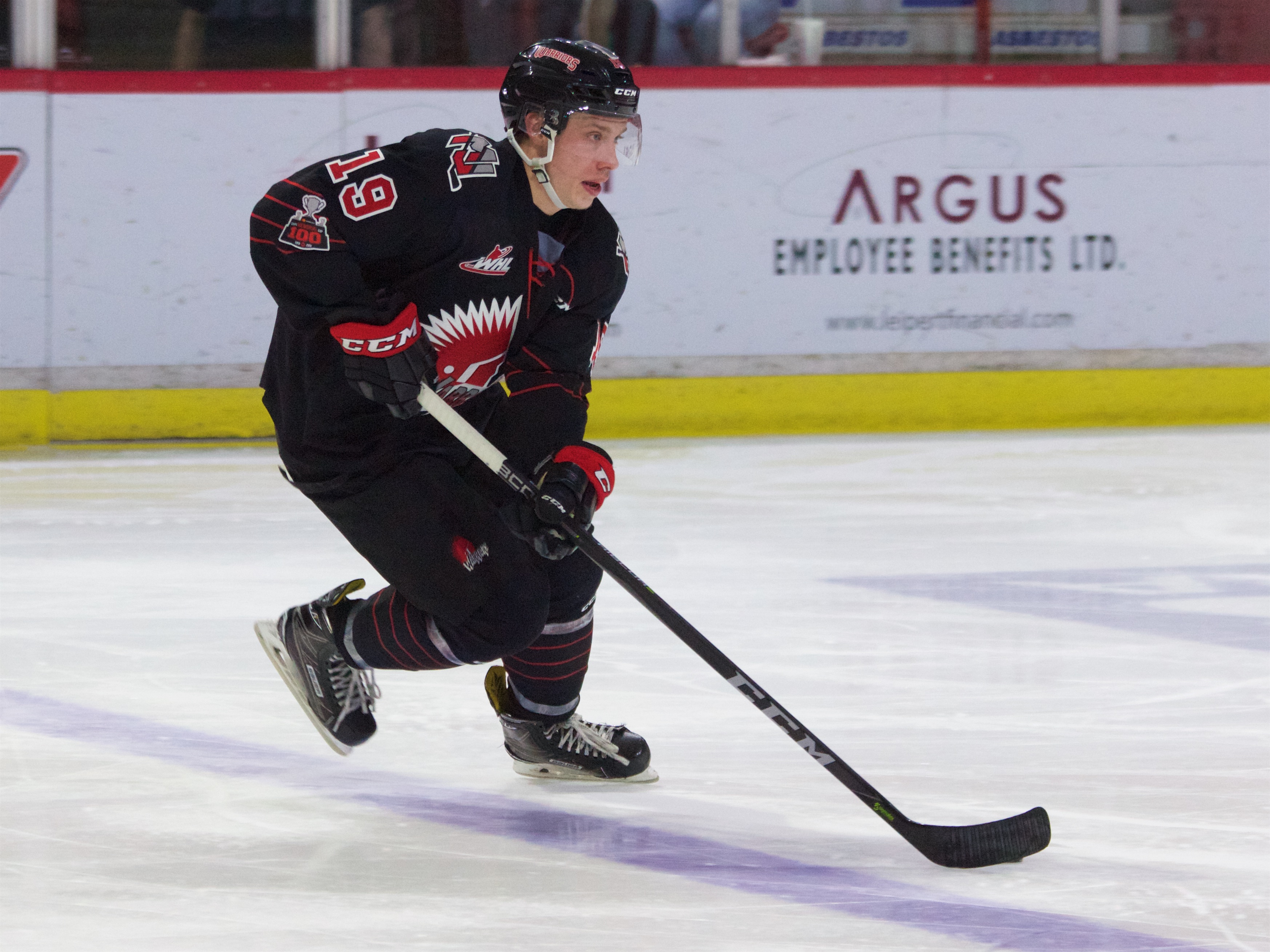 At 13:56 Brayden Burke made a tape-to-tape pass from the right circle to Noah Gregor inside the left circle. Gregor’s quick shot beat Schneider to give the Warriors a 3-2 lead.