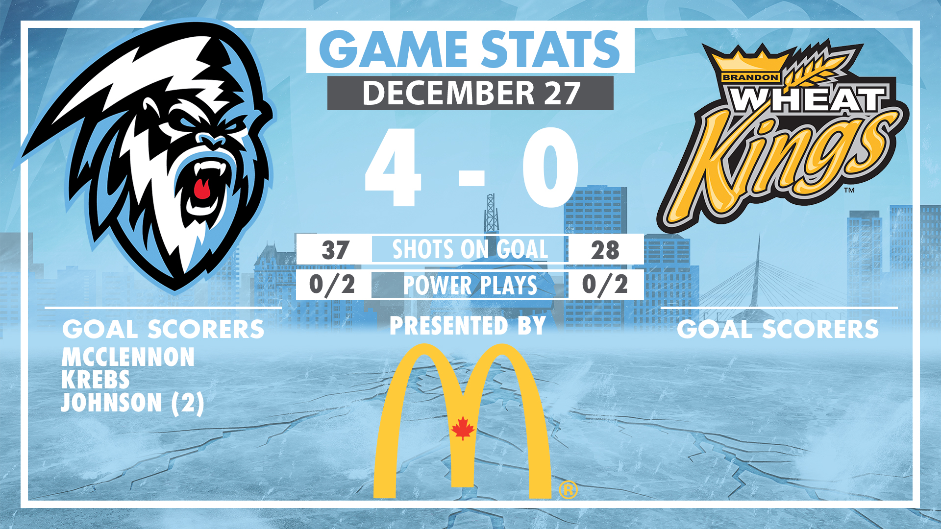 Post-Game Report presented by McDonald’s Canada | Hughes Earns Shut Out and ICE Blank Wheat Kings 4-0.