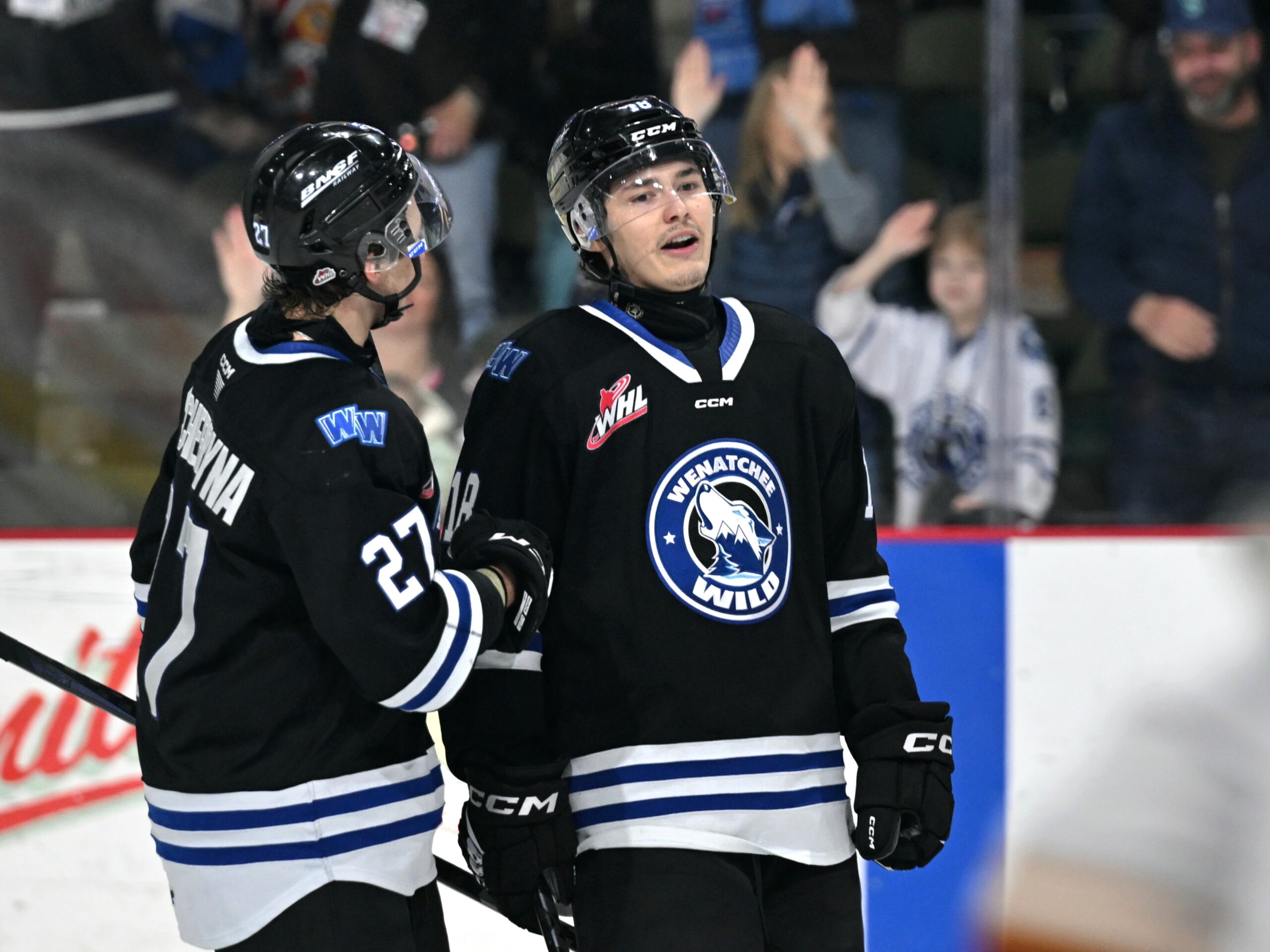 {"league":"whl","site_api_key":"f1aa699db3d81487","season":"","sponsor":false,"link":false,"days_ahead":"7","days_back":"1","team":"222","team_class":"whl-wen","base_url":"https:\/\/chl.ca\/whl-wild","language":"en","view":"scorebar","scoreboard":[{"ID":"1022641","SeasonID":"289","league_id":"26","game_number":"516","game_letter":"","game_type":"","quick_score":"0","Date":"2026-01-24","FloCoreEventId":"","FloLiveEventId":"","GameDate":"Sat, Jan 24","GameDateISO8601":"2026-01-24T18:00:00-08:00","ScheduledTime":"18:00:00","ScheduledFormattedTime":"6:00 pm","Timezone":"Canada\/Pacific","TicketUrl":"tickets.wenatcheewildhockey.com","HomeID":"222","HomeCode":"WEN","HomeCity":"Wenatchee","HomeNickname":"Wild","HomeLongName":"Wenatchee Wild","HomeDivision":"U.S. Division","HomeGoals":"3","HomeAudioUrl":"kpq.com\/listen-live","HomeVideoUrl":"","HomeWebcastUrl":"https:\/\/victoryplus.com\/hub\/WHL","VisitorID":"217","VisitorCode":"TC","VisitorCity":"Tri-City","VisitorNickname":"Americans","VisitorLongName":"Tri-City Americans","VisitingDivision":"U.S. Division","VisitorGoals":"4","VisitorAudioUrl":"https:\/\/jacobsradiollc.com\/stations\/urock-radio\/","VisitorVideoUrl":"https:\/\/victoryplus.com\/hub\/WHL","VisitorWebcastUrl":"https:\/\/victoryplus.com\/hub\/WHL","Period":"4","PeriodNameShort":"OT","PeriodNameLong":"OT","GameClock":"00:05","GameSummaryUrl":"1022641","HomeWins":"17","HomeRegulationLosses":"25","HomeOTLosses":"2","HomeShootoutLosses":"2","VisitorWins":"24","VisitorRegulationLosses":"17","VisitorOTLosses":"3","VisitorShootoutLosses":"1","GameStatus":"4","Intermission":"0","GameStatusString":"Final","GameStatusStringLong":"Final OT","Ord":"2026-01-24 21:00:00.000000","venue_name":"Town Toyota Center - Wenatchee, WA","venue_location":"Wenatchee, WA","league_name":"Western Hockey League","league_code":"whl","TimezoneShort":"PST","HomeLogo":"https:\/\/assets.leaguestat.com\/whl\/logos\/50x50\/222.png","VisitorLogo":"https:\/\/assets.leaguestat.com\/whl\/logos\/217.png","FloHockeyUrl":"","combined_client_code":null},{"ID":"1022652","SeasonID":"289","league_id":"26","game_number":"527","game_letter":"","game_type":"","quick_score":"0","Date":"2026-01-28","FloCoreEventId":"","FloLiveEventId":"","GameDate":"Wed, Jan 28","GameDateISO8601":"2026-01-28T18:00:00-08:00","ScheduledTime":"18:00:00","ScheduledFormattedTime":"6:00 pm","Timezone":"Canada\/Pacific","TicketUrl":"tickets.wenatcheewildhockey.com","HomeID":"222","HomeCode":"WEN","HomeCity":"Wenatchee","HomeNickname":"Wild","HomeLongName":"Wenatchee Wild","HomeDivision":"U.S. Division","HomeGoals":"0","HomeAudioUrl":"kpq.com\/listen-live","HomeVideoUrl":"https:\/\/victoryplus.com\/hub\/WHL","HomeWebcastUrl":"https:\/\/victoryplus.com\/hub\/WHL","VisitorID":"201","VisitorCode":"BDN","VisitorCity":"Brandon","VisitorNickname":"Wheat Kings","VisitorLongName":"Brandon Wheat Kings","VisitingDivision":"East Division","VisitorGoals":"0","VisitorAudioUrl":"","VisitorVideoUrl":"https:\/\/victoryplus.com\/hub\/WHL","VisitorWebcastUrl":"https:\/\/victoryplus.com\/hub\/WHL","Period":"1","PeriodNameShort":"1","PeriodNameLong":"1st","GameClock":"00:00","GameSummaryUrl":"1022652","HomeWins":"17","HomeRegulationLosses":"25","HomeOTLosses":"2","HomeShootoutLosses":"2","VisitorWins":"26","VisitorRegulationLosses":"18","VisitorOTLosses":"1","VisitorShootoutLosses":"0","GameStatus":"1","Intermission":"0","GameStatusString":"6:00PM","GameStatusStringLong":"6:00 PM PST","Ord":"2026-01-28 21:00:00.000000","venue_name":"Town Toyota Center - Wenatchee, WA","venue_location":"Wenatchee, WA","league_name":"Western Hockey League","league_code":"whl","TimezoneShort":"PST","HomeLogo":"https:\/\/assets.leaguestat.com\/whl\/logos\/50x50\/222.png","VisitorLogo":"https:\/\/assets.leaguestat.com\/whl\/logos\/50x50\/201.png","FloHockeyUrl":"","combined_client_code":null},{"ID":"1022657","SeasonID":"289","league_id":"26","game_number":"532","game_letter":"","game_type":"","quick_score":"0","Date":"2026-01-30","FloCoreEventId":"","FloLiveEventId":"","GameDate":"Fri, Jan 30","GameDateISO8601":"2026-01-30T19:00:00-08:00","ScheduledTime":"19:00:00","ScheduledFormattedTime":"7:00 pm","Timezone":"Canada\/Pacific","TicketUrl":"https:\/\/www.ticketmaster.com\/portland-winterhawks-vs-wenatchee-wild-portland-oregon-01-30-2026\/event\/0F00630C824D10F3","HomeID":"208","HomeCode":"POR","HomeCity":"Portland","HomeNickname":"Winterhawks","HomeLongName":"Portland Winterhawks","HomeDivision":"U.S. Division","HomeGoals":"0","HomeAudioUrl":"","HomeVideoUrl":"","HomeWebcastUrl":"https:\/\/victoryplus.com\/hub\/WHL","VisitorID":"222","VisitorCode":"WEN","VisitorCity":"Wenatchee","VisitorNickname":"Wild","VisitorLongName":"Wenatchee Wild","VisitingDivision":"U.S. Division","VisitorGoals":"0","VisitorAudioUrl":"kpq.com\/listen-live","VisitorVideoUrl":"","VisitorWebcastUrl":"https:\/\/victoryplus.com\/hub\/WHL","Period":"1","PeriodNameShort":"1","PeriodNameLong":"1st","GameClock":"00:00","GameSummaryUrl":"1022657","HomeWins":"22","HomeRegulationLosses":"22","HomeOTLosses":"3","HomeShootoutLosses":"0","VisitorWins":"17","VisitorRegulationLosses":"25","VisitorOTLosses":"2","VisitorShootoutLosses":"2","GameStatus":"1","Intermission":"0","GameStatusString":"7:00PM","GameStatusStringLong":"7:00 PM PST","Ord":"2026-01-30 22:00:00.000000","venue_name":"Veterans Memorial Coliseum - Portland, OR","venue_location":"Portland","league_name":"Western Hockey League","league_code":"whl","TimezoneShort":"PST","HomeLogo":"https:\/\/assets.leaguestat.com\/whl\/logos\/50x50\/208.png","VisitorLogo":"https:\/\/assets.leaguestat.com\/whl\/logos\/50x50\/222.png","FloHockeyUrl":"","combined_client_code":null},{"ID":"1022669","SeasonID":"289","league_id":"26","game_number":"544","game_letter":"","game_type":"","quick_score":"0","Date":"2026-01-31","FloCoreEventId":"","FloLiveEventId":"","GameDate":"Sat, Jan 31","GameDateISO8601":"2026-01-31T18:05:00-08:00","ScheduledTime":"18:05:00","ScheduledFormattedTime":"6:05 pm","Timezo