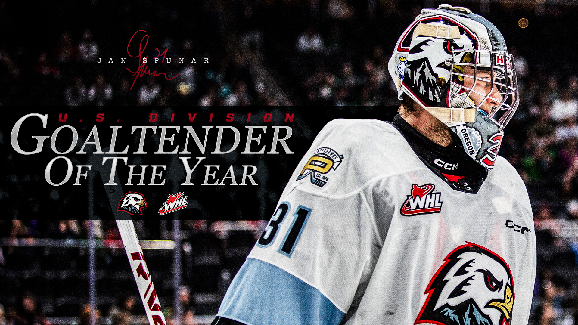 The Portland Winterhawks Hockey Club is proud to recognize Jan Špunar, who has been named the U.S. Division Goaltender of the Year. Špunar is also one of four finalists nominated for the Del Wilson Memorial Trophy, awarded annually to the WHL Goaltender of the Year.