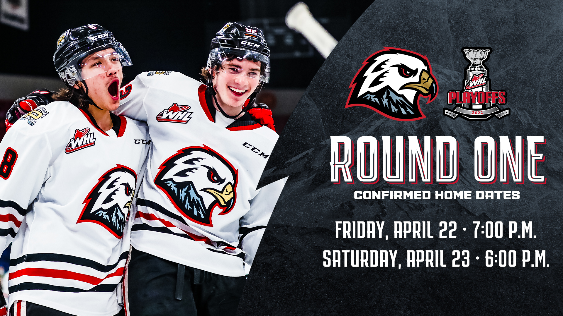 While the Winterhawks await their opponent for the first round of the 2022 WHL Playoffs, we can confirm that the team will host game 1 (Game A) of a best-of-seven series on Friday, April 22 at 7:00 p.m. and game 2 (Game B) on Saturday, April 23 at 6:00 p.m. at Veterans Memorial Coliseum.