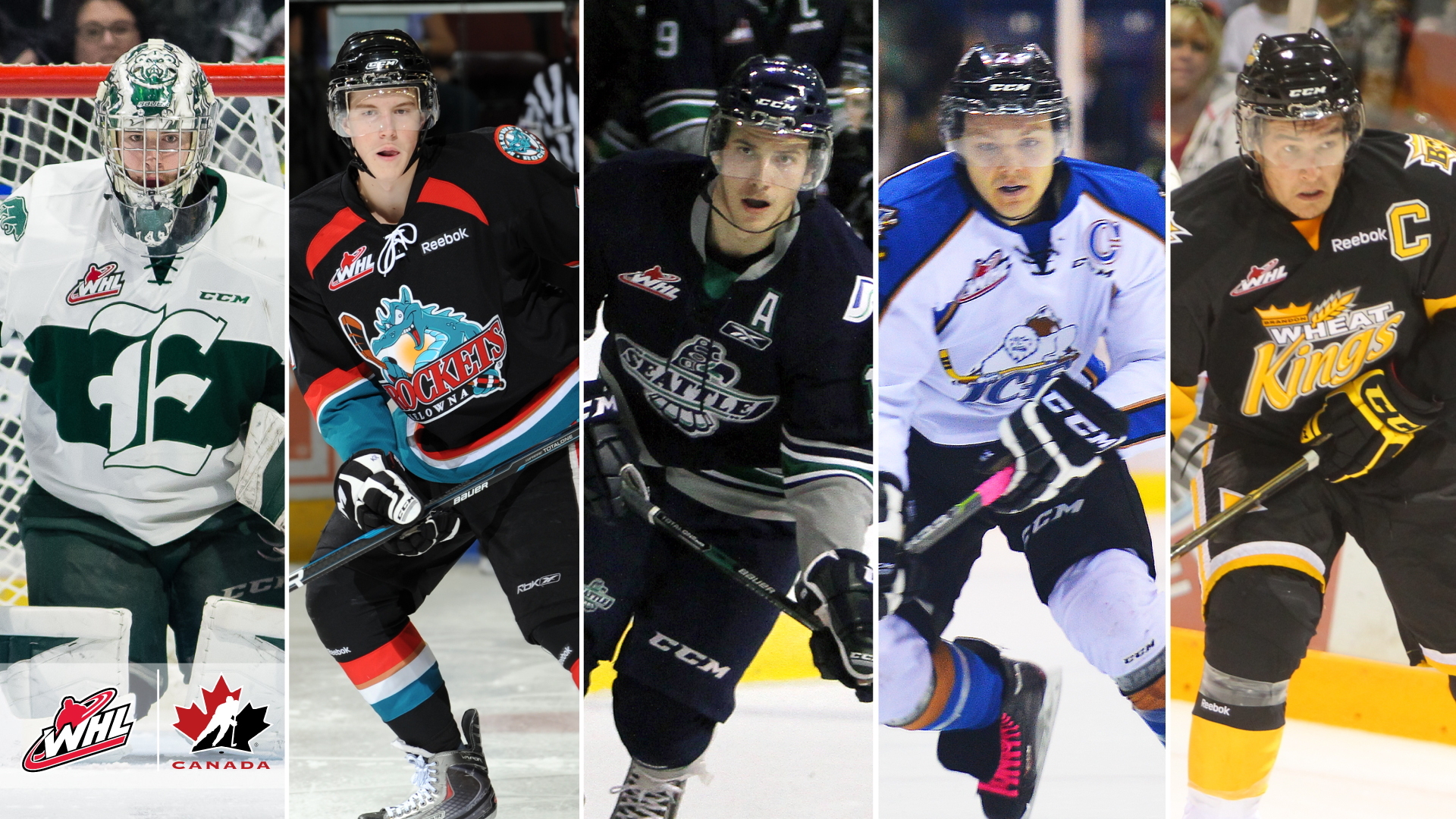 Of those players representing Canada, the following began their major junior hockey careers in the WHL: goaltender Carter Hart (Sherwood Park, Alta./Everett Silvertips), defencemen Damon Severson (Melville, Sask./Kelowna Rockers), and Shea Theodore (Langley, B.C./Seattle Thunderbirds), as well as forwards Sam Reinhart (West Vancouver, B.C./Kootenay ICE) and Mark Stone (Winnipeg, Man./Brandon Wheat Kings).