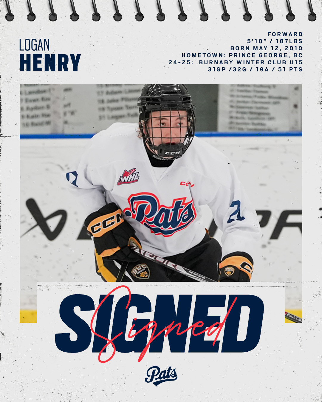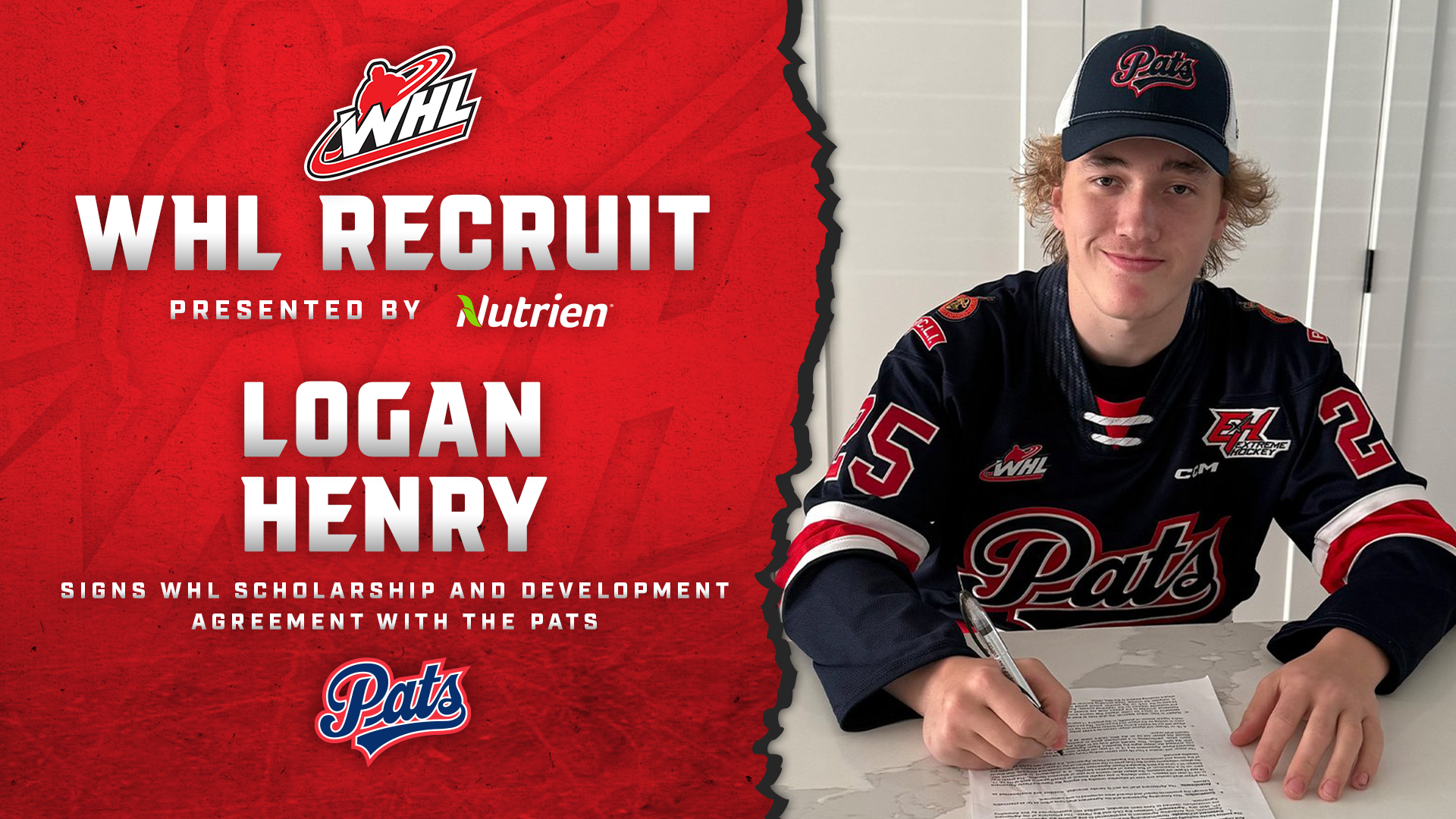 Regina, Sask. – The Regina Pats Hockey Club have signed 2010-born forward Logan Henry to a WHL Scholarship and Development Agreement.