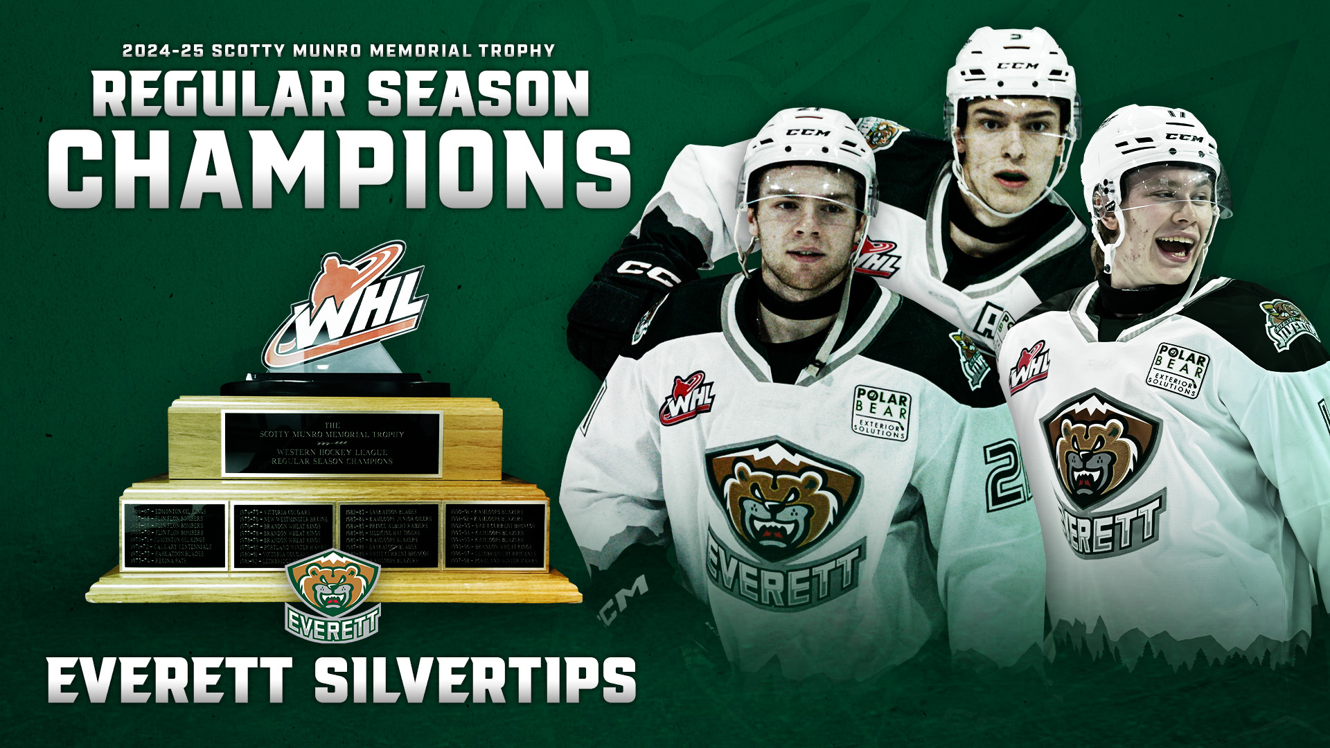 For the second time in franchise history, the Everett Silvertips have won the Scotty Munro Memorial Trophy, which is presented annually to the Western Hockey League’s regular season champion.