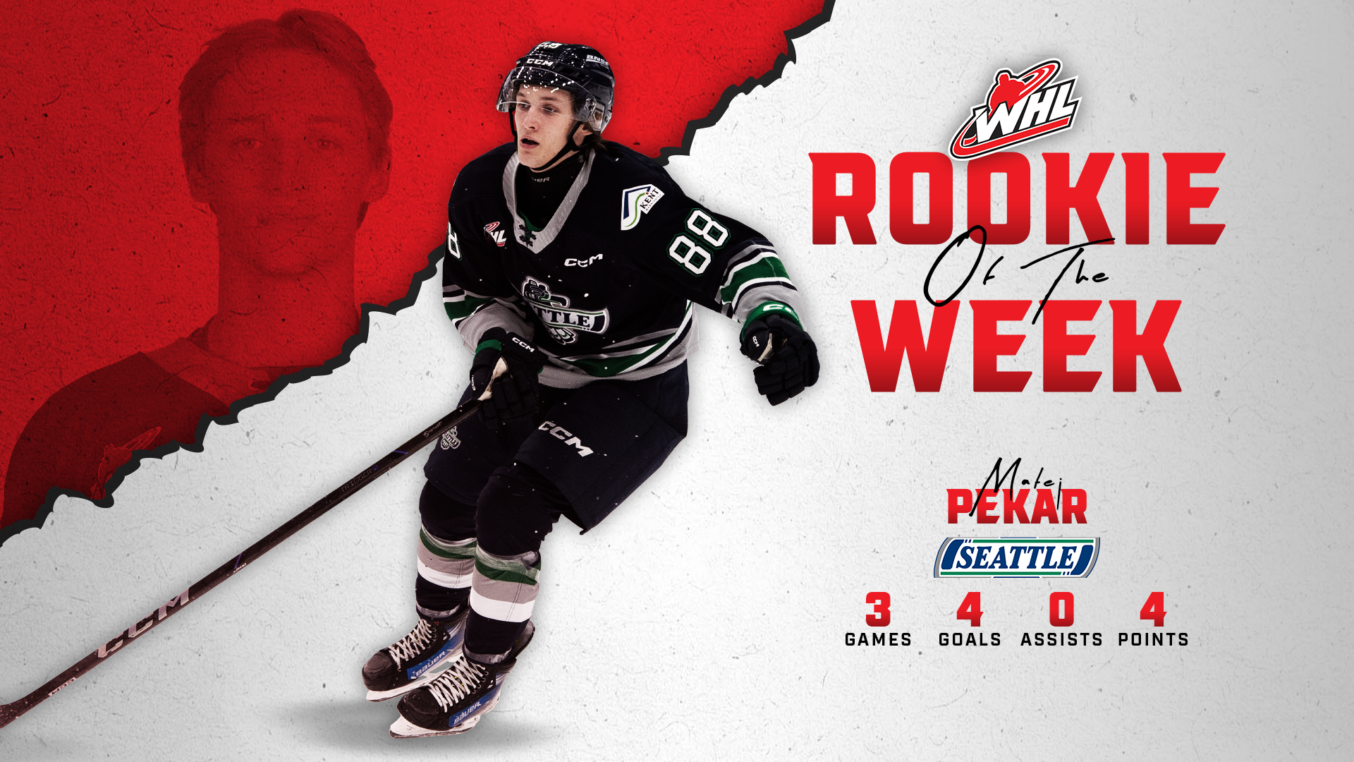 Calgary, Alta. – Seattle Thunderbirds forward Matej Pekar has been named WHL Rookie of the Week for the week ending Sunday, January 26, 2025, the Western Hockey League announced Monday.